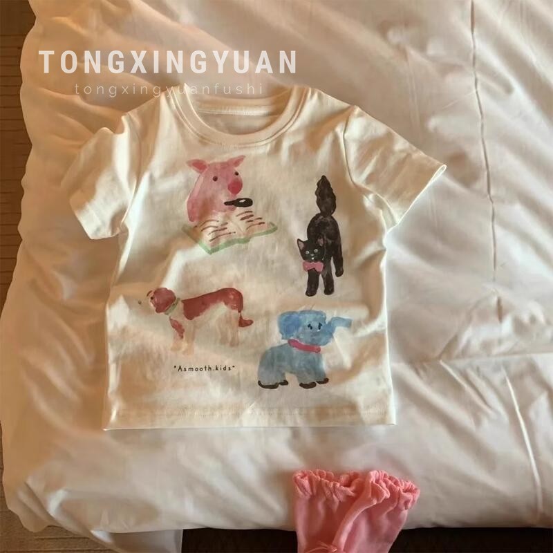 어린이 Xingyuan 소녀의 반팔 티셔츠 여름 아기의 새로운 서양식 만화 인어 공주 어린이 캐주얼 탑 T스토어 가기