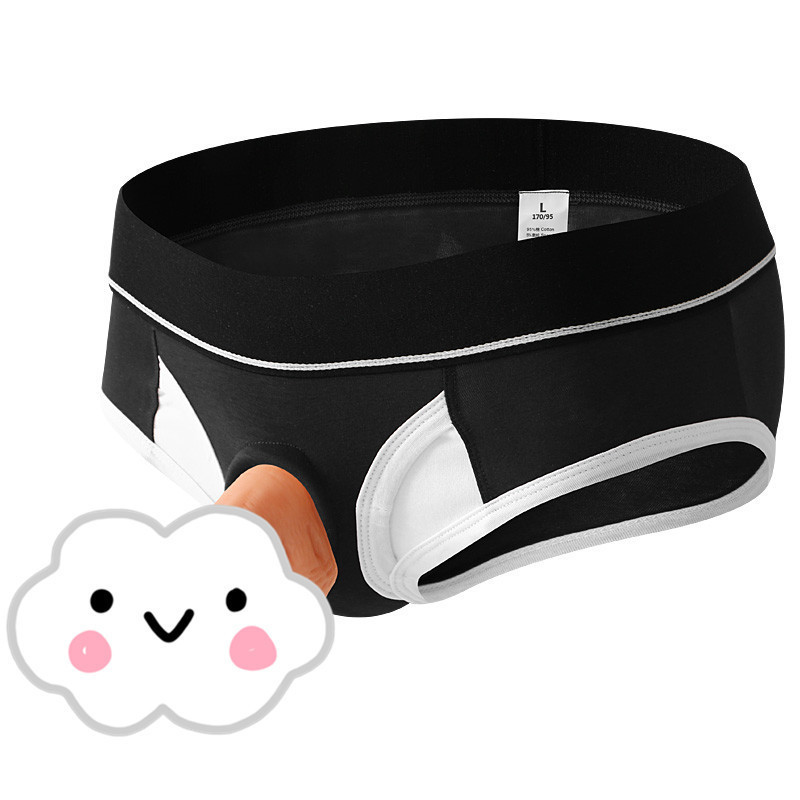 진동봉 주머니가 내장된 남성용 섹시 플러팅 남녀공용 팬티, 더블듀얼 딜도 A032-SJ