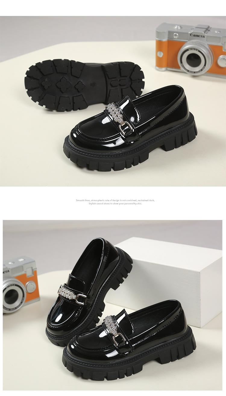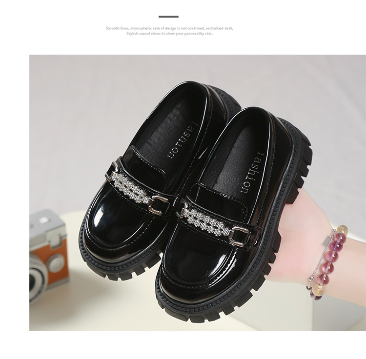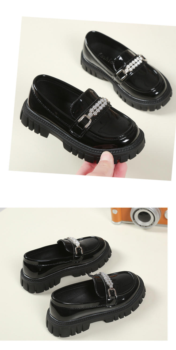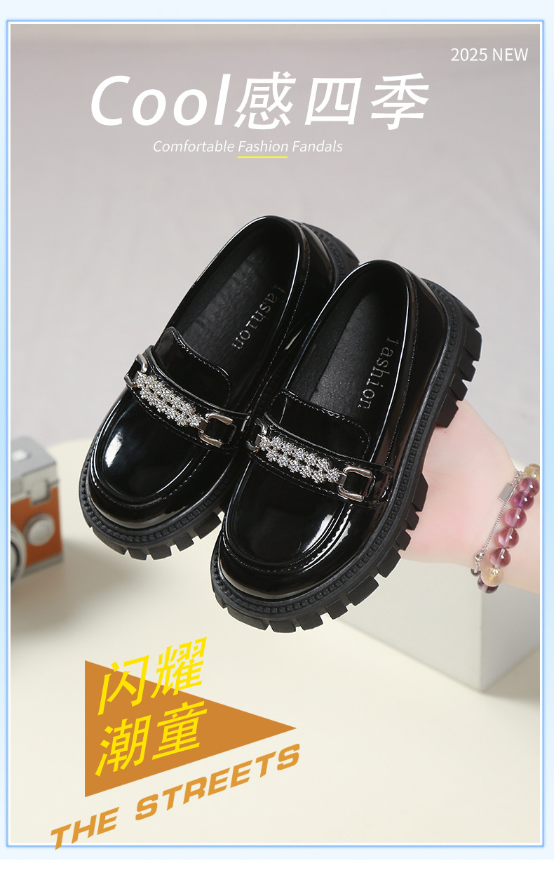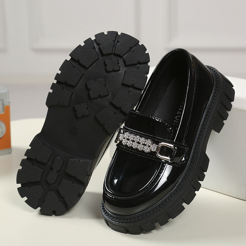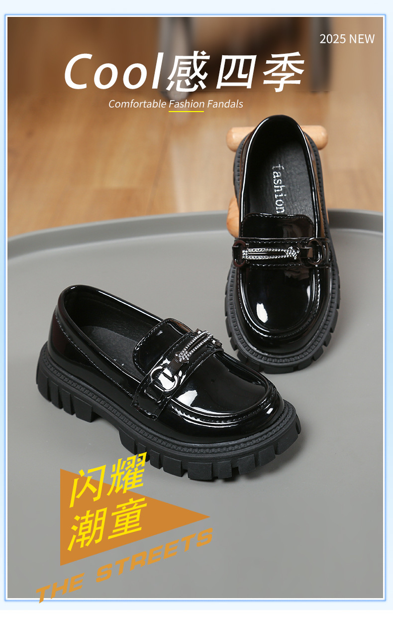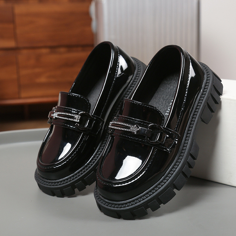 여자를위한 공주 신발 2025 봄 로퍼 아기 소녀 검은 작은 가죽 신발 패션 슬립 온 어린이 싱글 신발
