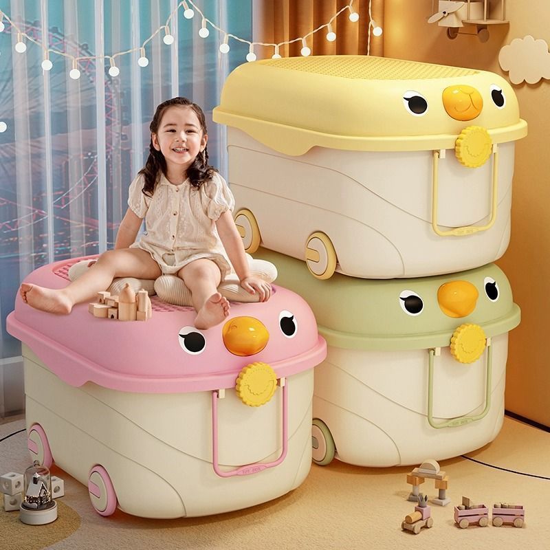 바퀴가 달린 두꺼운 대용량 정리 상자, 어린이 장난감 보관 상자, 가정용 아기 간식, 옷 및 책 보관 상자