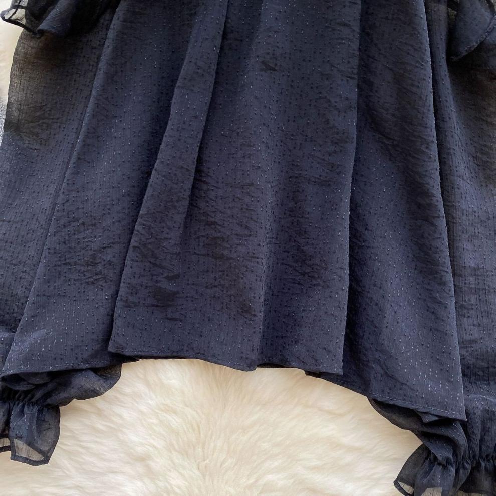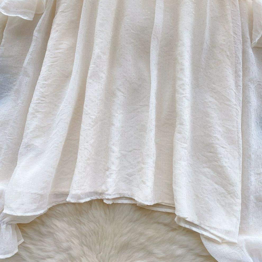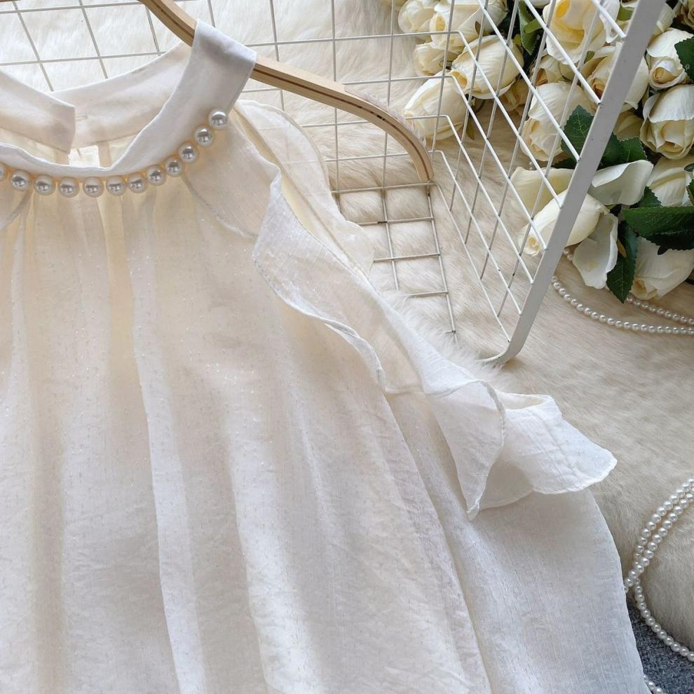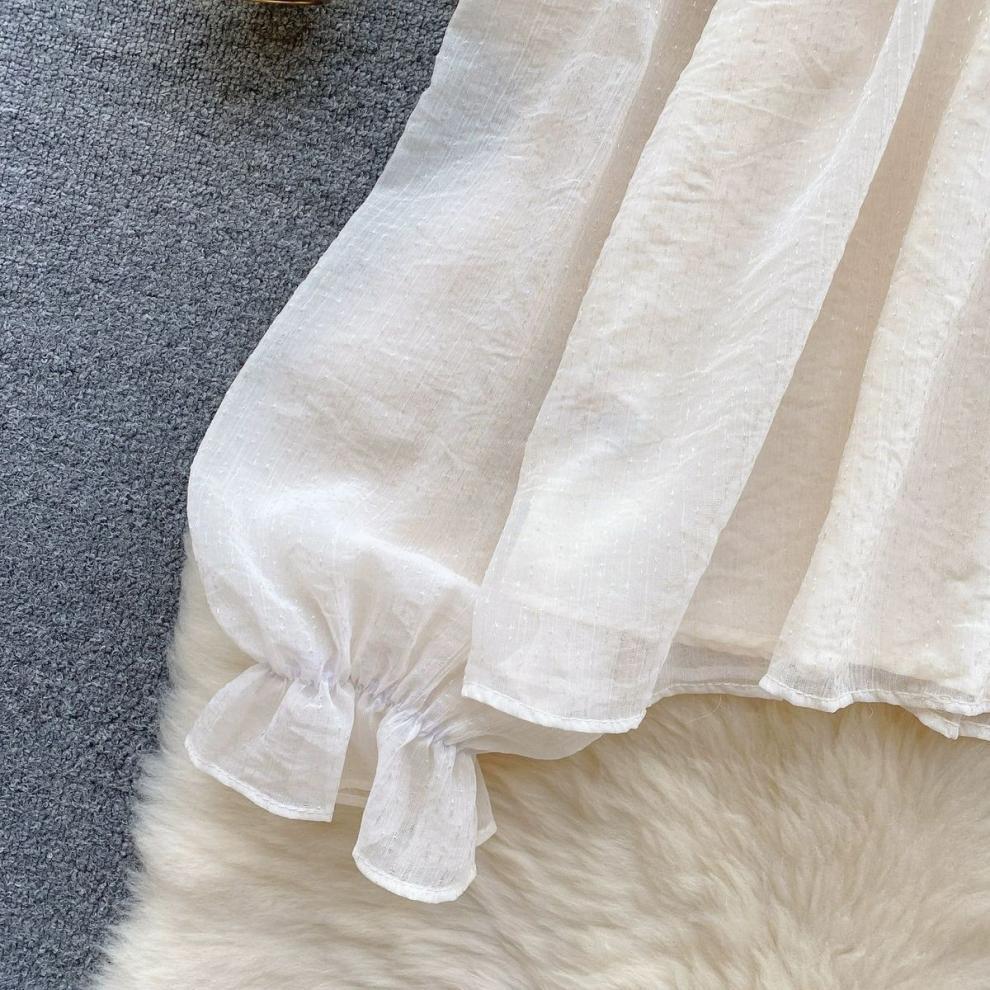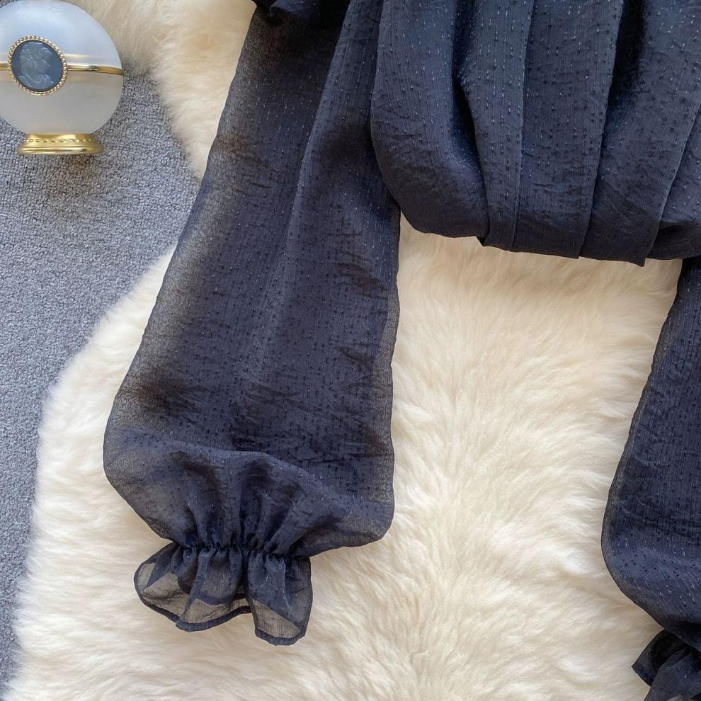 여성을 위한 젠틀 스타일 쉬폰 탑, 긴팔, 속이 빈 오프숄더 비즈 홀터넥 셔츠, 2025 봄 신상품스토어 가기