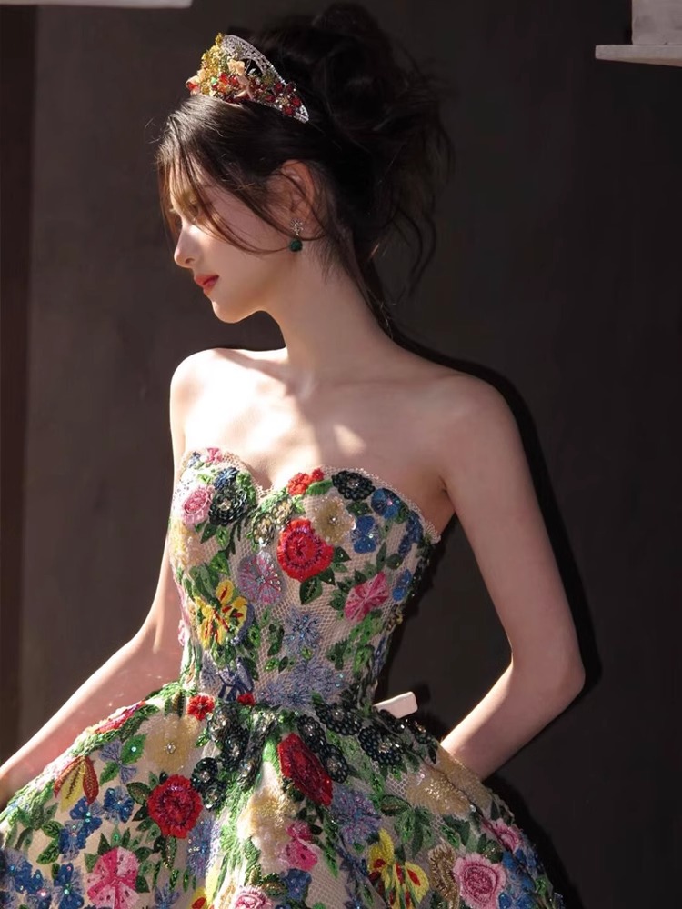 중공업 프랑스 도망자 공주 투투 스커트 성인식 생일 드레스 여성을위한 하이 엔드 라이트 럭셔리 틈새 튜브 탑 드레스스토어 가기