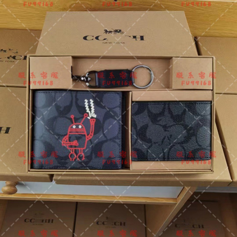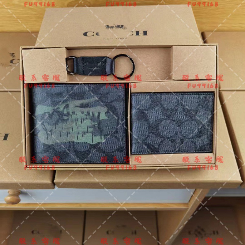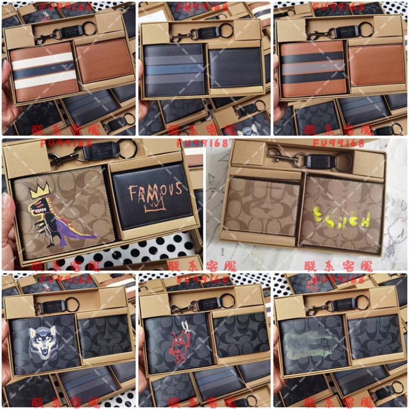 대외 무역 뜨거운 판매 남자의 인쇄 낙서 짧은 사업 레저 줄무늬 지갑 접이식 지갑 카드 홀더 키 체인 3