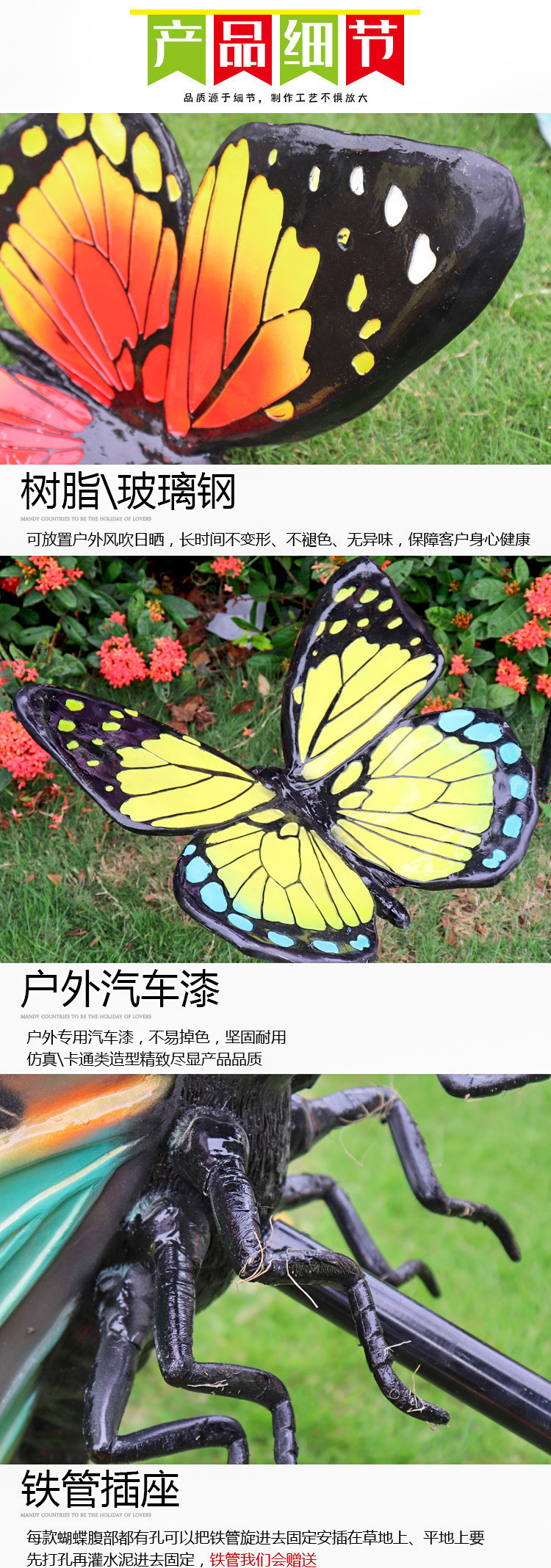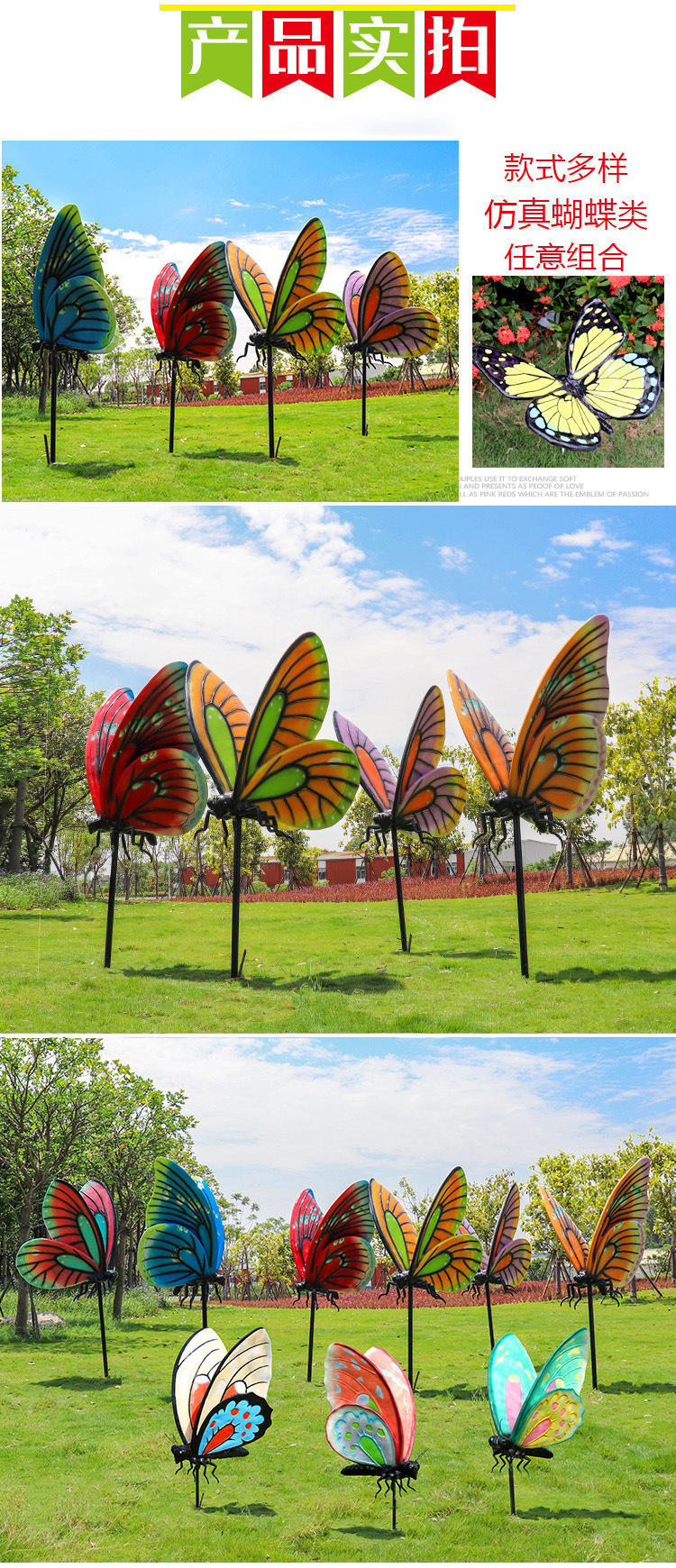 시뮬레이션 된 나비 조각 야외 FRP 정원 숲 풍경 잔디 조경 빛나는 동물 장식 장식품스토어 가기