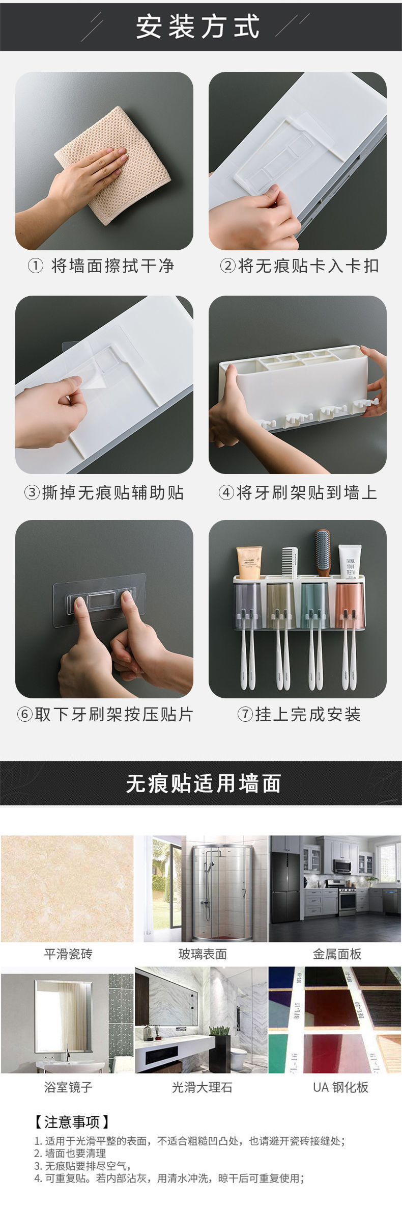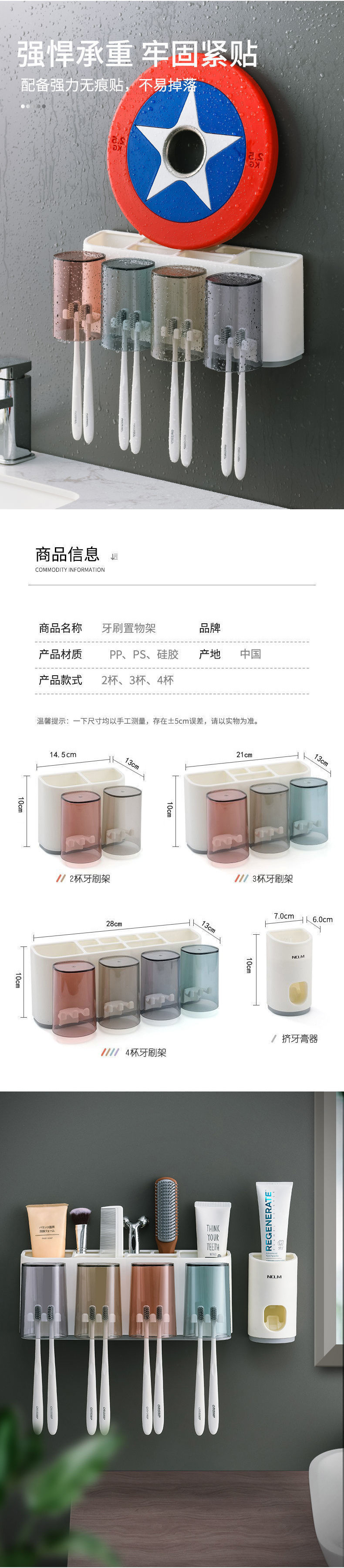 칫솔 홀더 세트 펀치 프리 흡입 벽형 치약 짜기 아티팩트 브러쉬 컵 입 세척 컵 치아스토어 가기