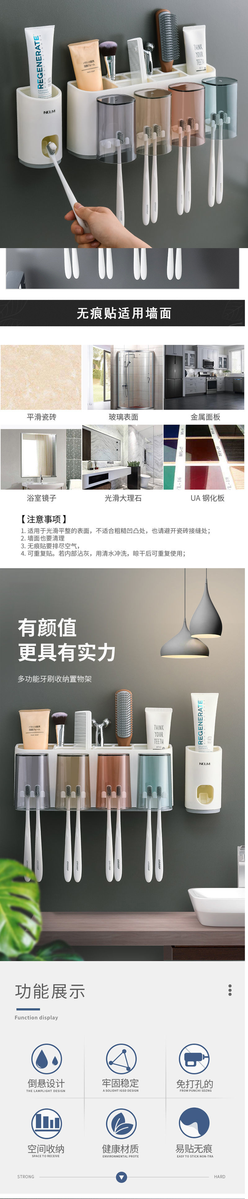 칫솔 홀더 세트 펀치 프리 흡입 벽형 치약 짜기 아티팩트 브러쉬 컵 입 세척 컵 치아