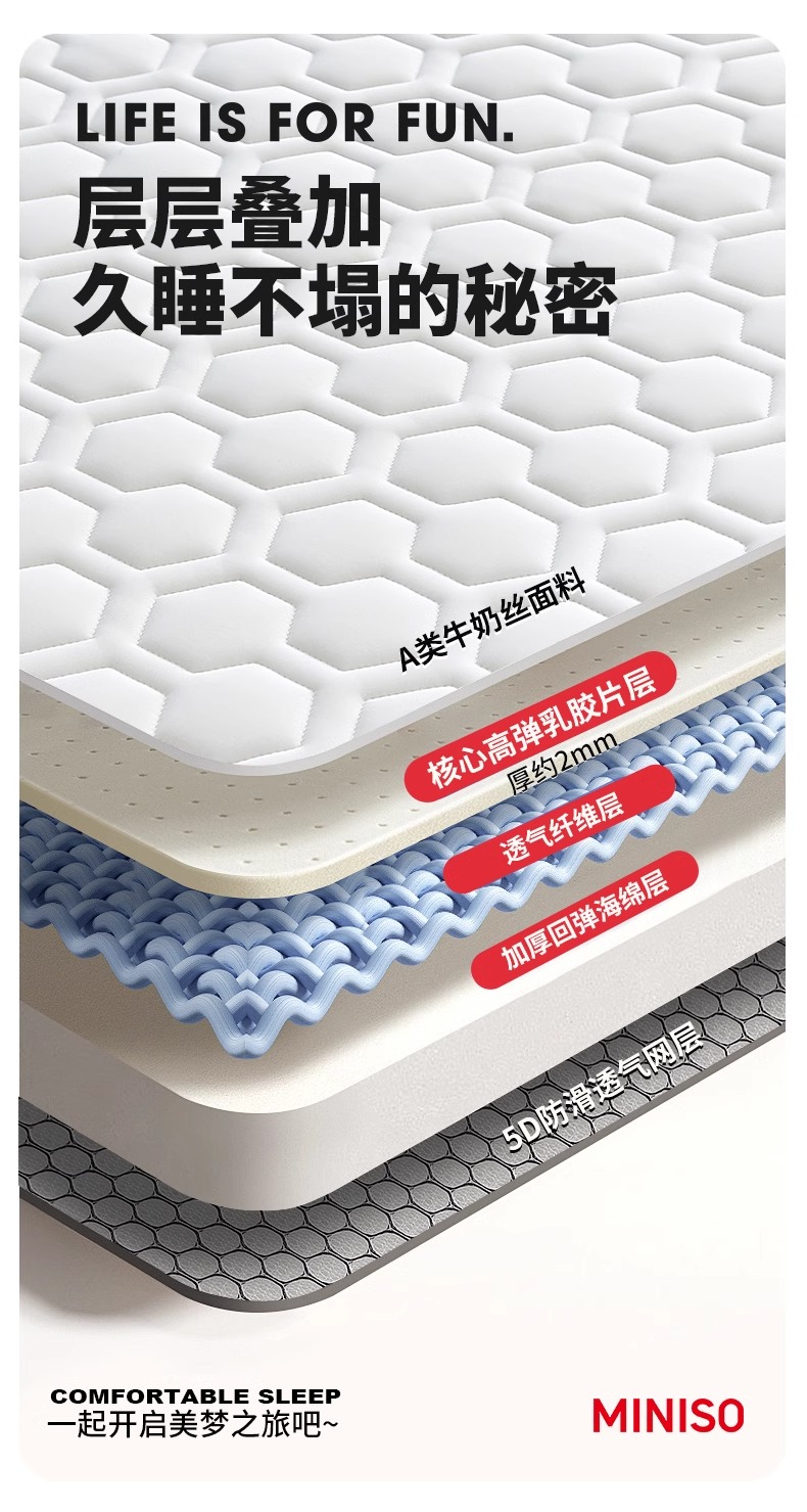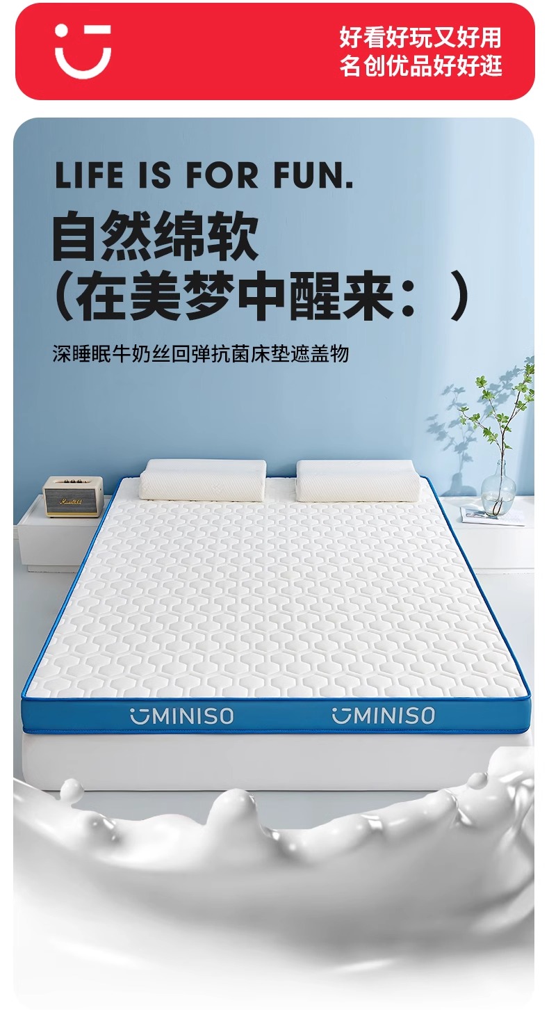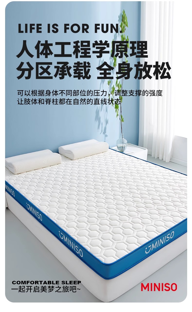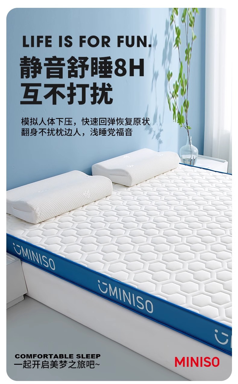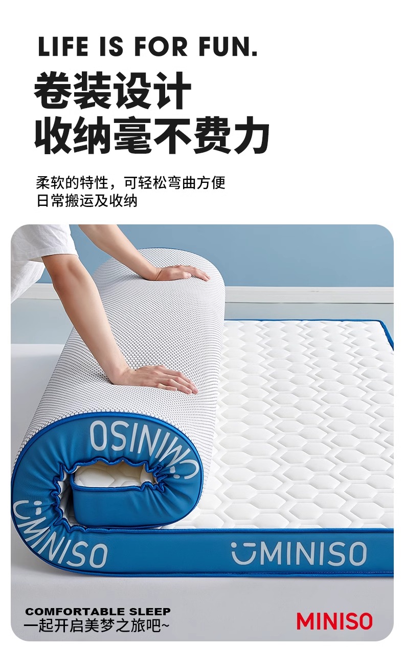Miniso 라텍스 메모리 폼 매트리스 커버 부드러운 쿠션 홈 침실 학생 기숙사 싱글 렌탈스토어 가기