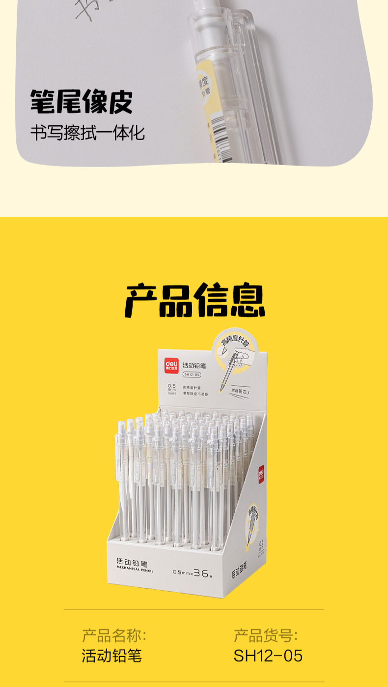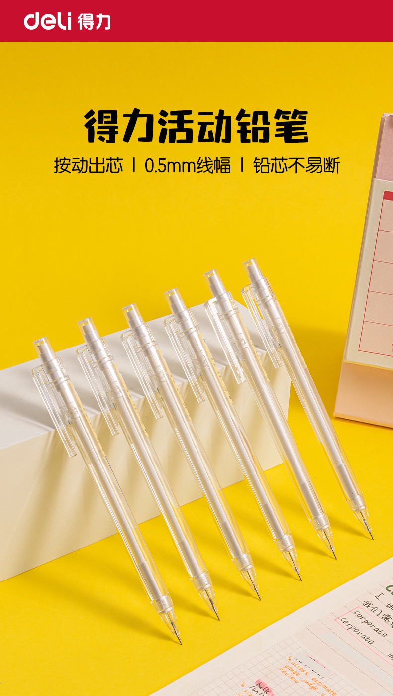 델리 SH12 샤프펜슬 0.5mm 자동연필 학생 시험용 깨지기 쉬운 코어 0.7 투명 자동펜스토어 가기