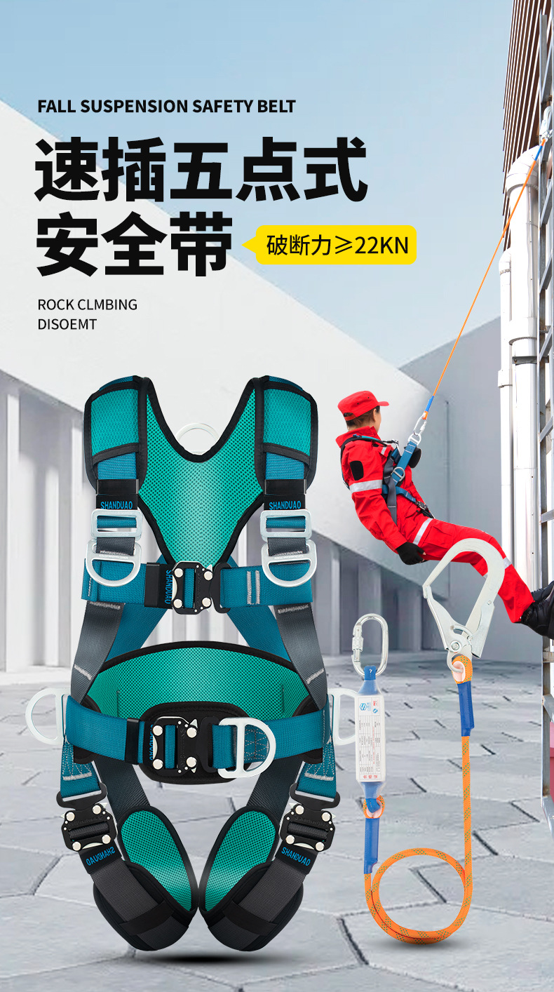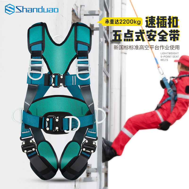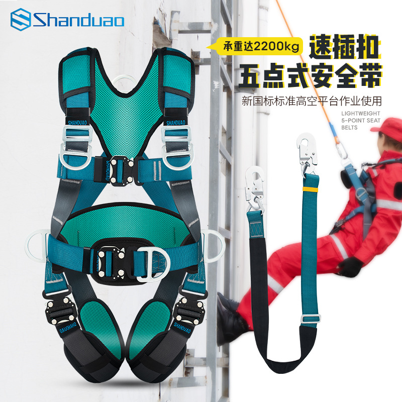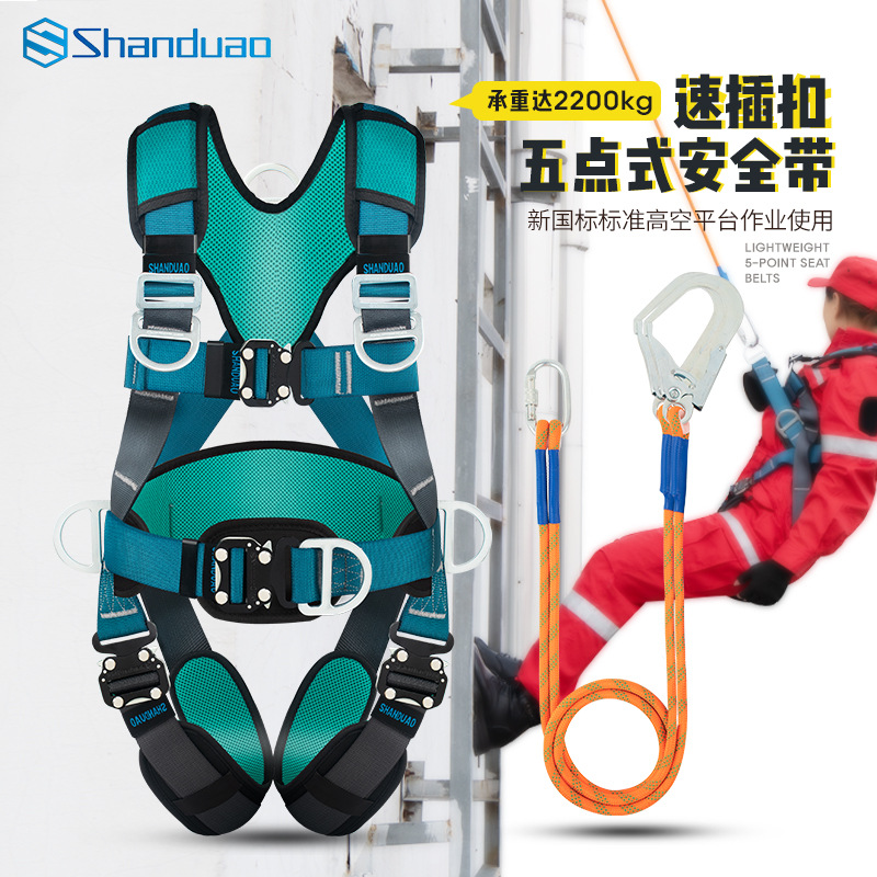 고공 작업용 Santuo 5점식 안전벨트 AD9106 안전로프 풀세트(이중 후크 세트 포함) 국가표준