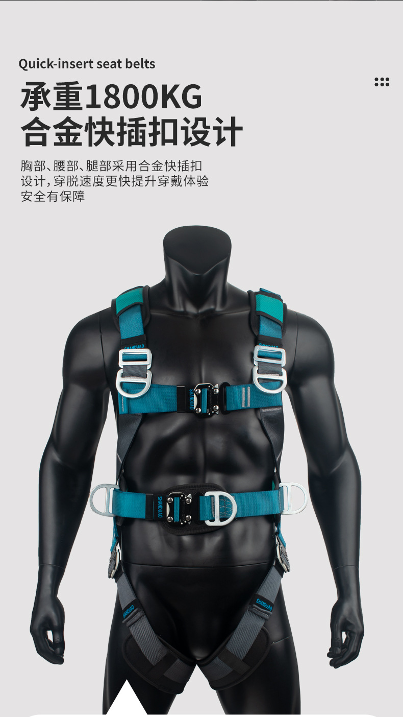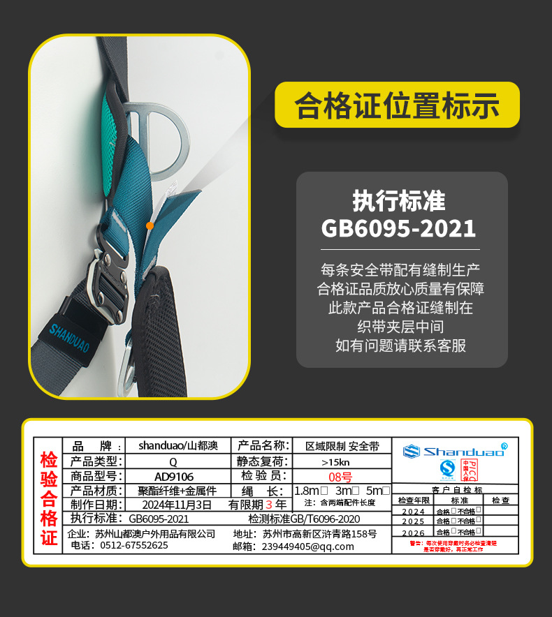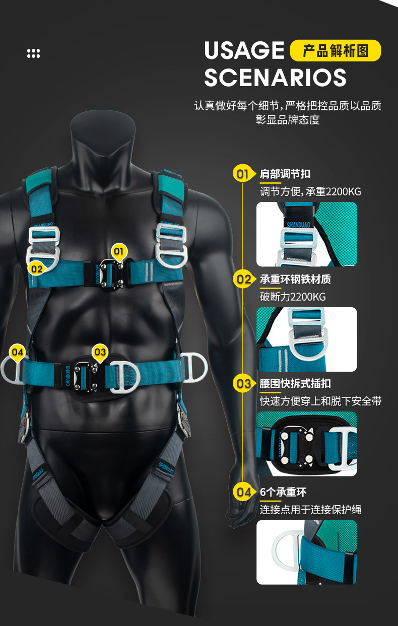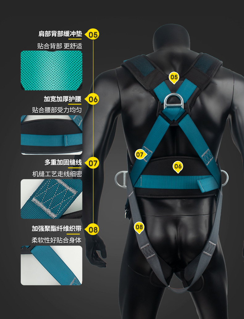 고공 작업용 Santuo 5점식 안전벨트 AD9106 안전로프 풀세트(이중 후크 세트 포함) 국가표준