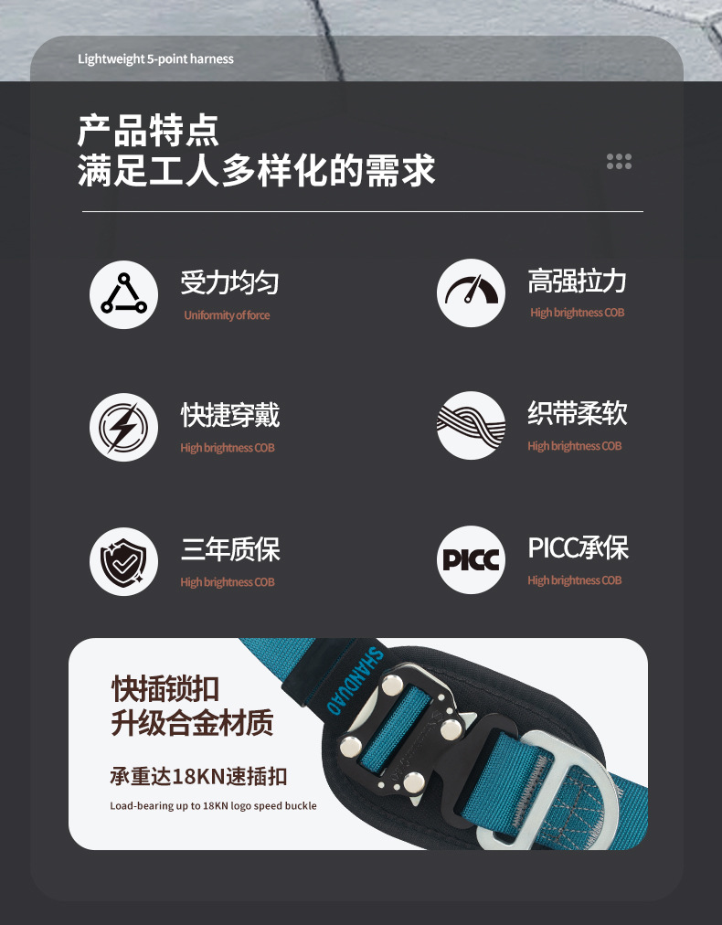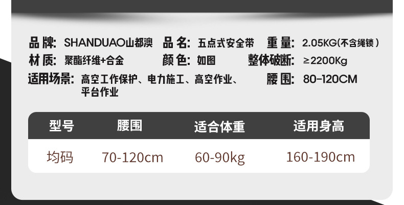 고공 작업용 Santuo 5점식 안전벨트 AD9106 안전로프 풀세트(이중 후크 세트 포함) 국가표준스토어 가기
