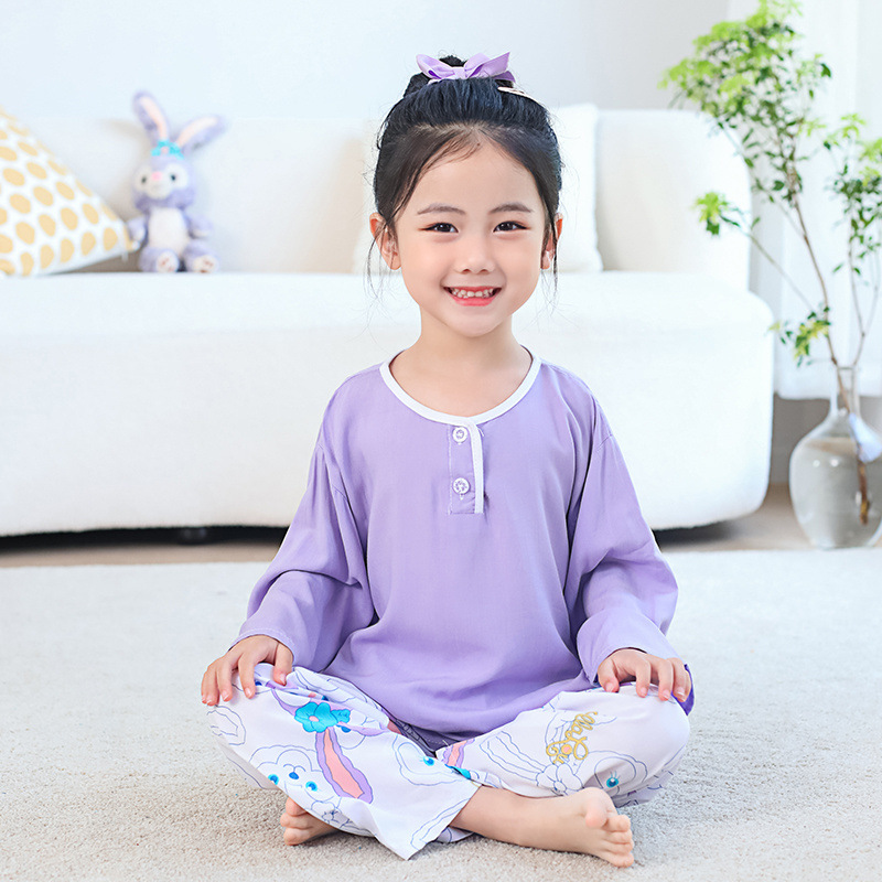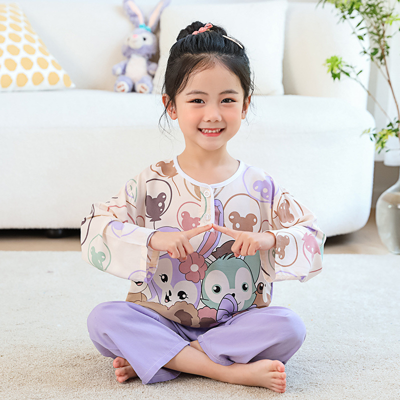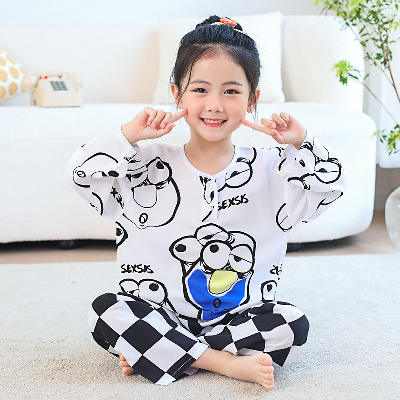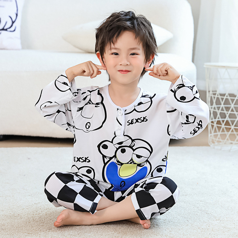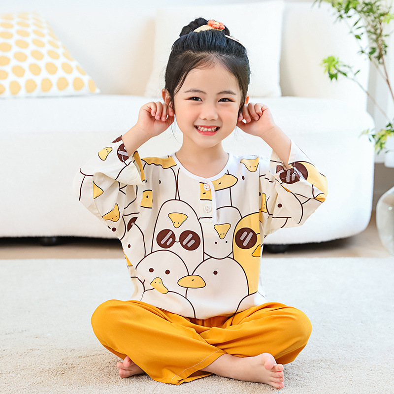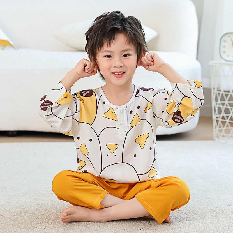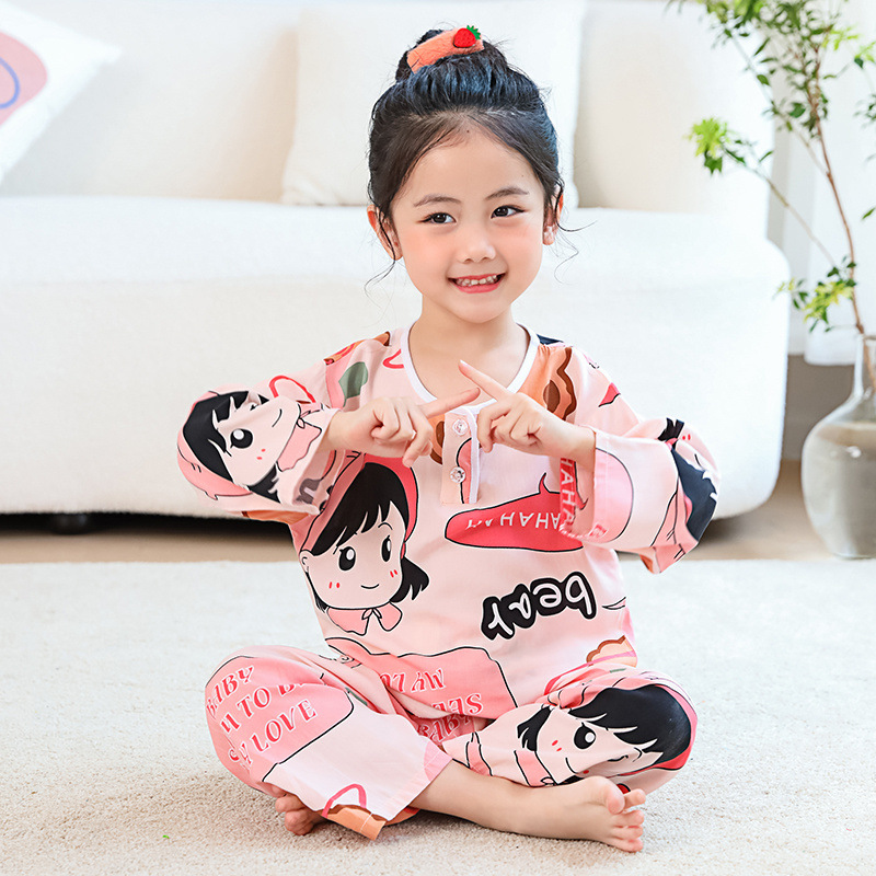 어린이 면화 실크 잠옷 얇은 여름 긴팔 소년 소년 면화 실크 에어컨 가정 의류 소녀 소녀 정장
