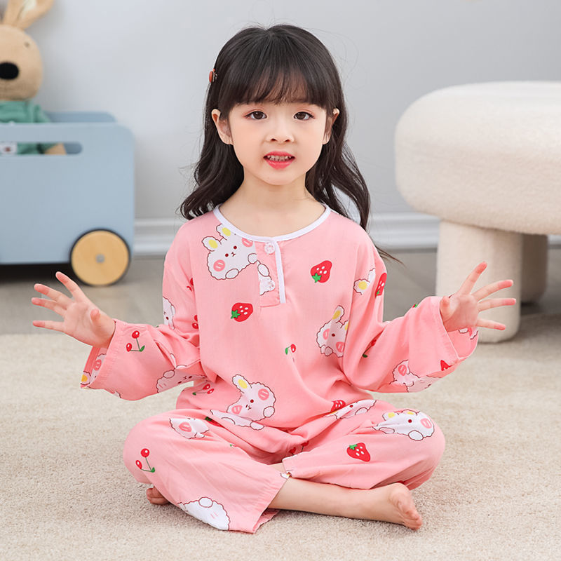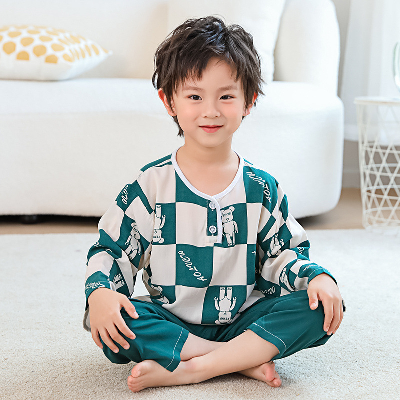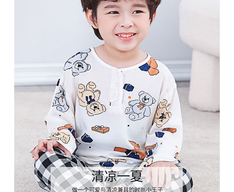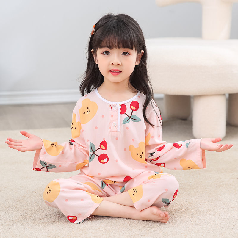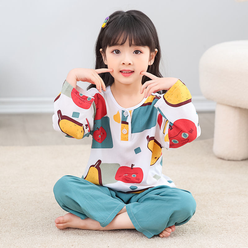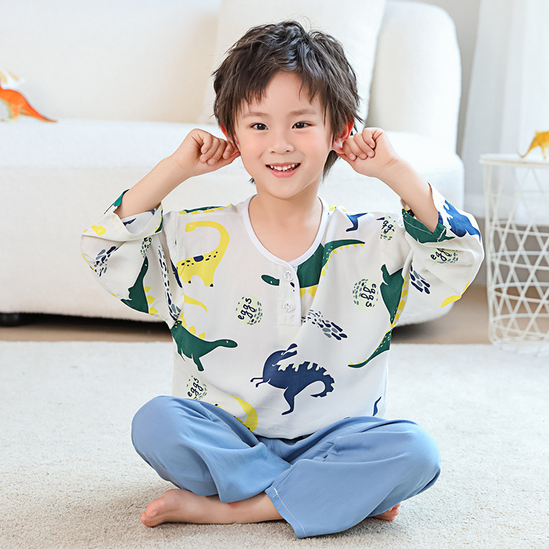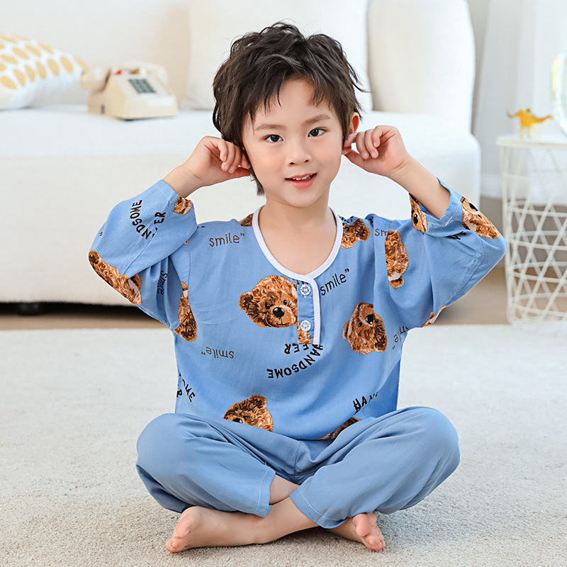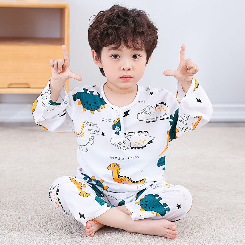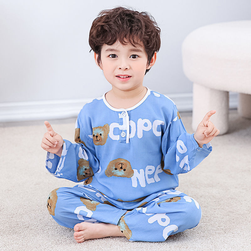 어린이 면화 실크 잠옷 얇은 여름 긴팔 소년 소년 면화 실크 에어컨 가정 의류 소녀 소녀 정장스토어 가기