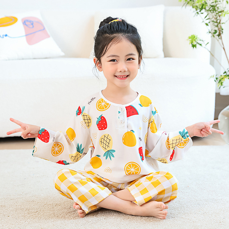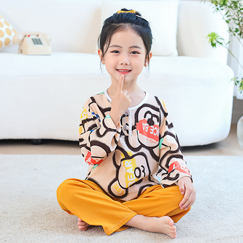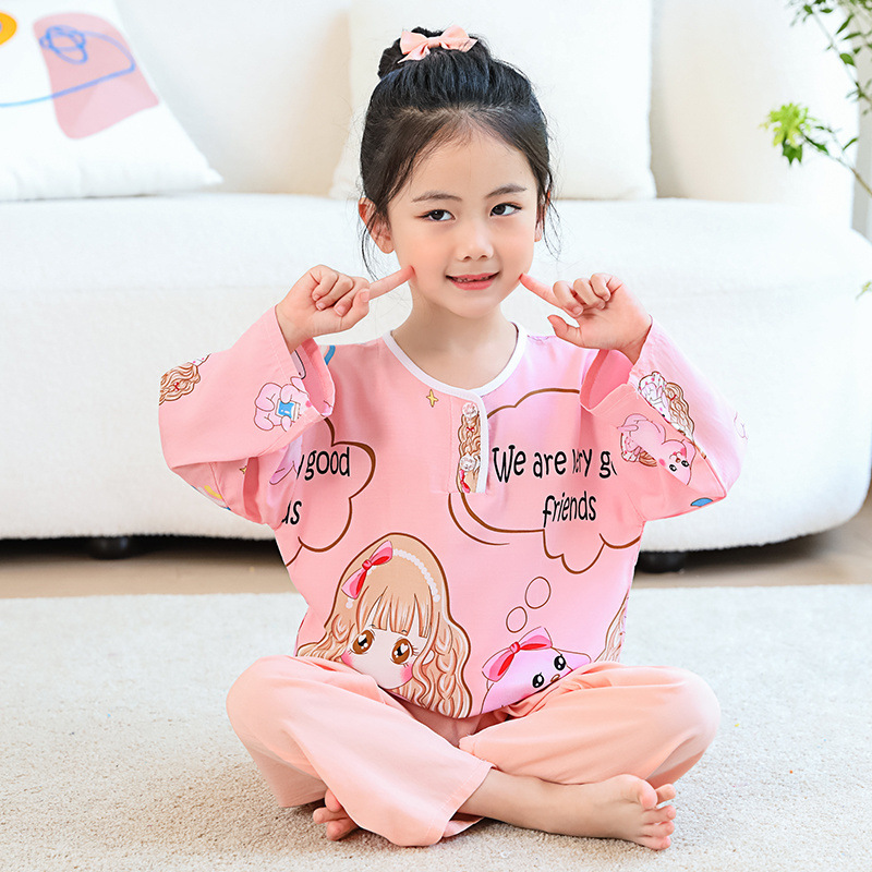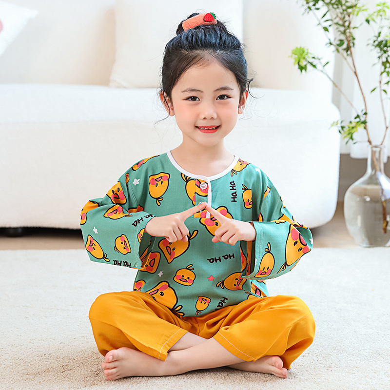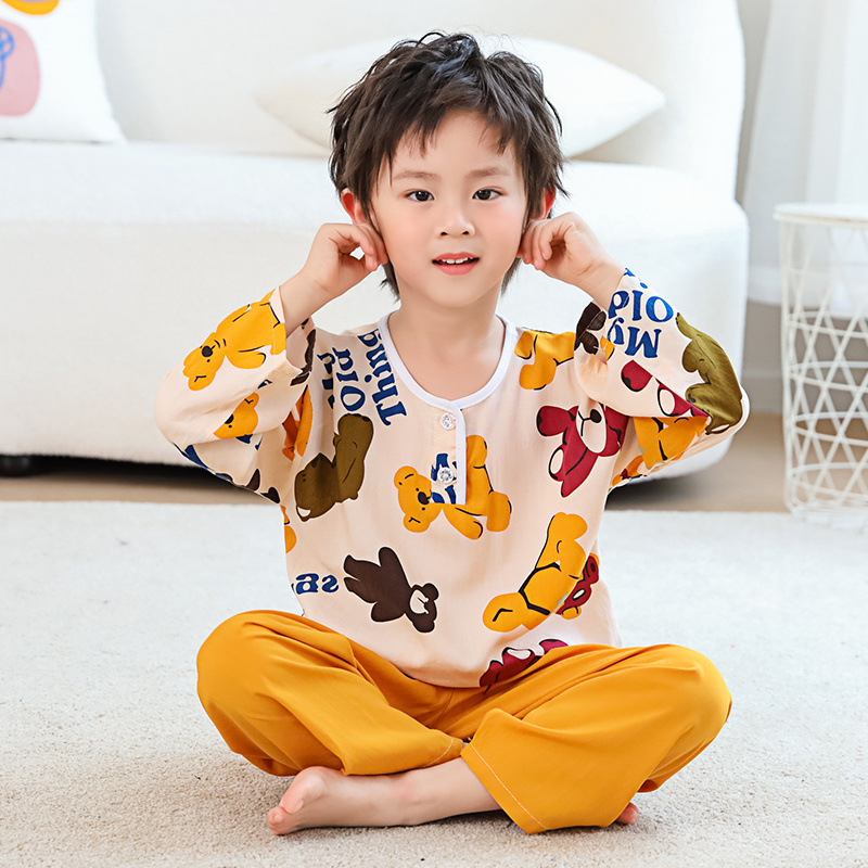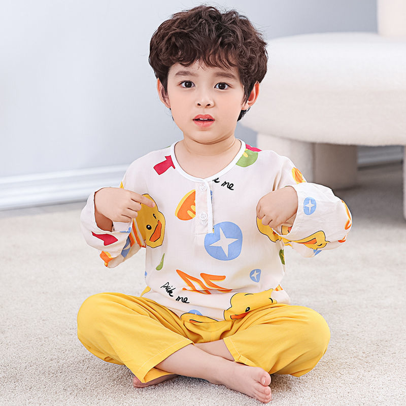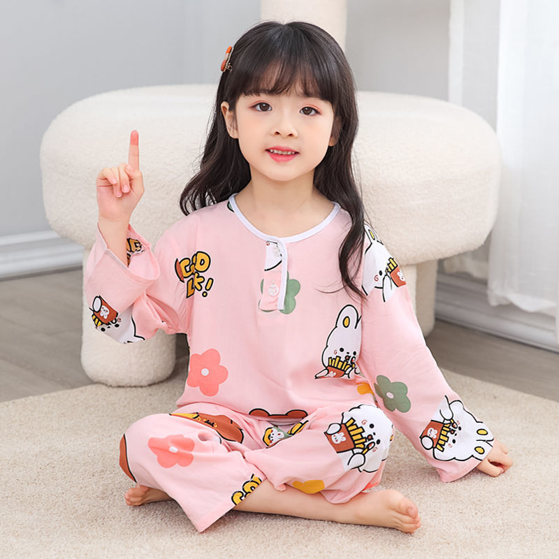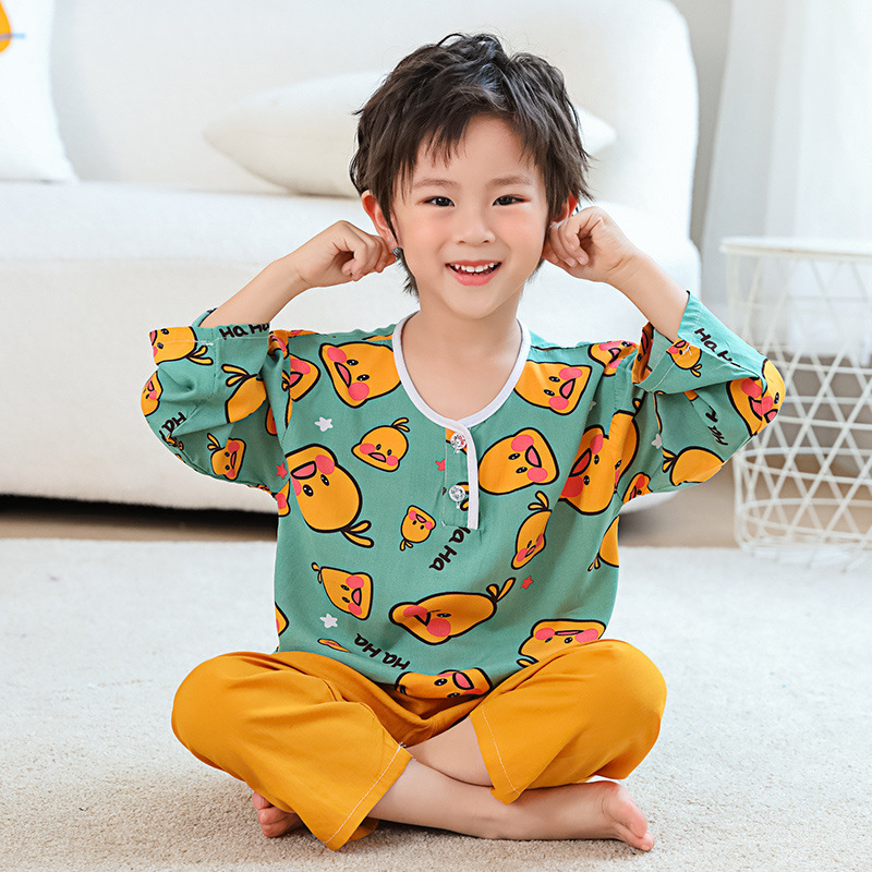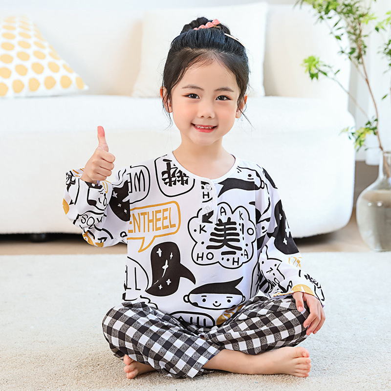 어린이 면화 실크 잠옷 얇은 여름 긴팔 소년 소년 면화 실크 에어컨 가정 의류 소녀 소녀 정장스토어 가기