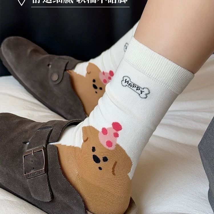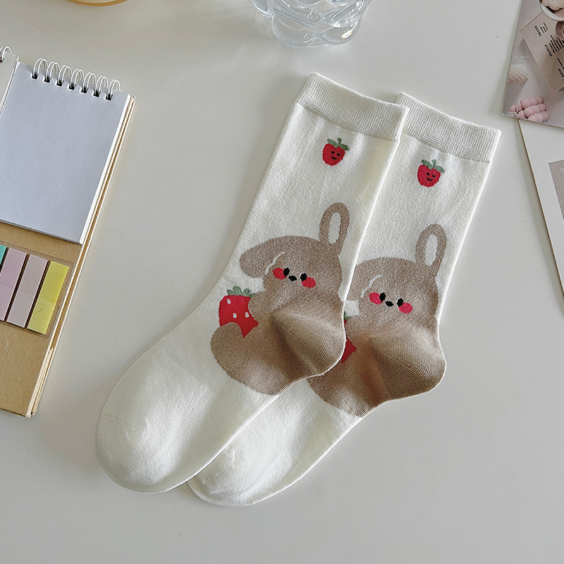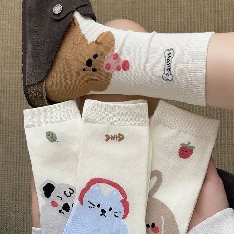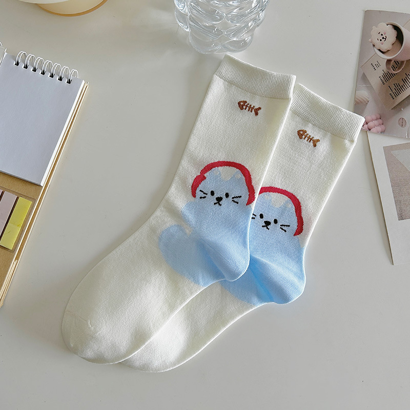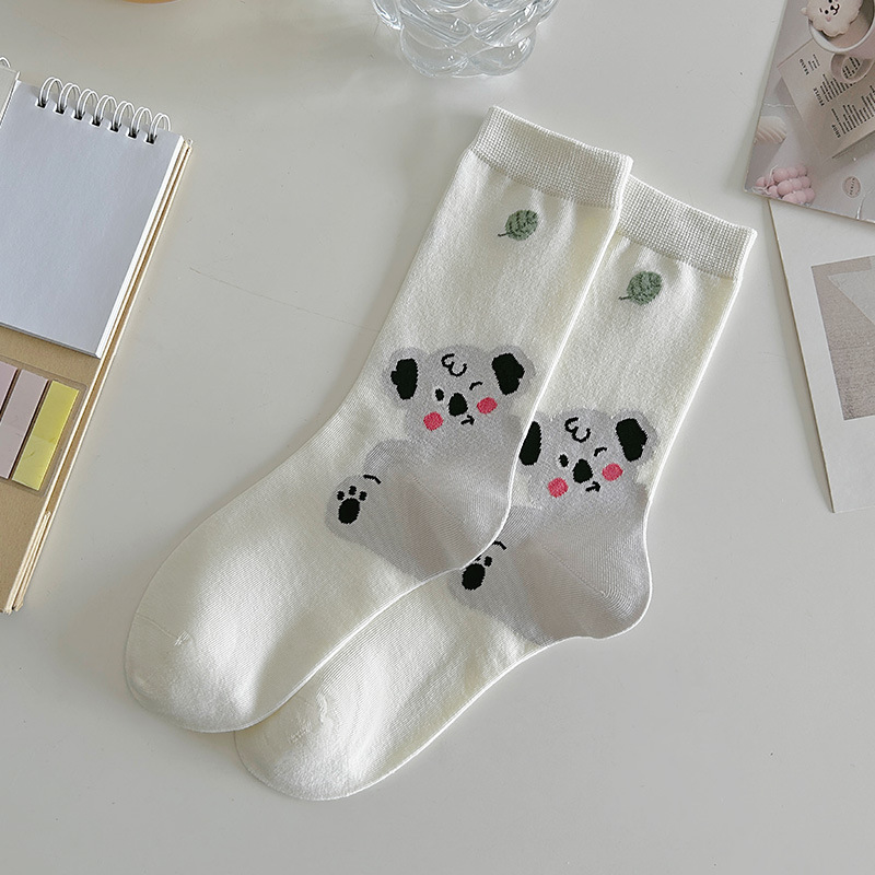 새로운 흰색 양말 봄과 가을 중간 튜브 귀여운 만화 일본 스타일 여름 얇은 긴 양말 대학 스타일스토어 가기