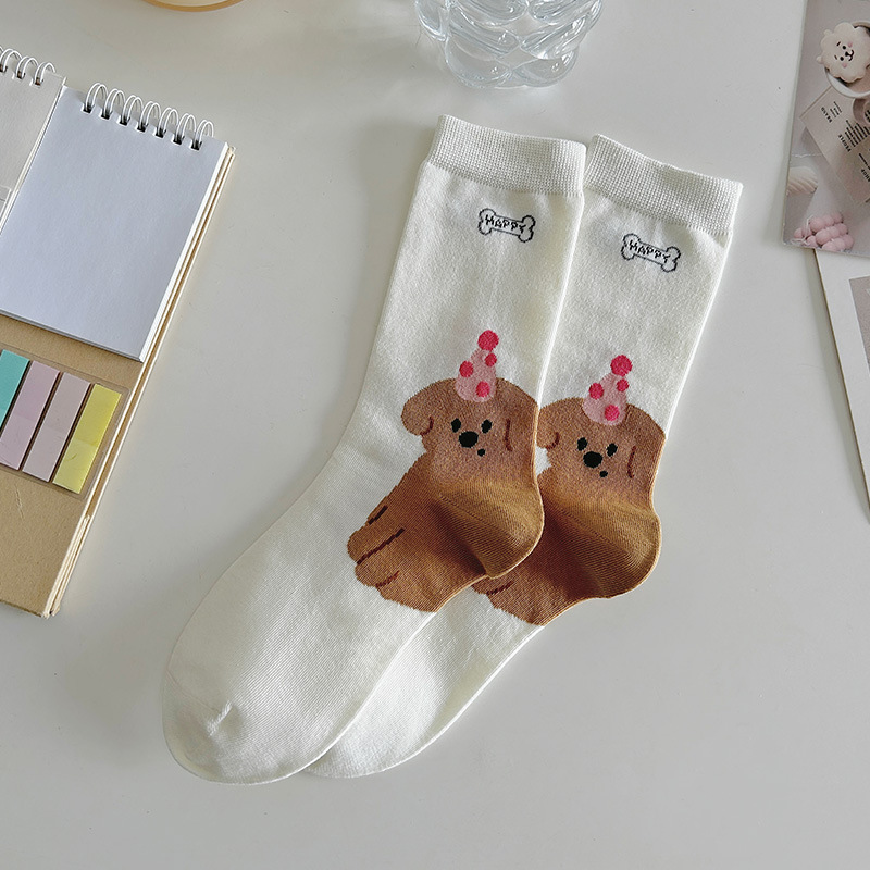 새로운 흰색 양말 봄과 가을 중간 튜브 귀여운 만화 일본 스타일 여름 얇은 긴 양말 대학 스타일