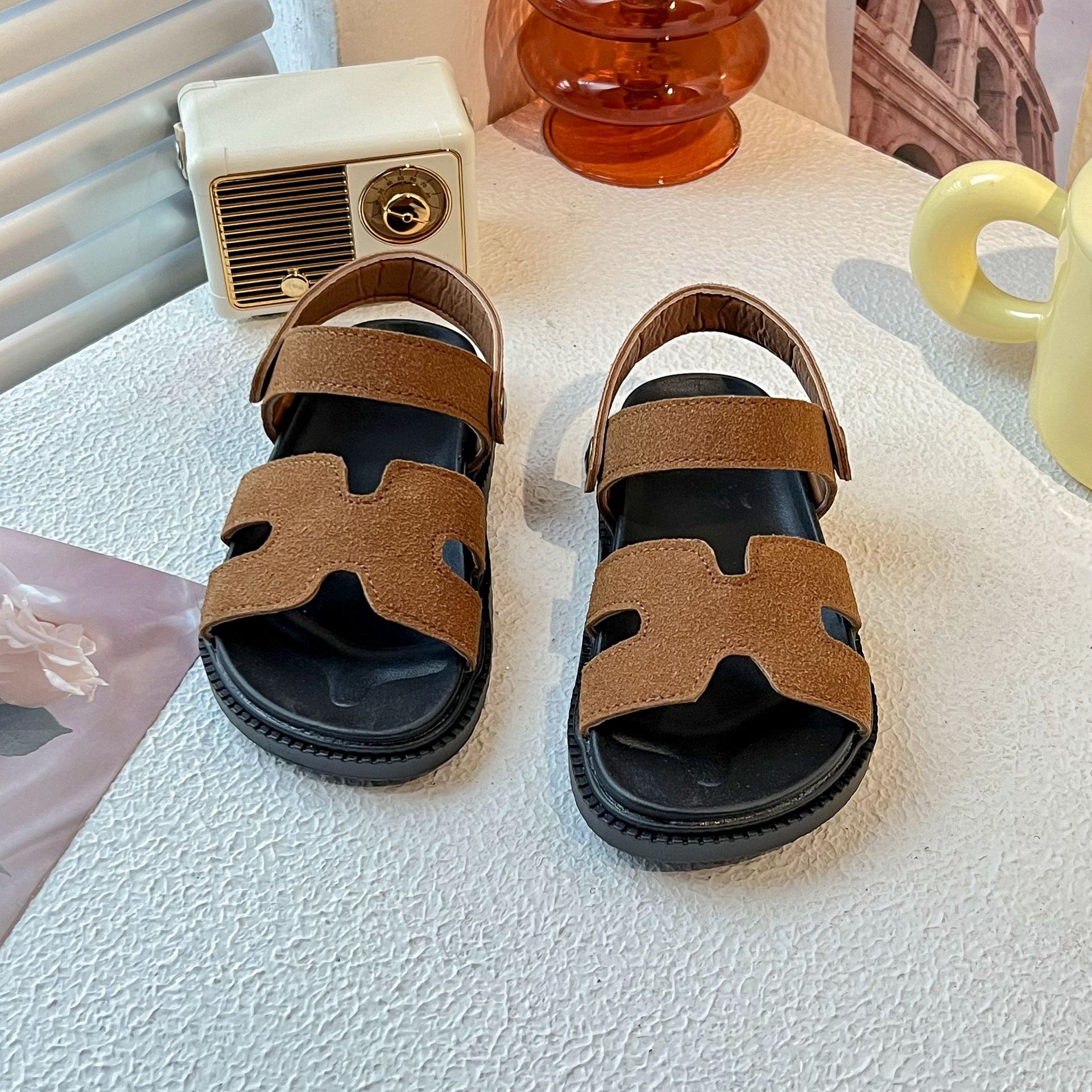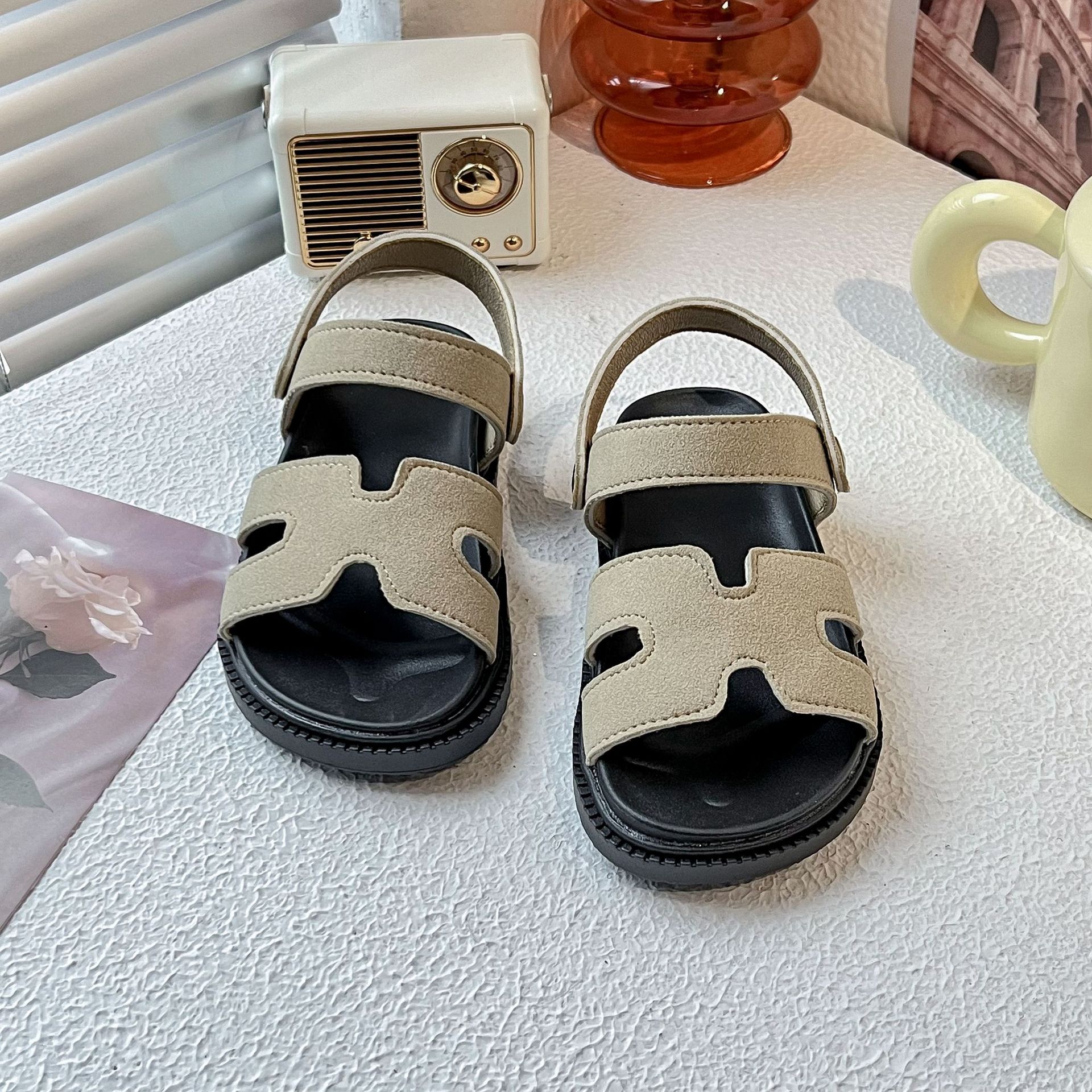 소녀 한국식 심플 오픈 발가락 샌들 2025 여름 신형 소프트 솔 중대형 아동용 슬립 샌들