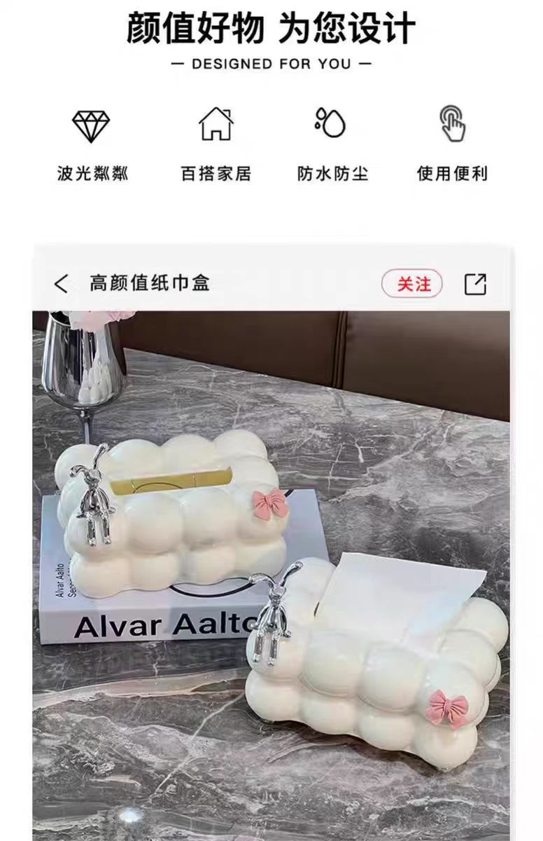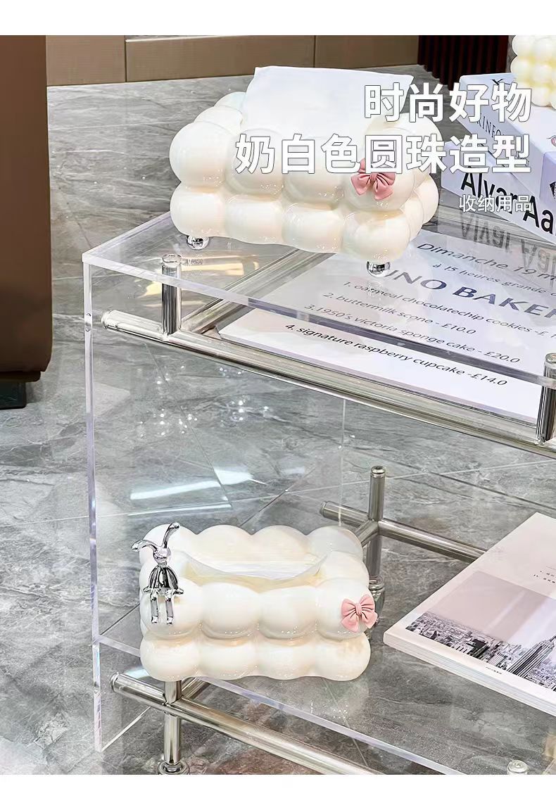 유럽 크림 스타일 마시멜로 플라스틱 티슈 상자 거실 식탁 냅킨 종이 상자 데스크탑 장식품
