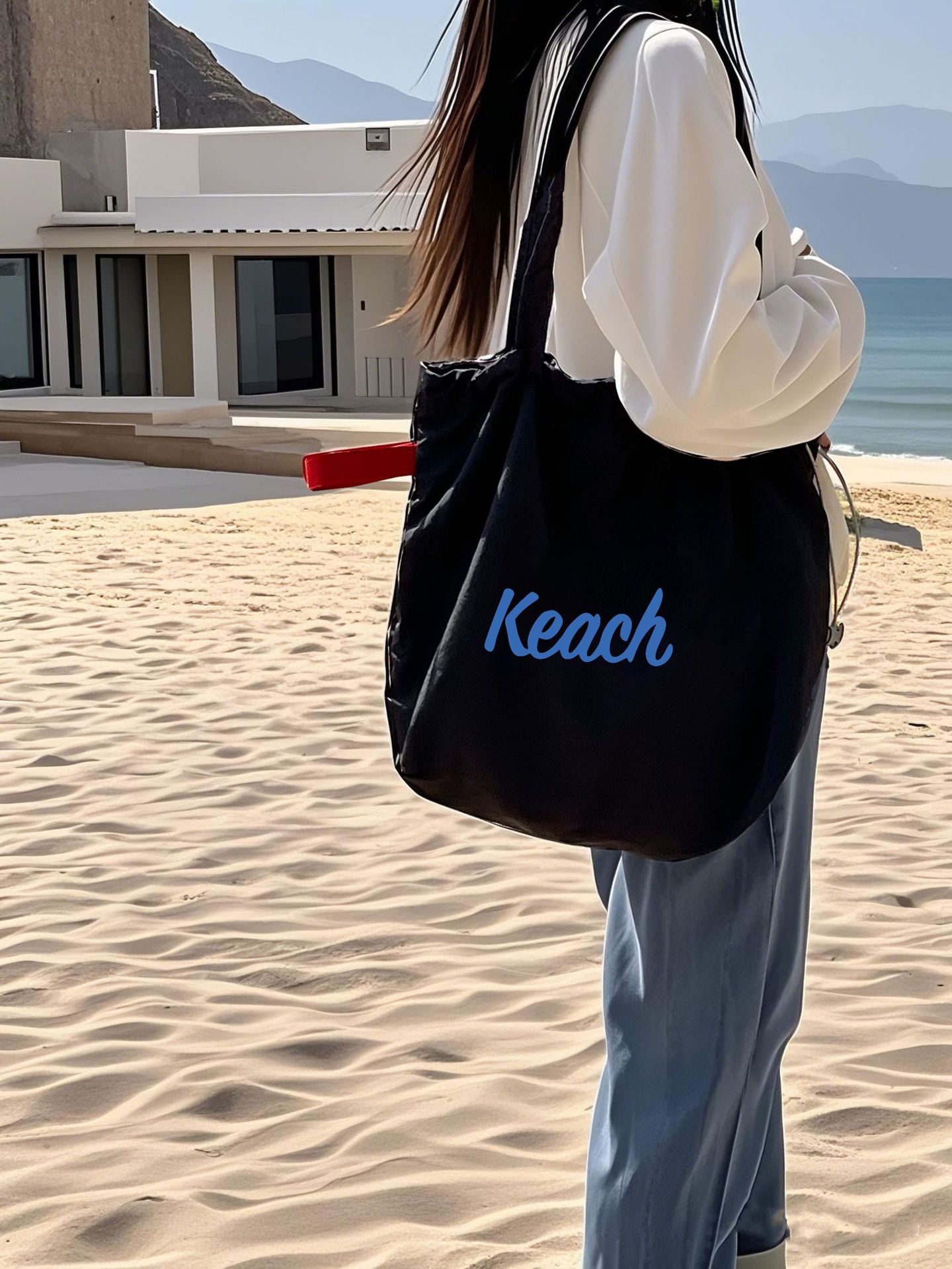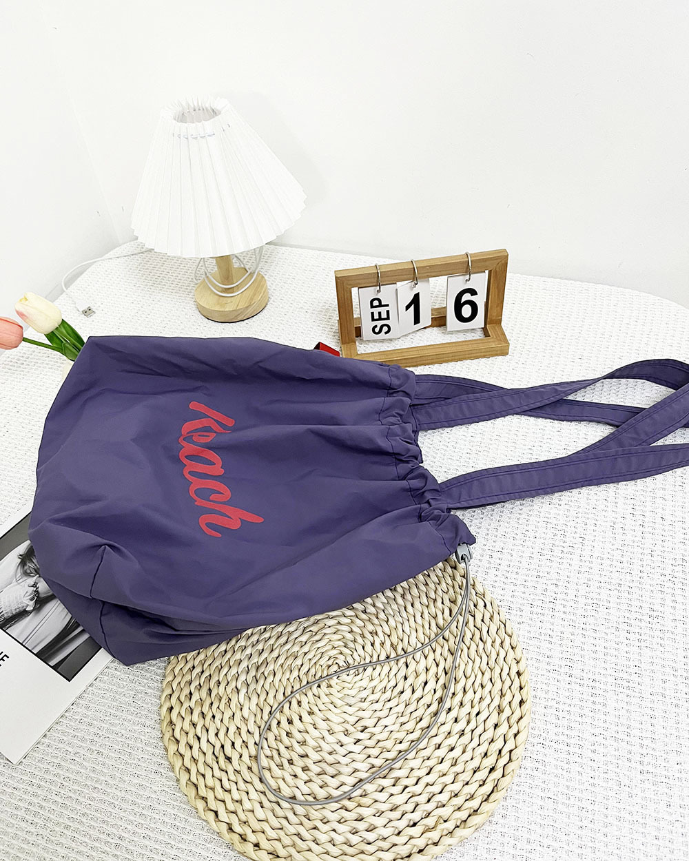 한국 스타일 새 편지 인쇄 가방 여성 대용량 나일론 어깨 가방 캐주얼 올 매치 휴대용 줄거리 가방스토어 가기