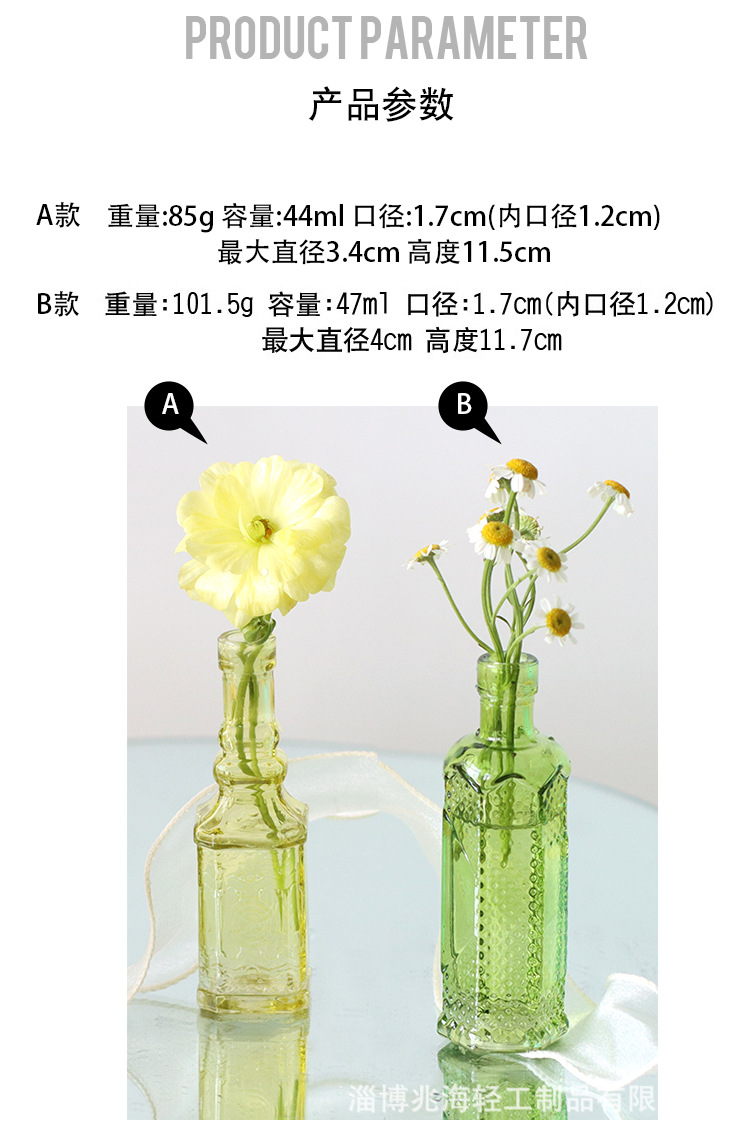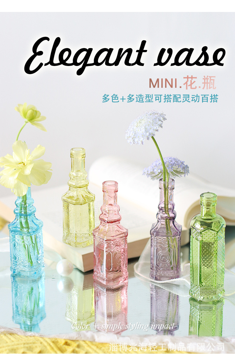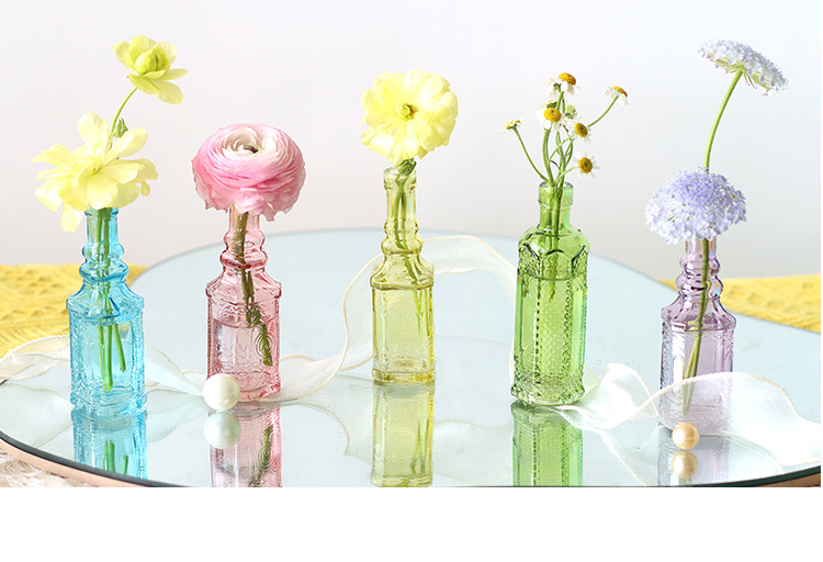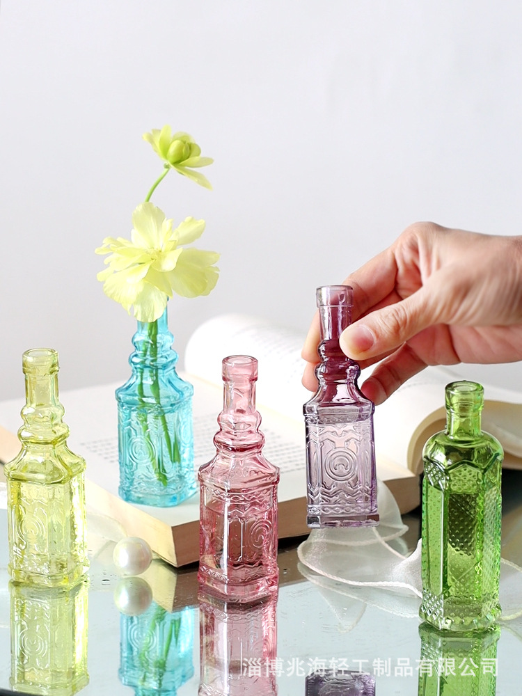 국경 간 복고풍 양각 프랑스 유리 탁상 미니 꽃병 컬러 인 하이 엔드 사진 소품 장식스토어 가기