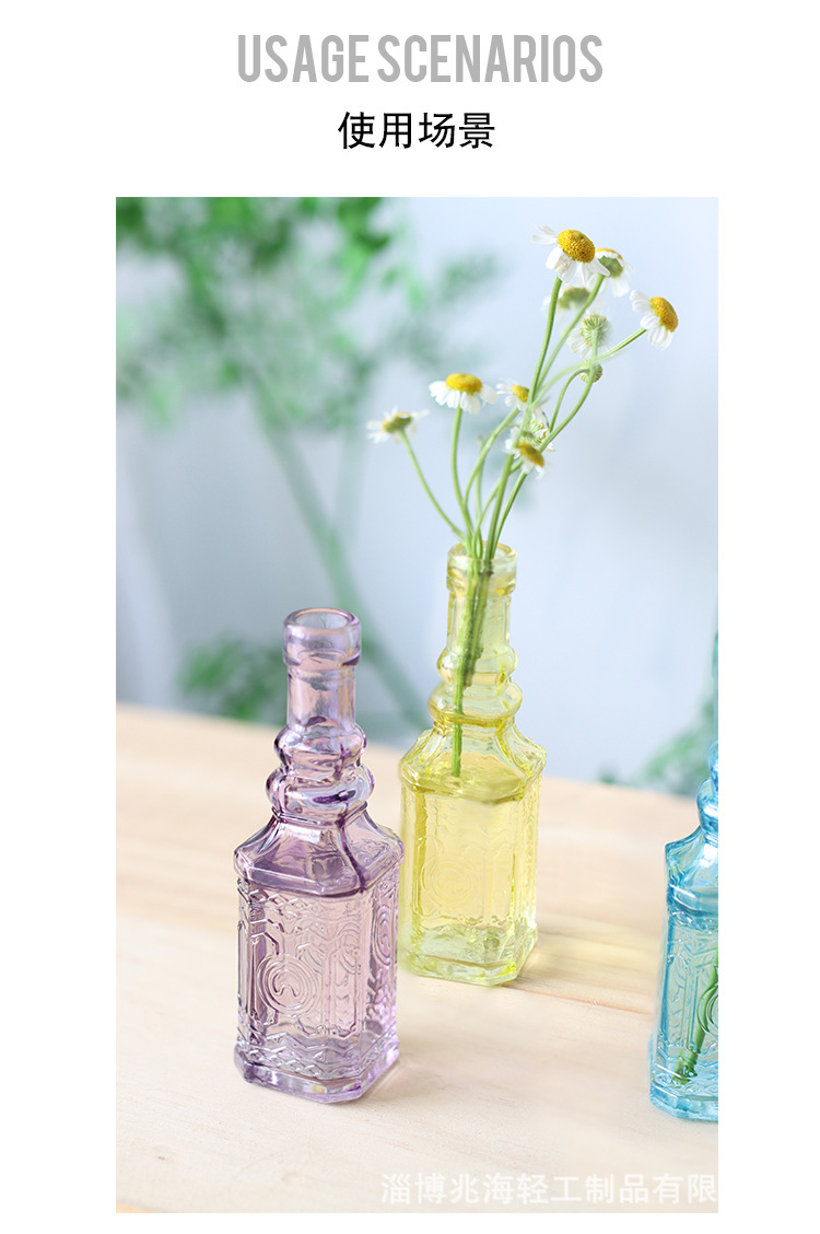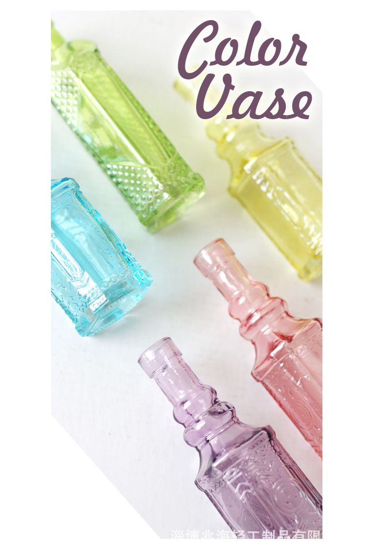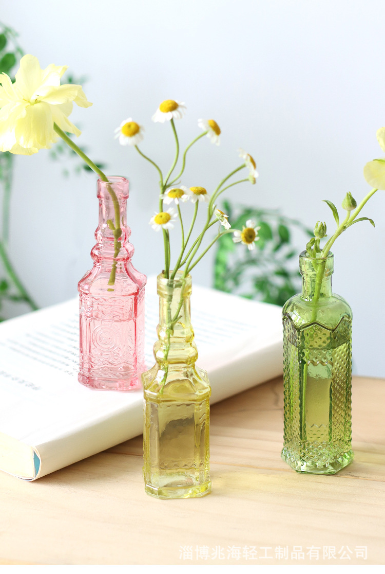 국경 간 복고풍 양각 프랑스 유리 탁상 미니 꽃병 컬러 인 하이 엔드 사진 소품 장식