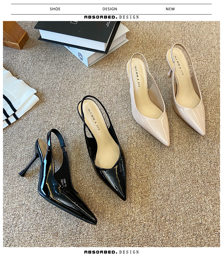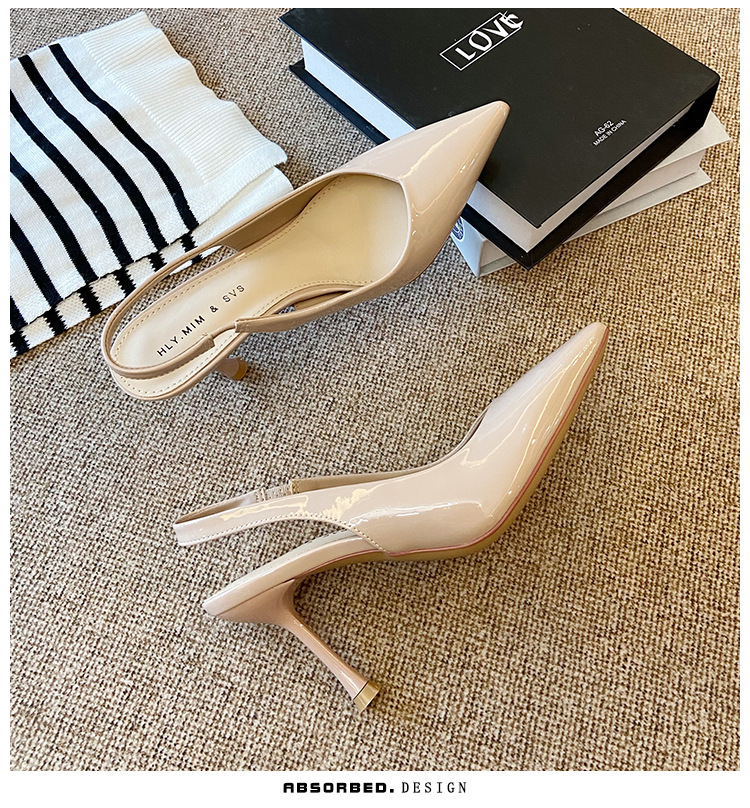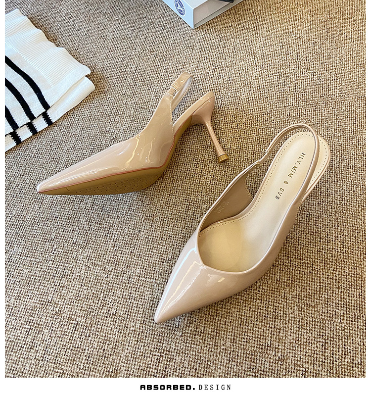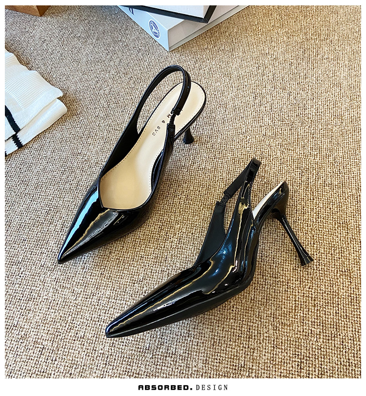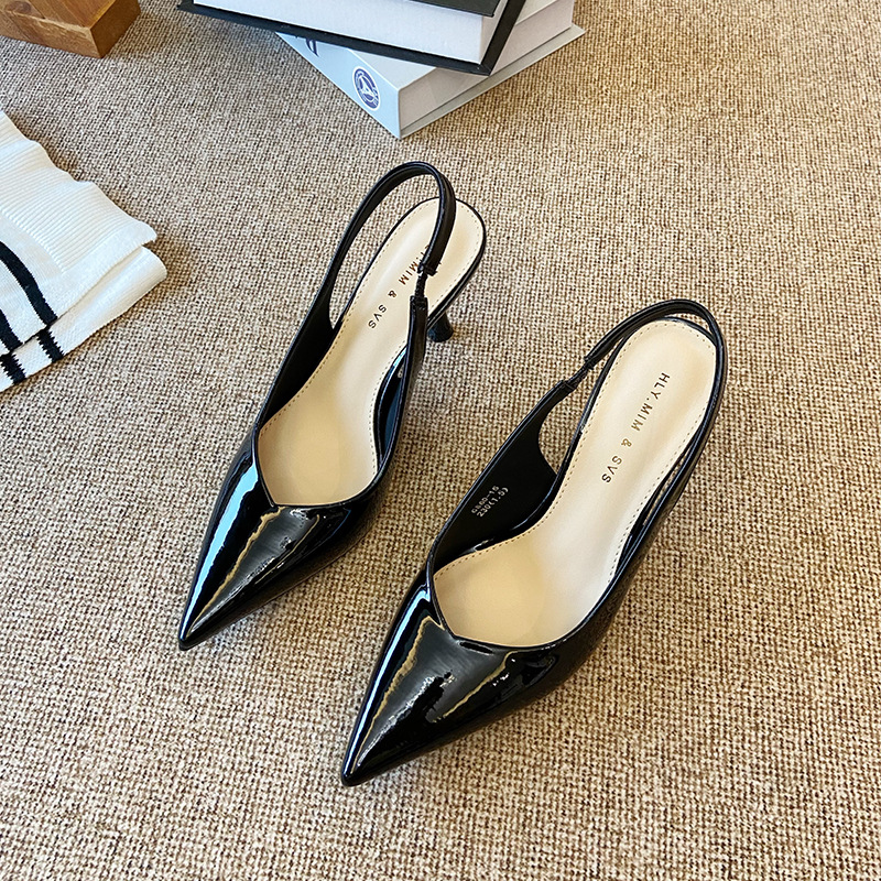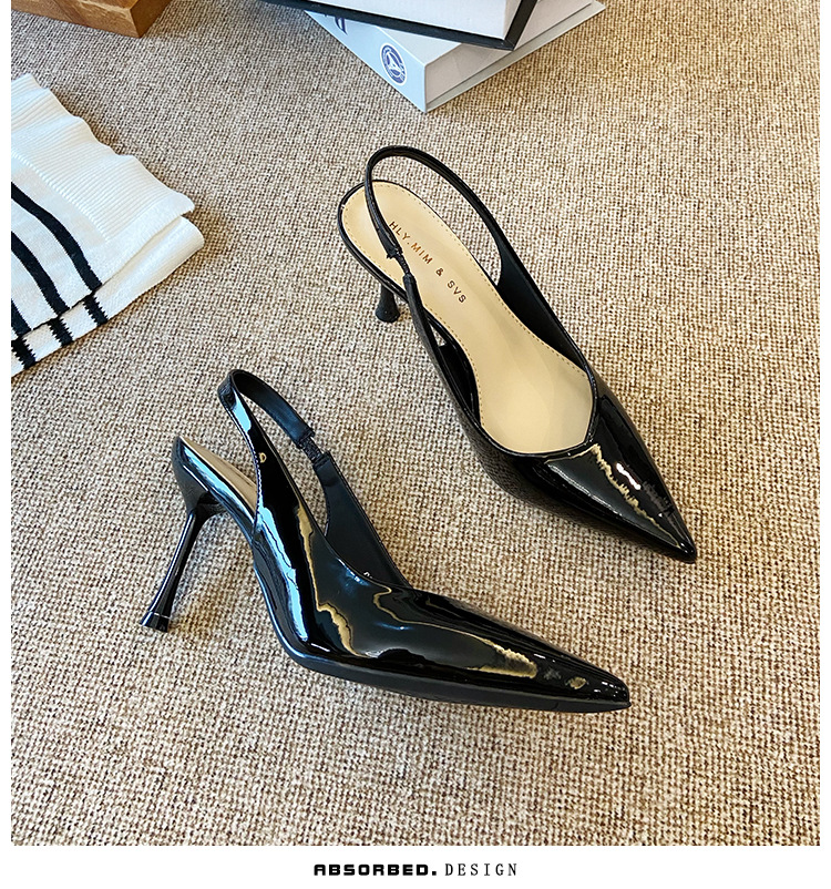 G860-15 요정 특허 가죽 뒷면 빈 샌들 2025 새로운 여름 여성 하이힐 신발