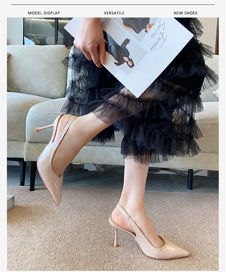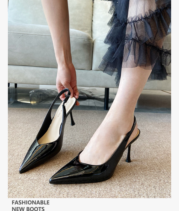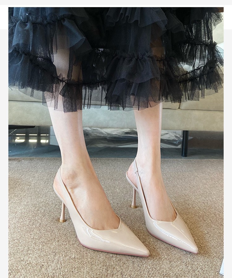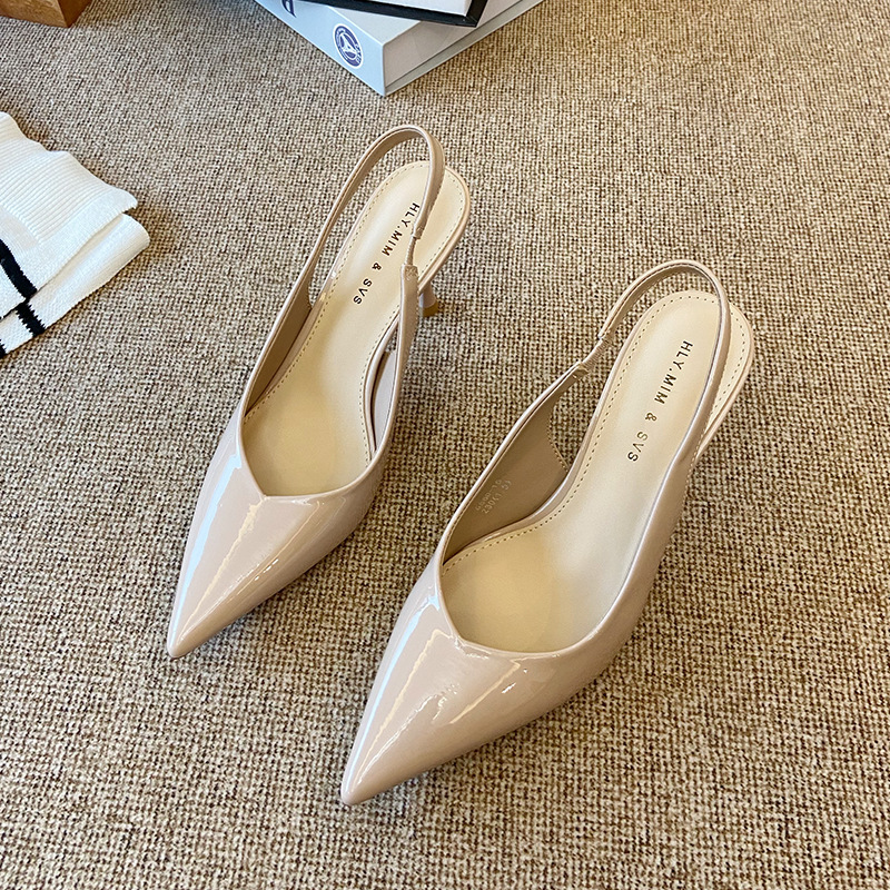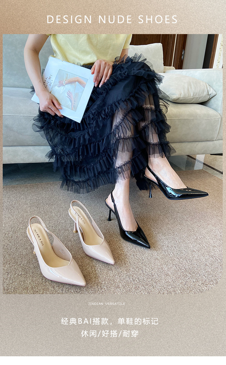 G860-15 요정 특허 가죽 뒷면 빈 샌들 2025 새로운 여름 여성 하이힐 신발