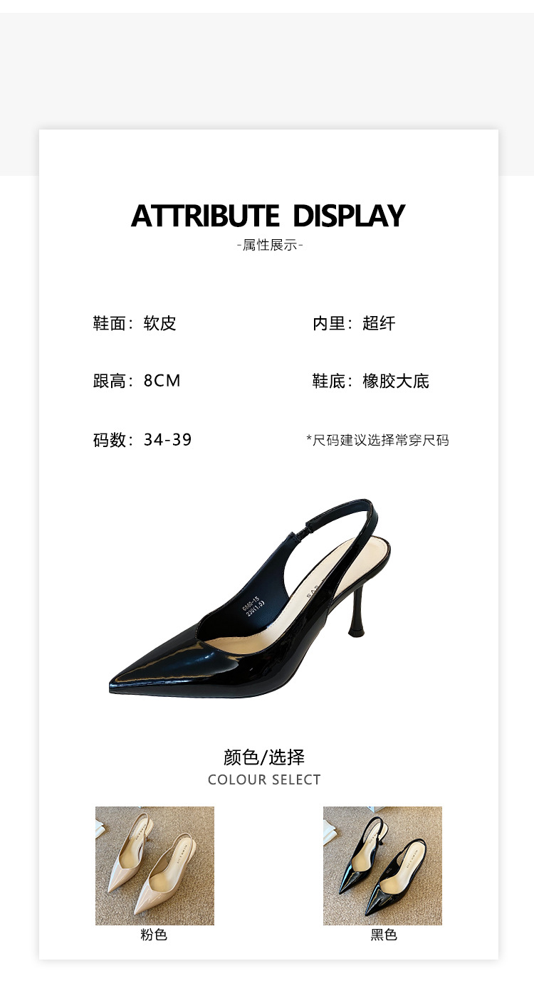 G860-15 요정 특허 가죽 뒷면 빈 샌들 2025 새로운 여름 여성 하이힐 신발스토어 가기