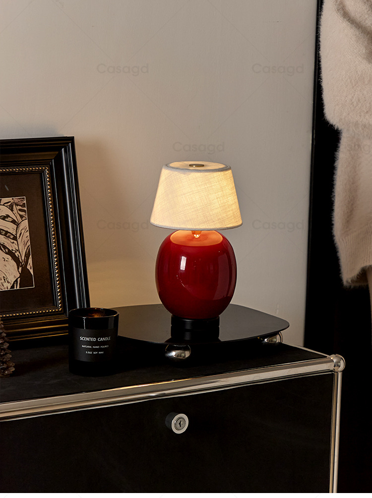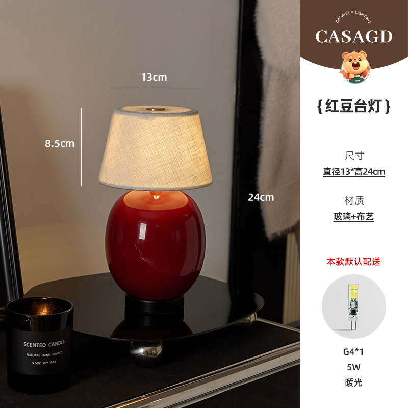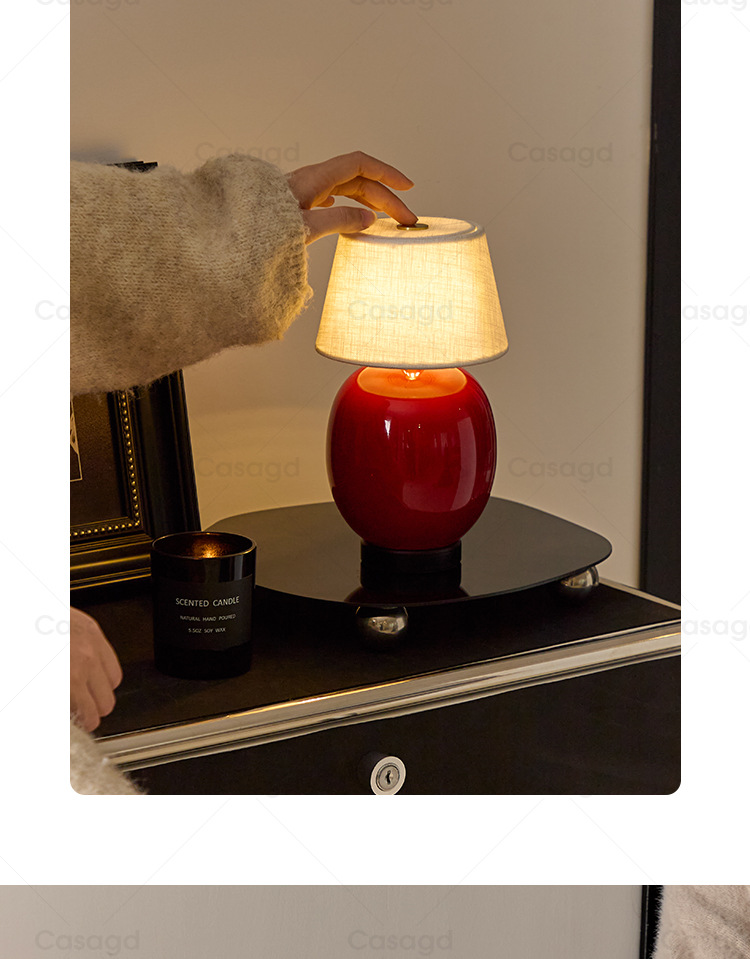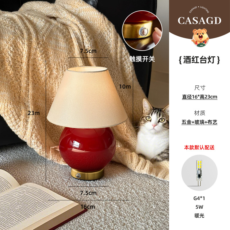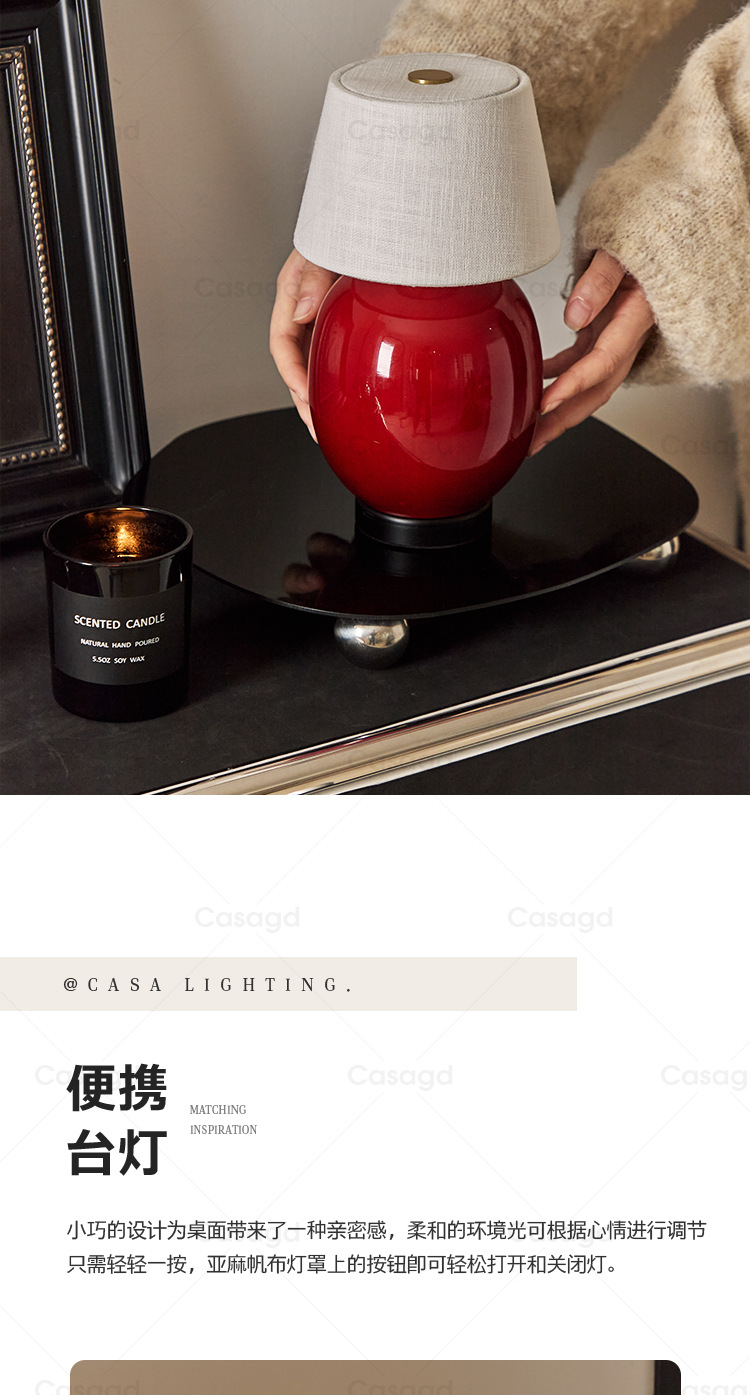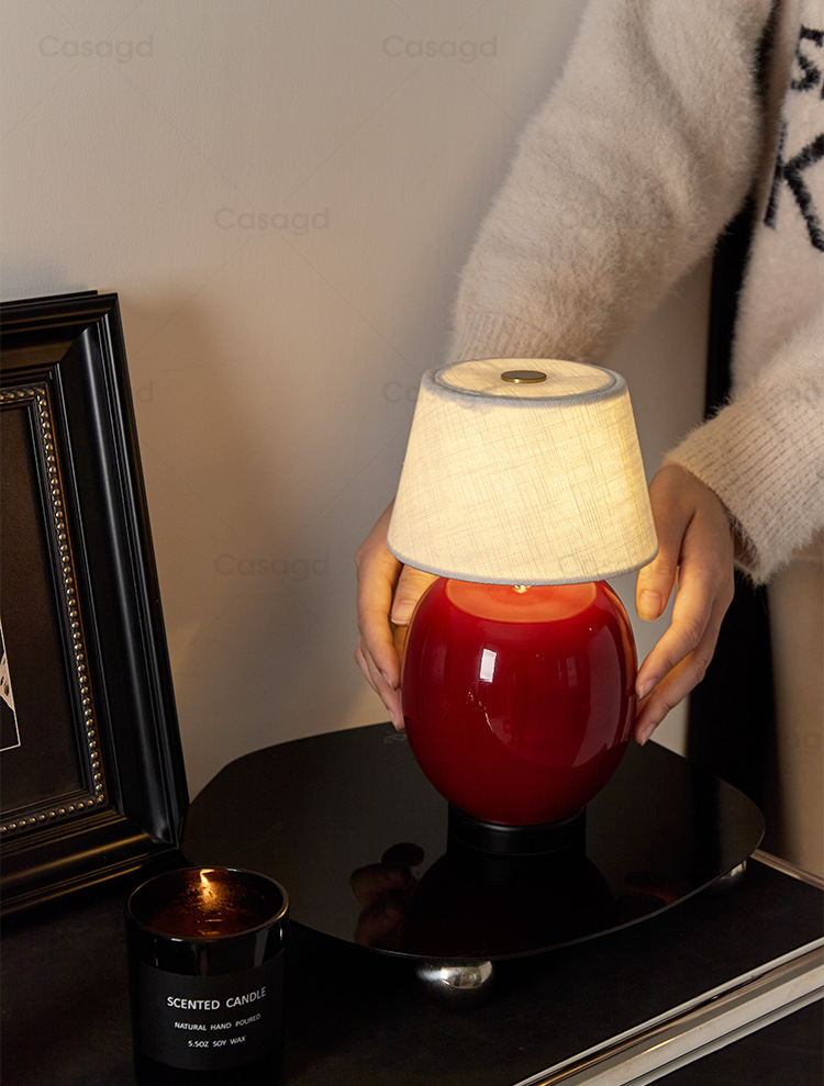 • [[팥 테이블 램프] 붉은 유약 색상 - 충전식 모델 - 터치 스위치 - 5w 따뜻한 조명 - [밝고 어두움 조절 가능]