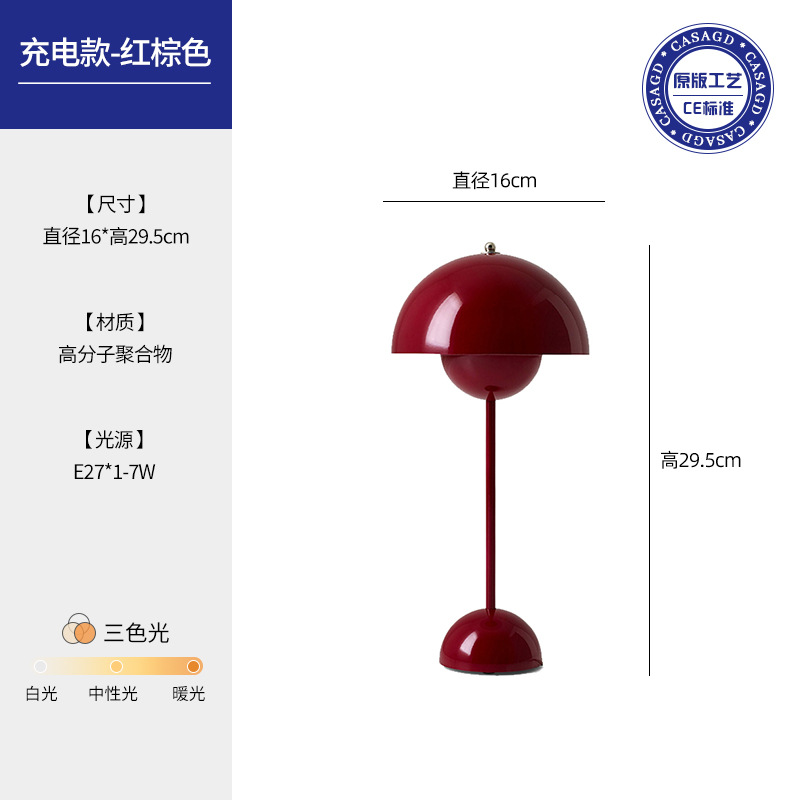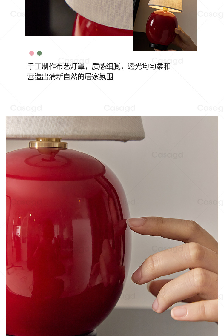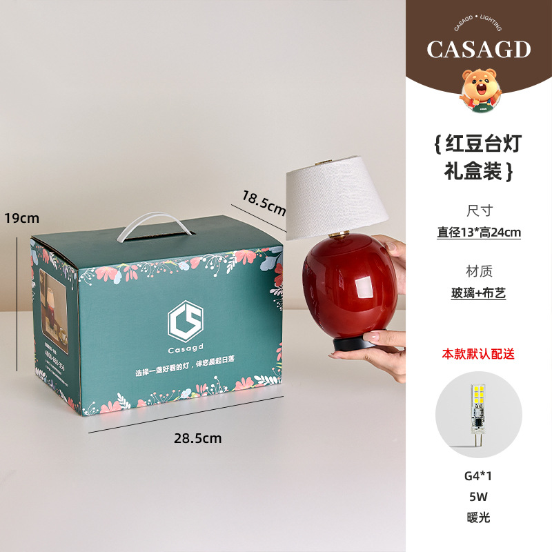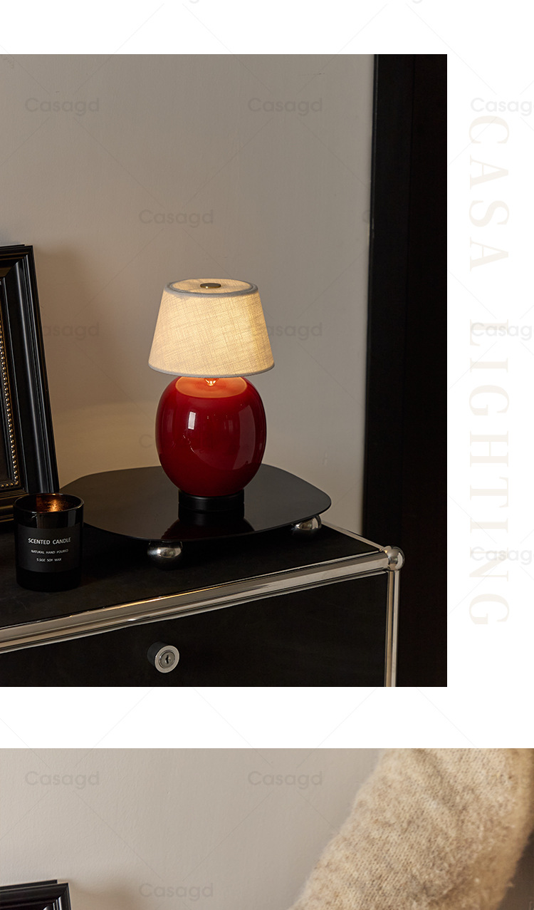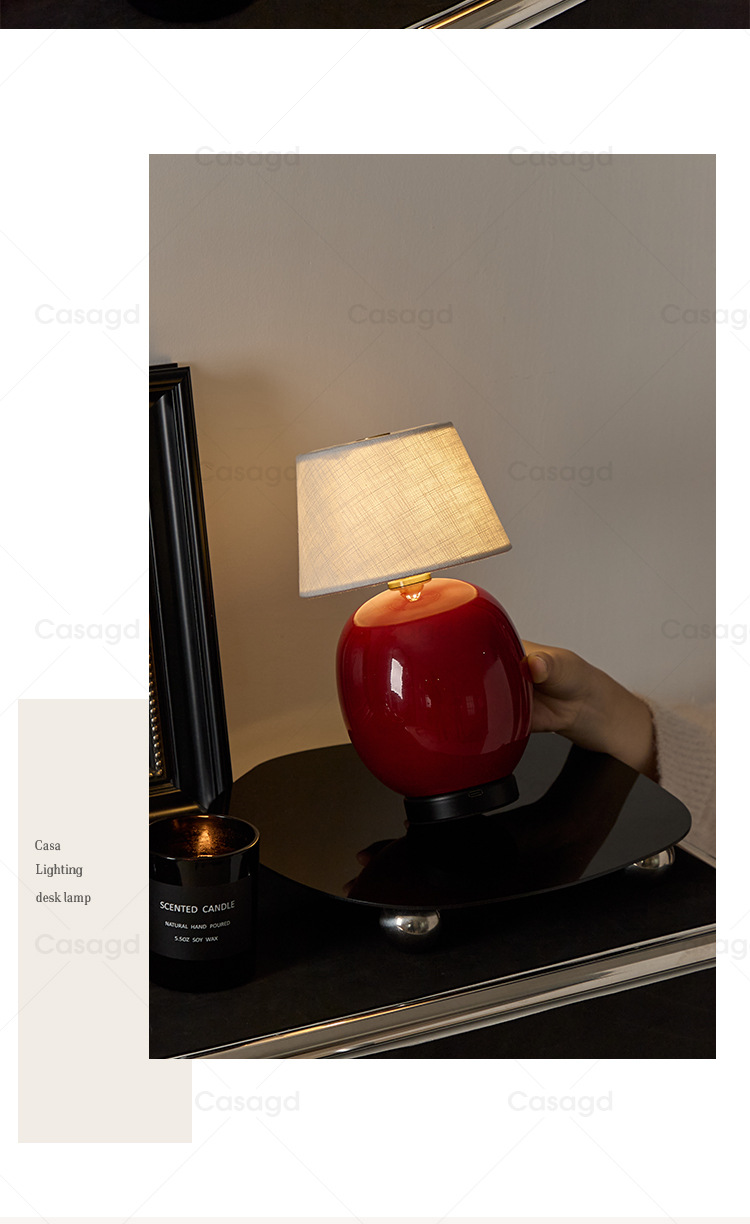 • [[팥 테이블 램프] 붉은 유약 색상 - 충전식 모델 - 터치 스위치 - 5w 따뜻한 조명 - [밝고 어두움 조절 가능]