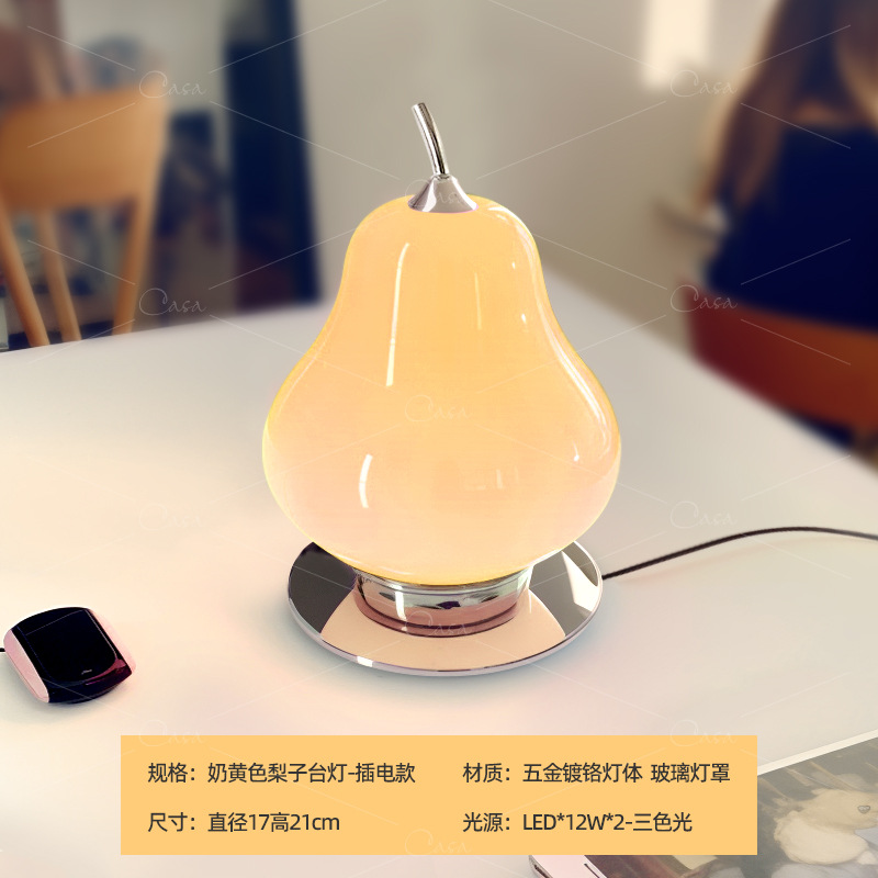 • 크림색 노란색 배 테이블 램프 플러그인 모델