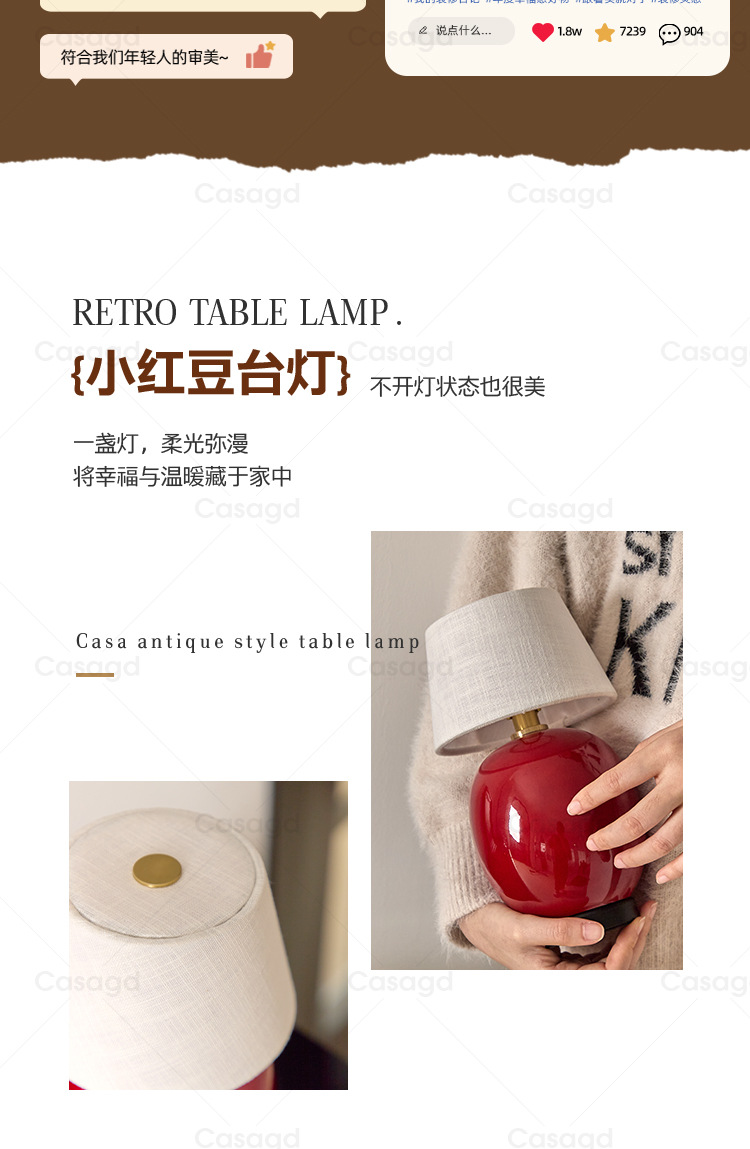 중세풍 분위기 야광 테이블 램프 레트로 심플 LED 램프 주 침실 침대 옆 테이블 램프 라이트 럭셔리 장식 야간등스토어 가기