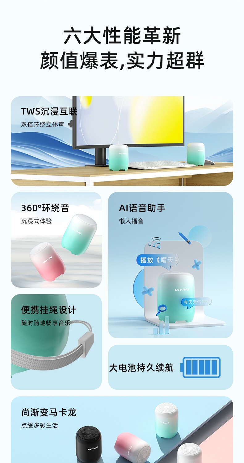 2025 새로운 무선 블루투스 오디오 휴대용 미니 카드 U 디스크 작은 스피커 TWS 시리즈 무거운 서브 우퍼