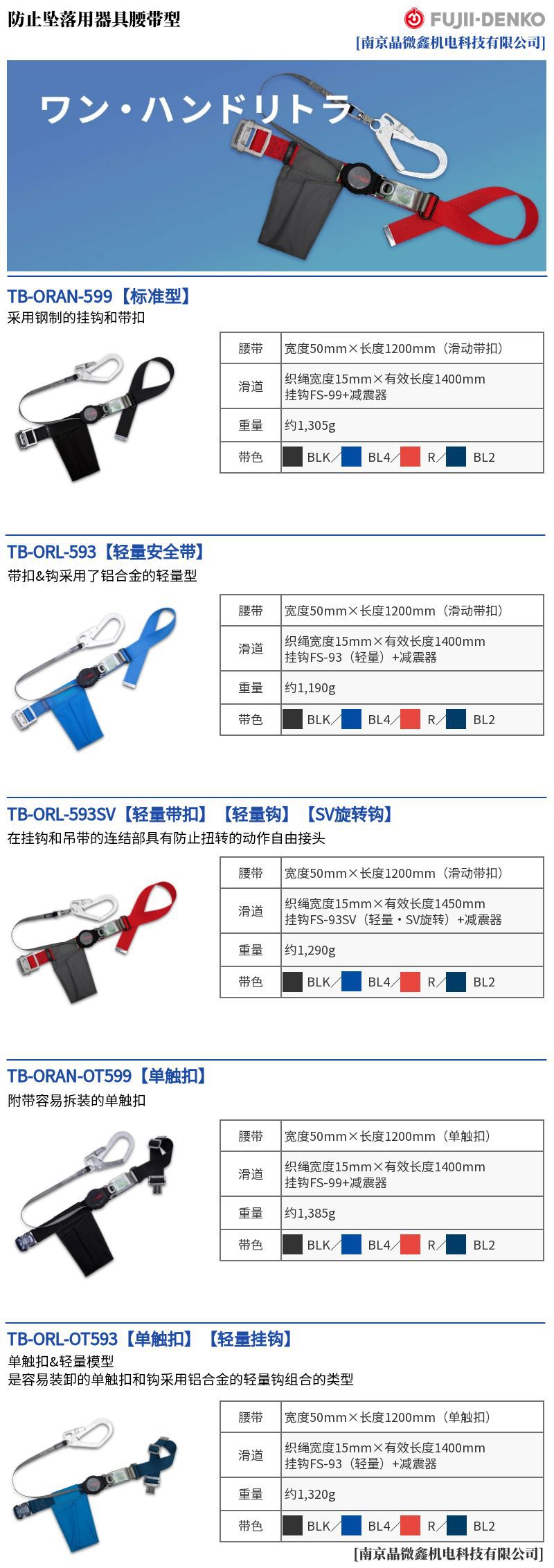 TB-ORAN-599 추락 방지 임업 전기공인 화재 안전 벨트 일본 후지이 전기 FUJII DENKO스토어 가기