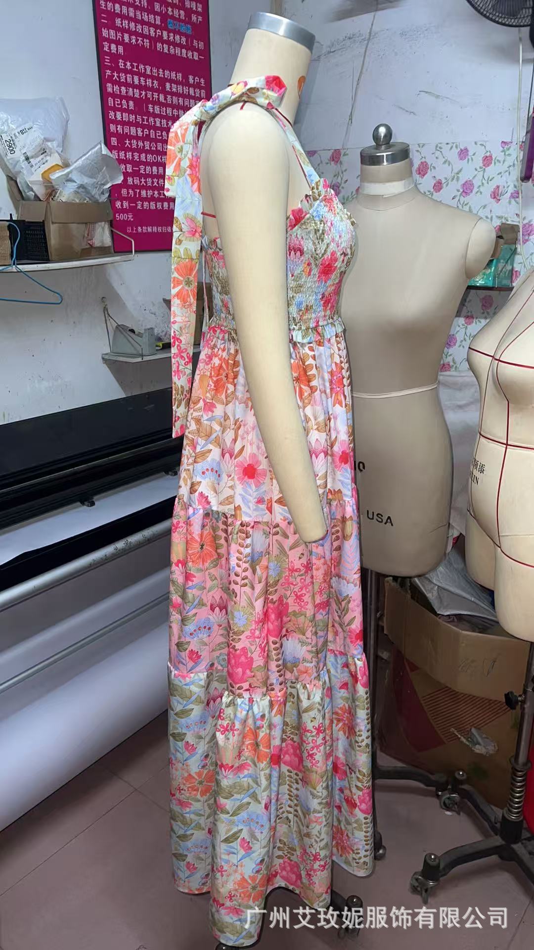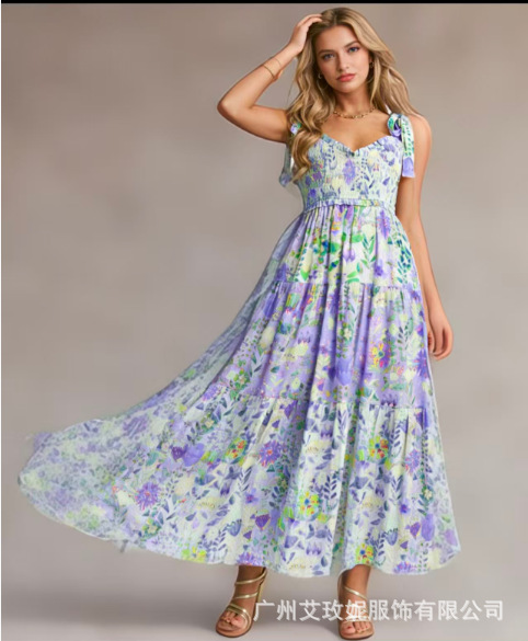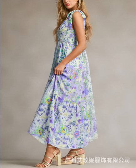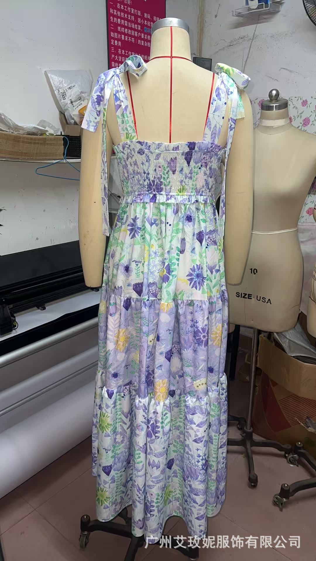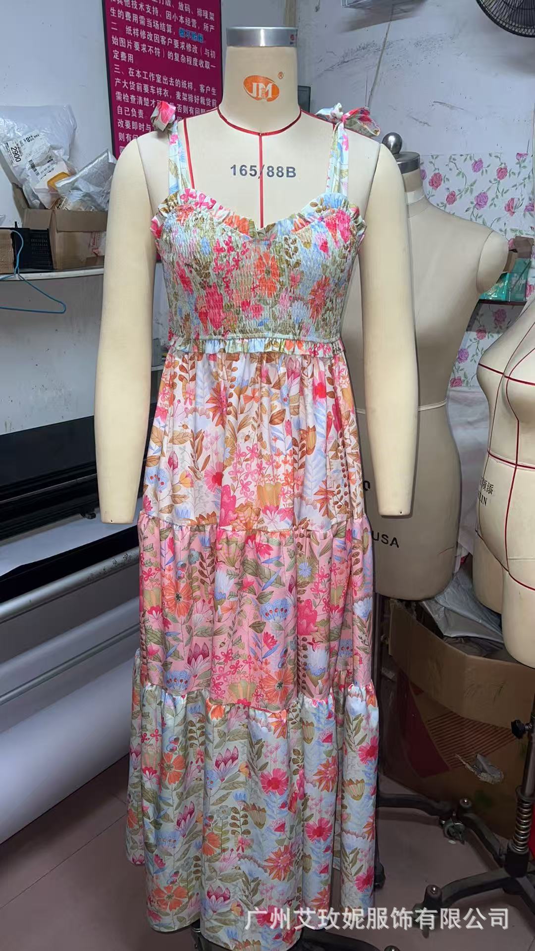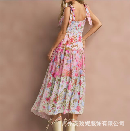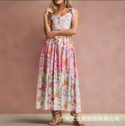 S32319 국경 독립 역 대외 무역 여성복 2025 봄/여름 유럽과 미국의 민소매 스트랩 포켓 인쇄 원피스 여성