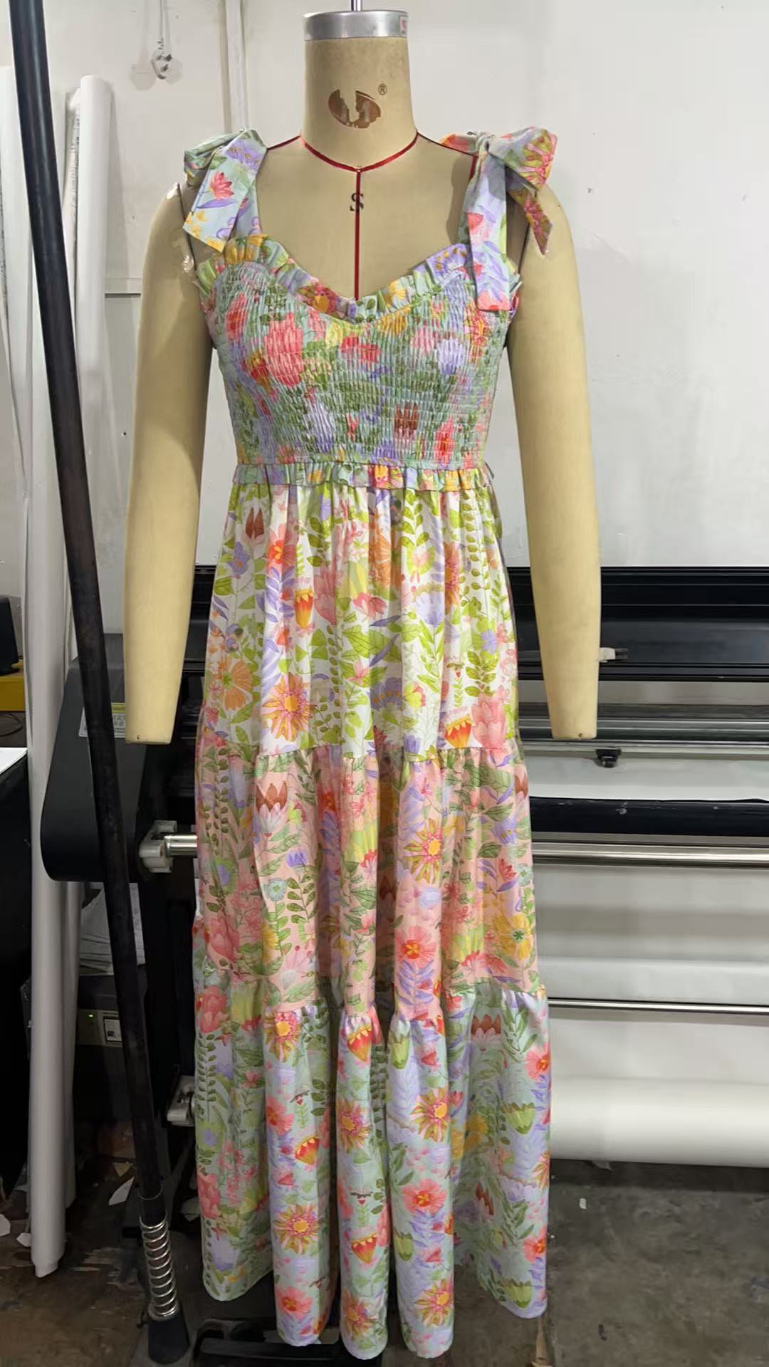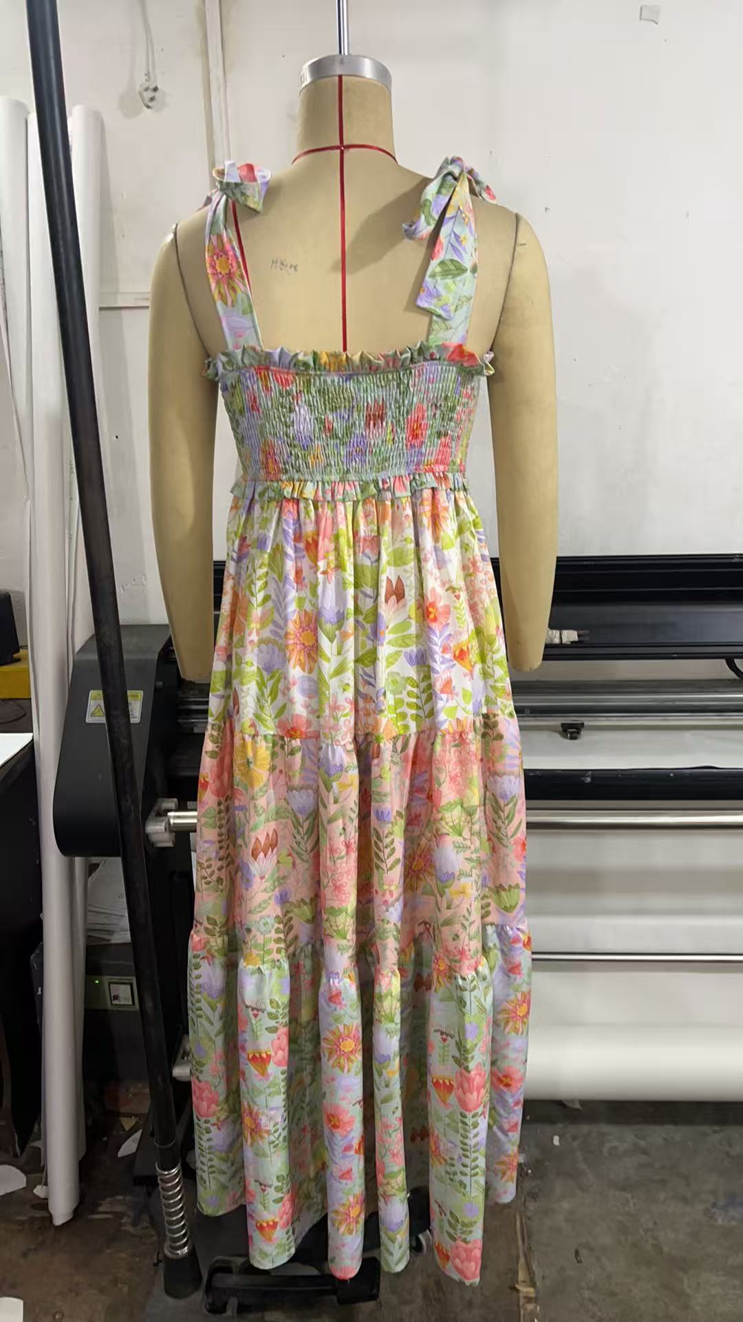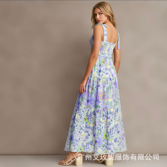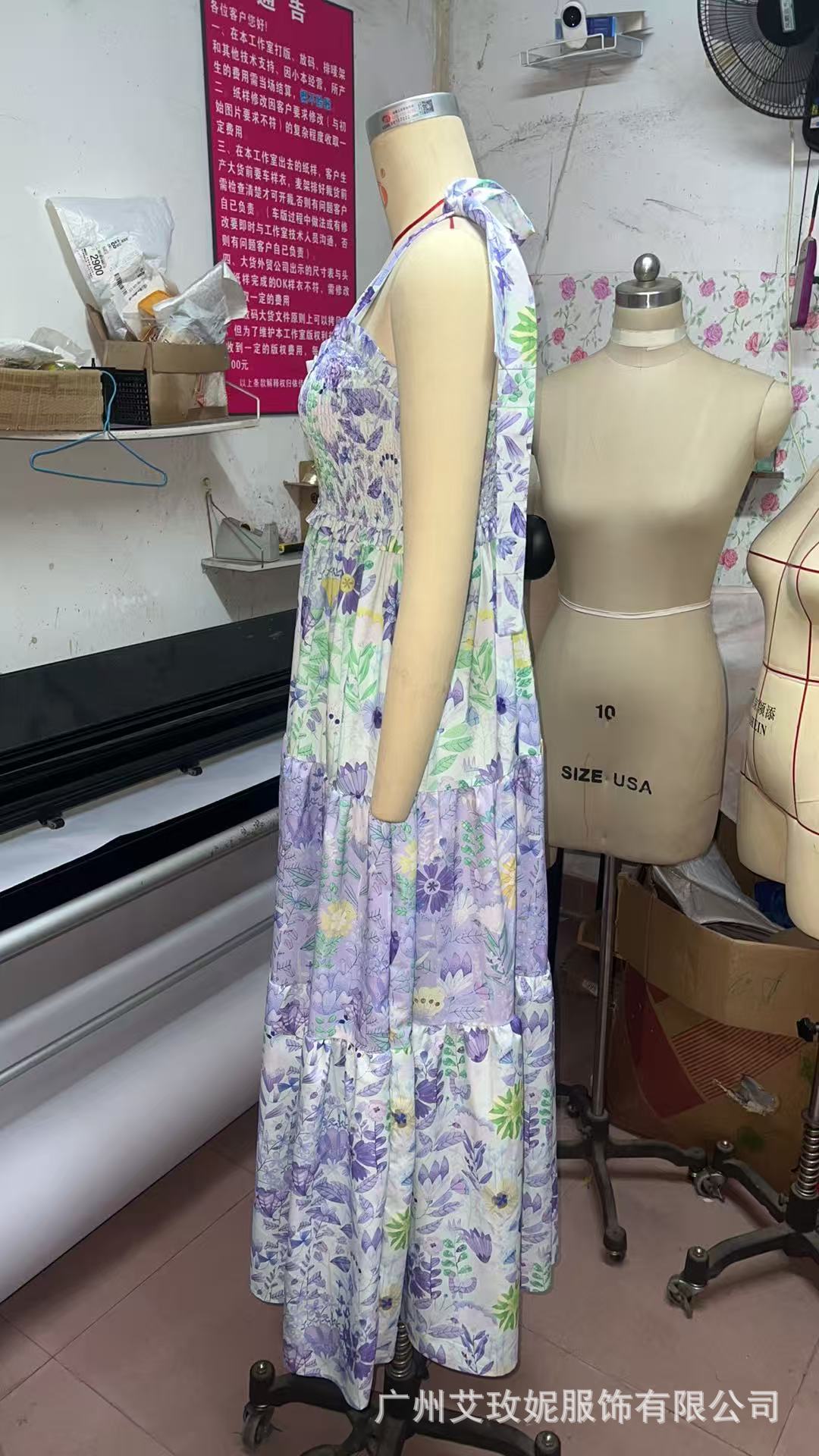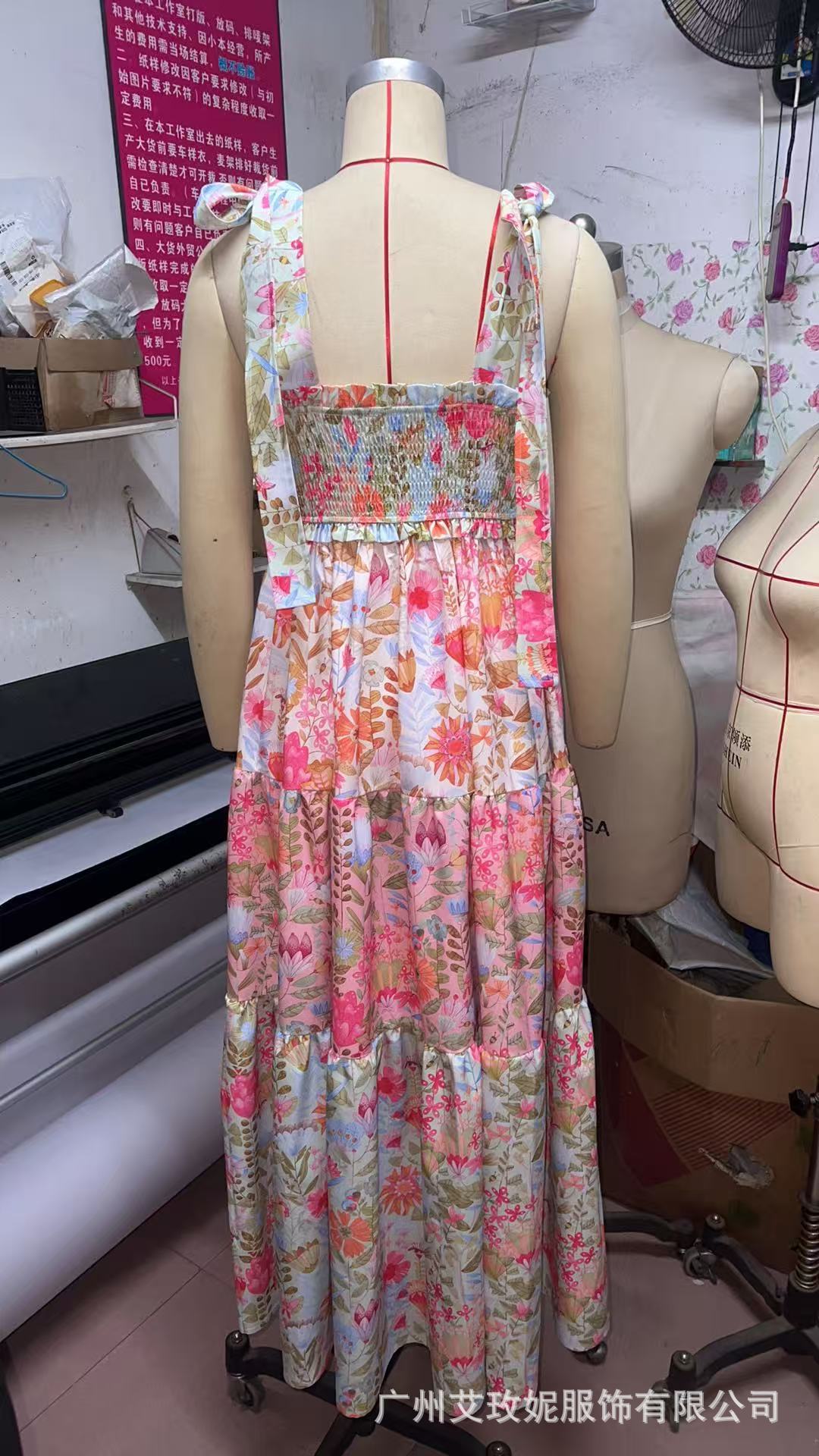 S32319 국경 독립 역 대외 무역 여성복 2025 봄/여름 유럽과 미국의 민소매 스트랩 포켓 인쇄 원피스 여성