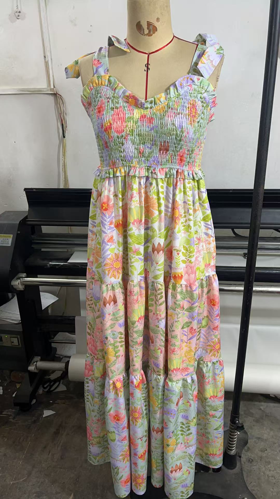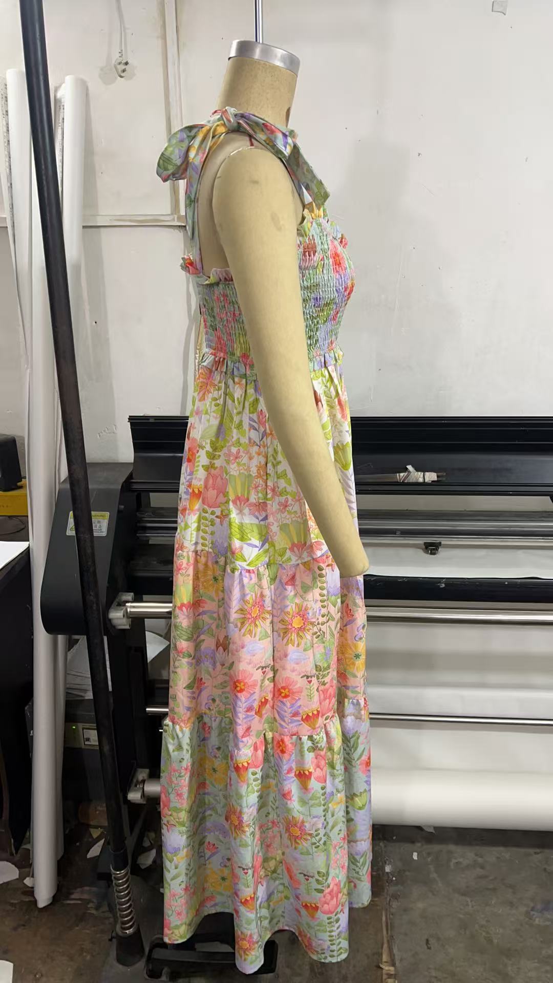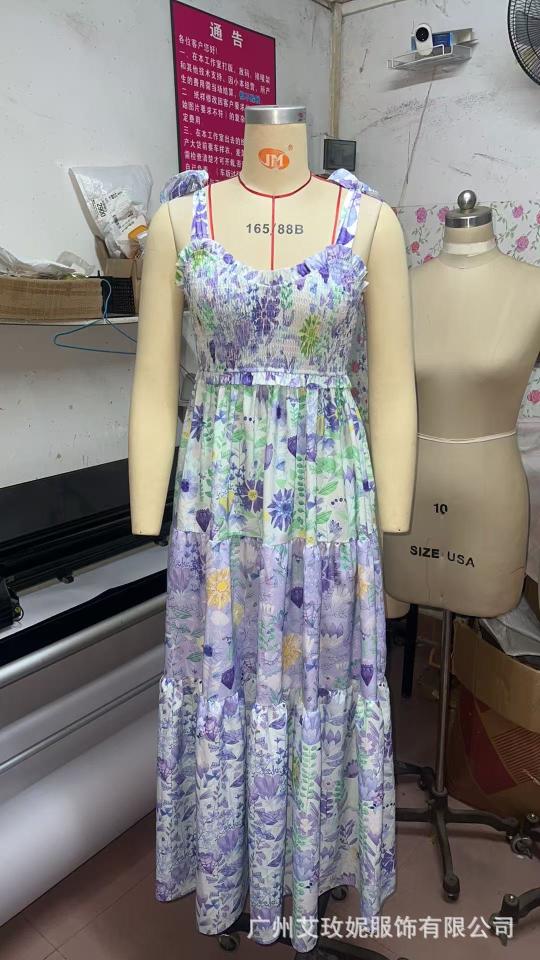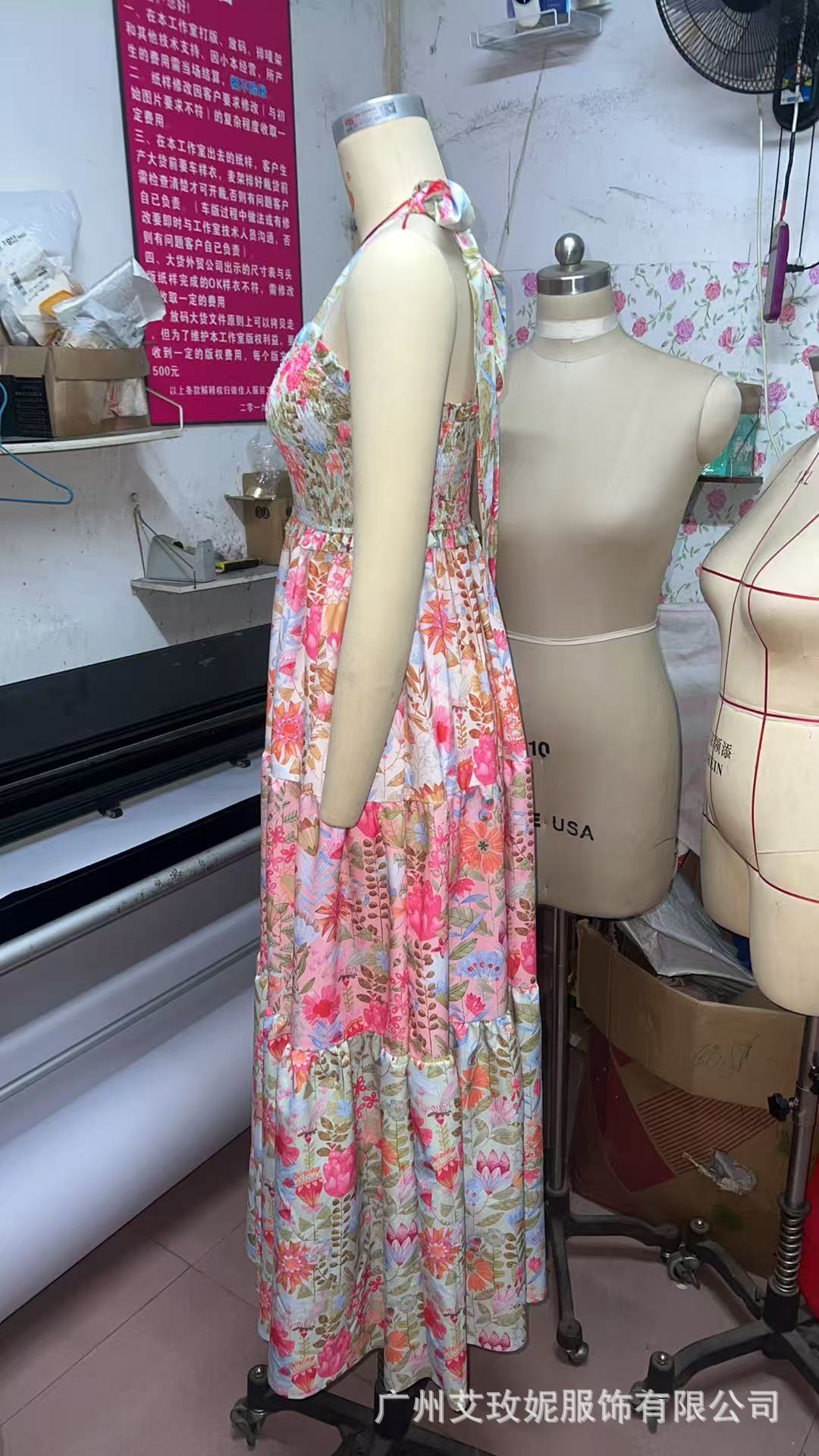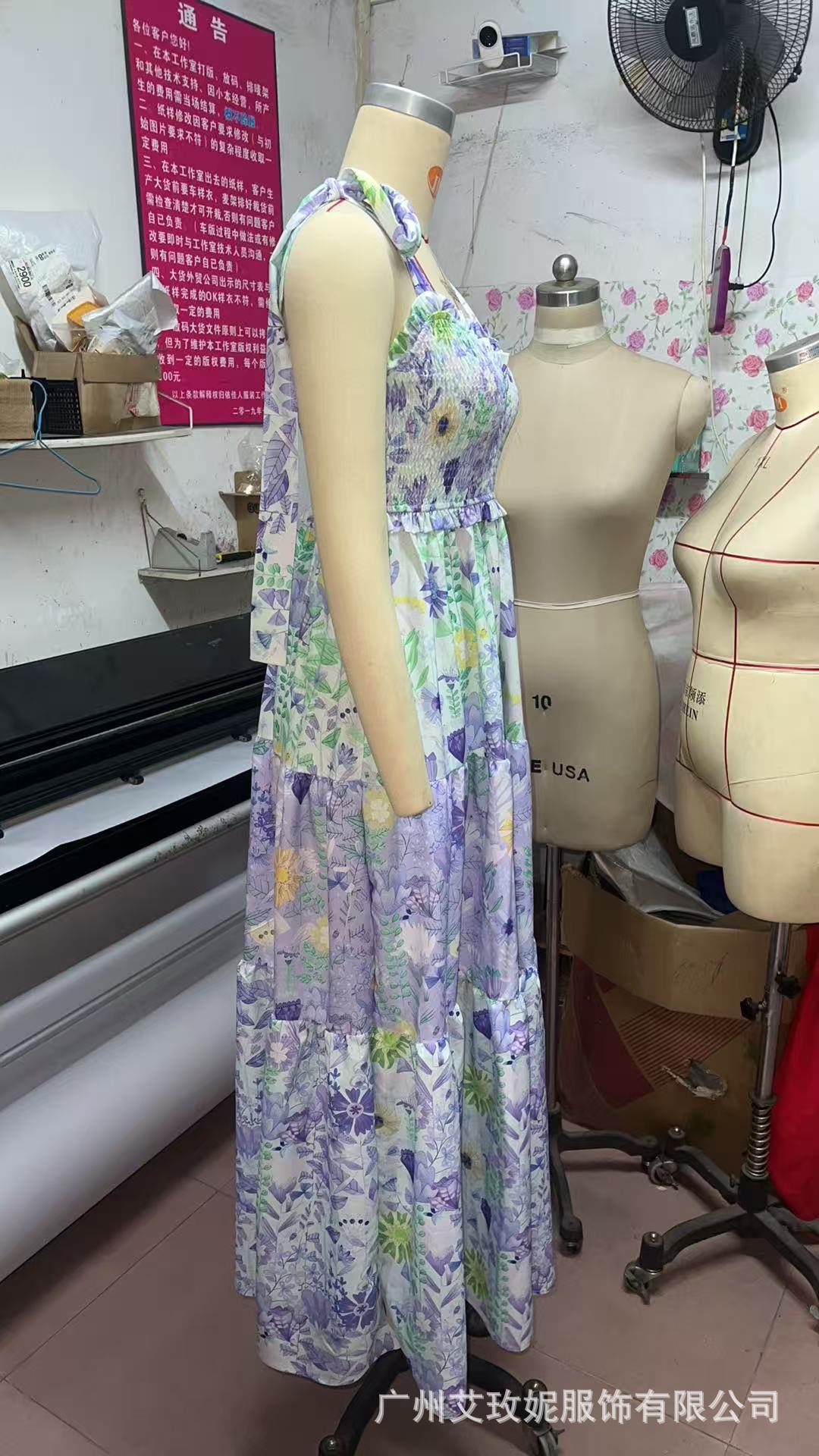 S32319 국경 독립 역 대외 무역 여성복 2025 봄/여름 유럽과 미국의 민소매 스트랩 포켓 인쇄 원피스 여성스토어 가기