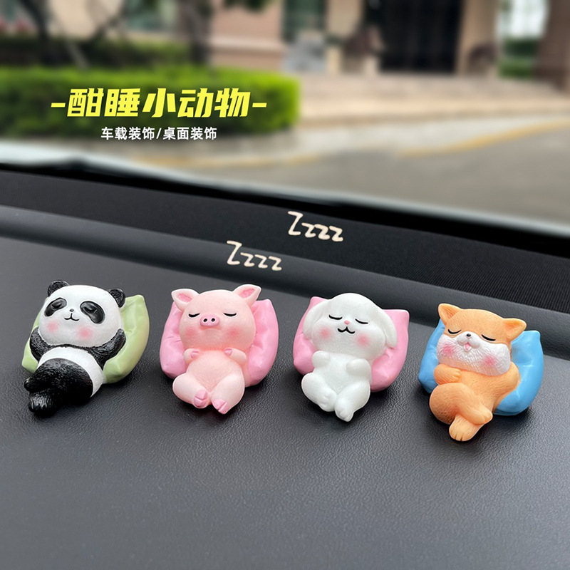 귀여운 자동차 만화 전기 자동차 인테리어 콘솔 작은 액세서리 치료 부서 잠자는 작은 동물 자동차 장식 장식품