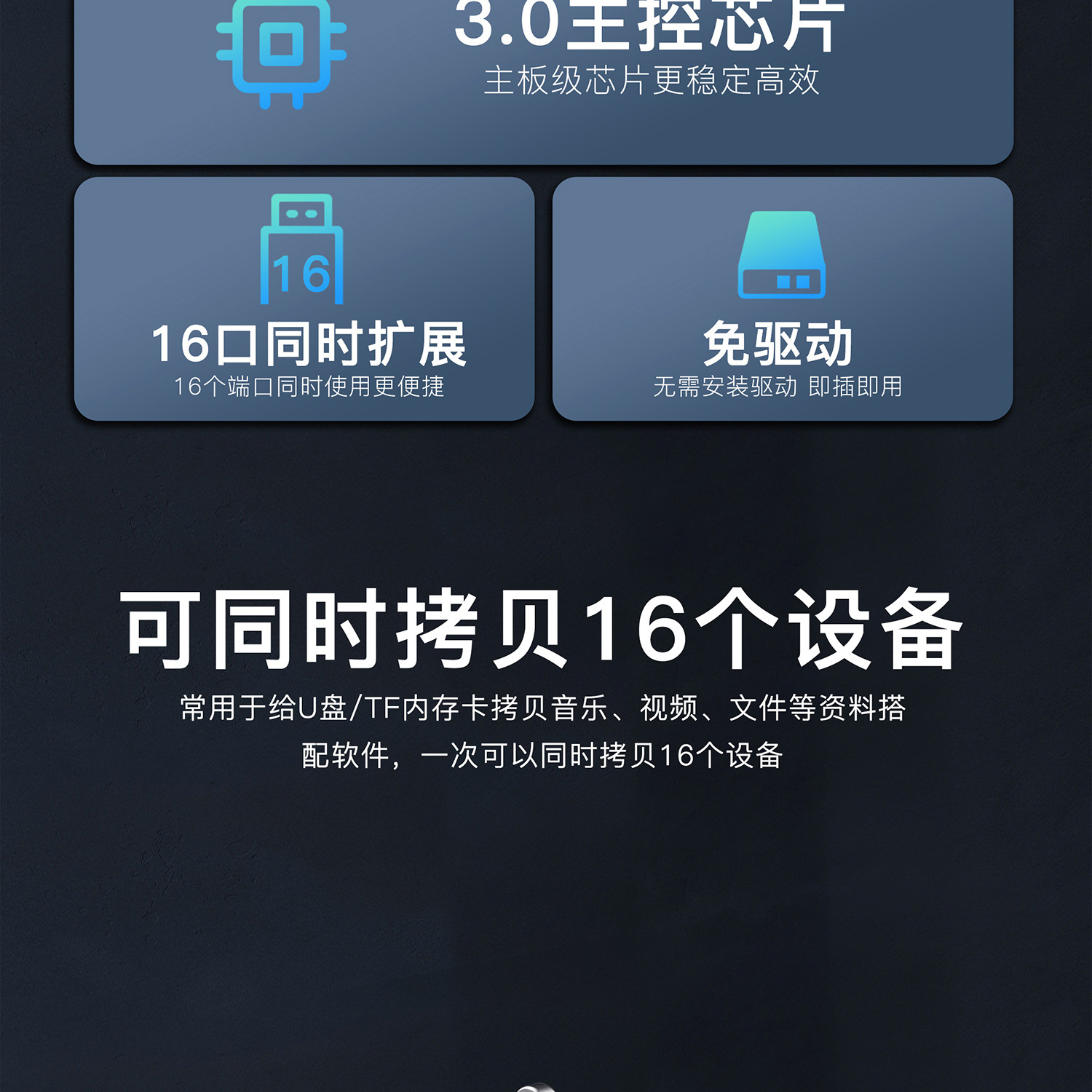 Siple USB3.0 분배기 16포트 허브 고속 복사 U 디스크, TF 카드 일괄 복사 복사