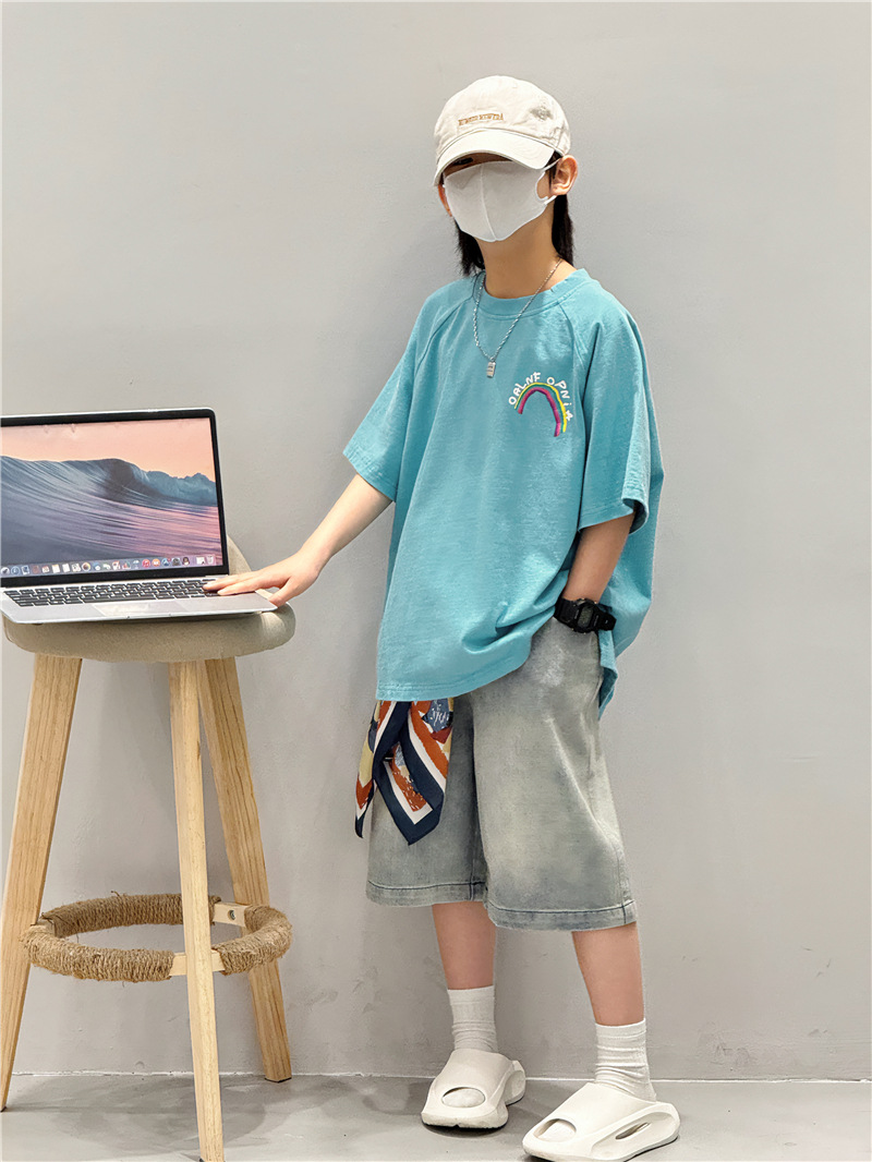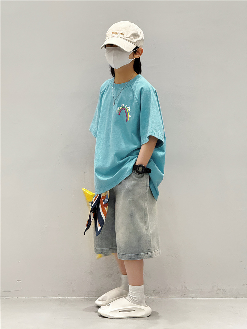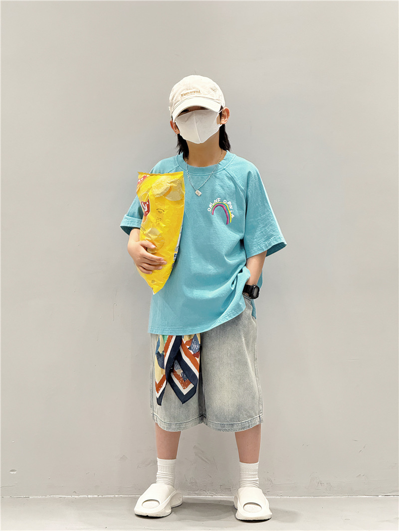 Baoduo 아동복 소년 여름 중간 바지 데님 반바지 2025 새로운 아동 바지 유행 5 점 바지 100-170