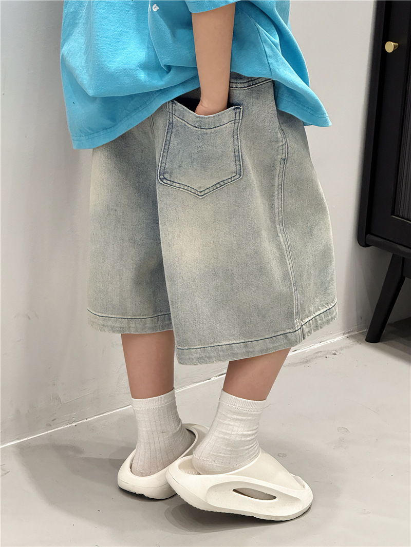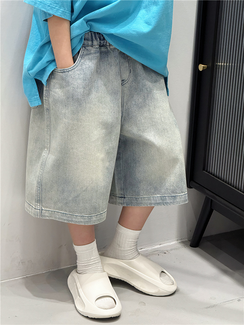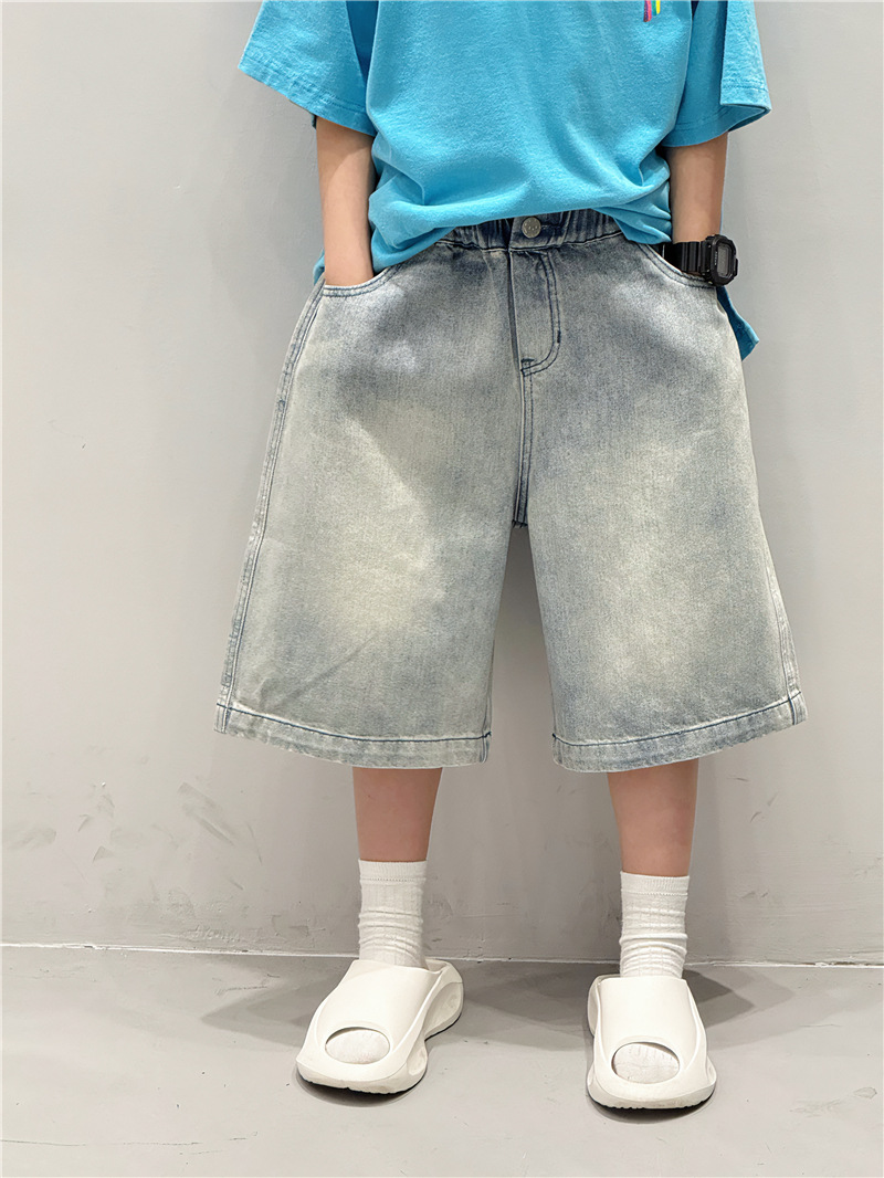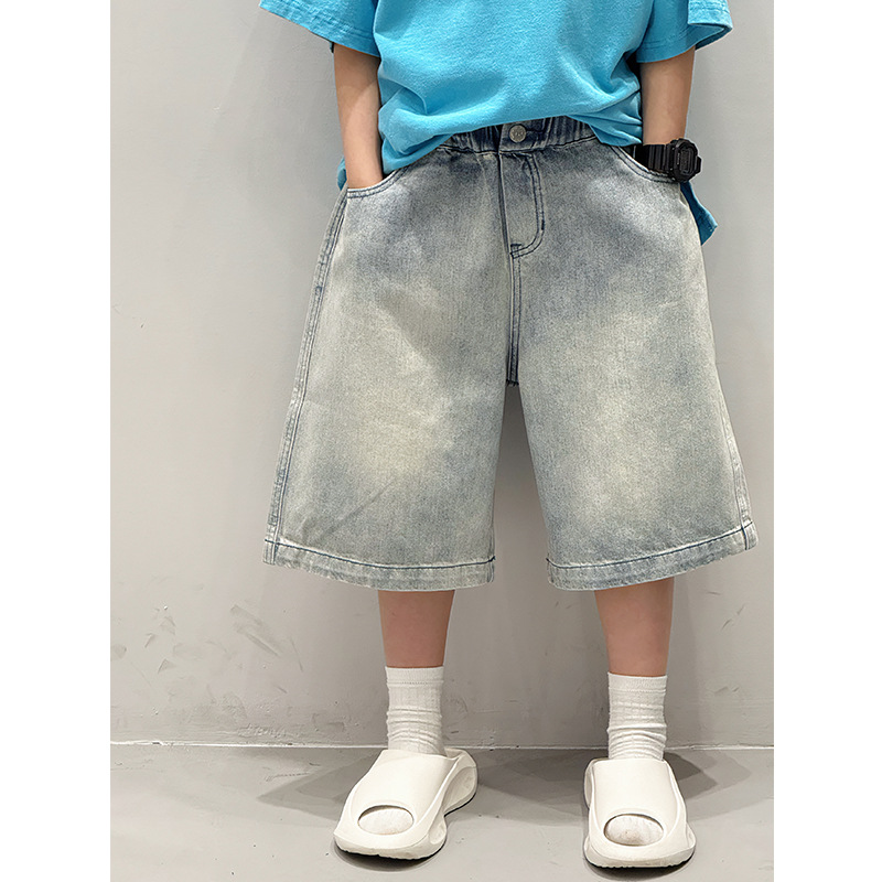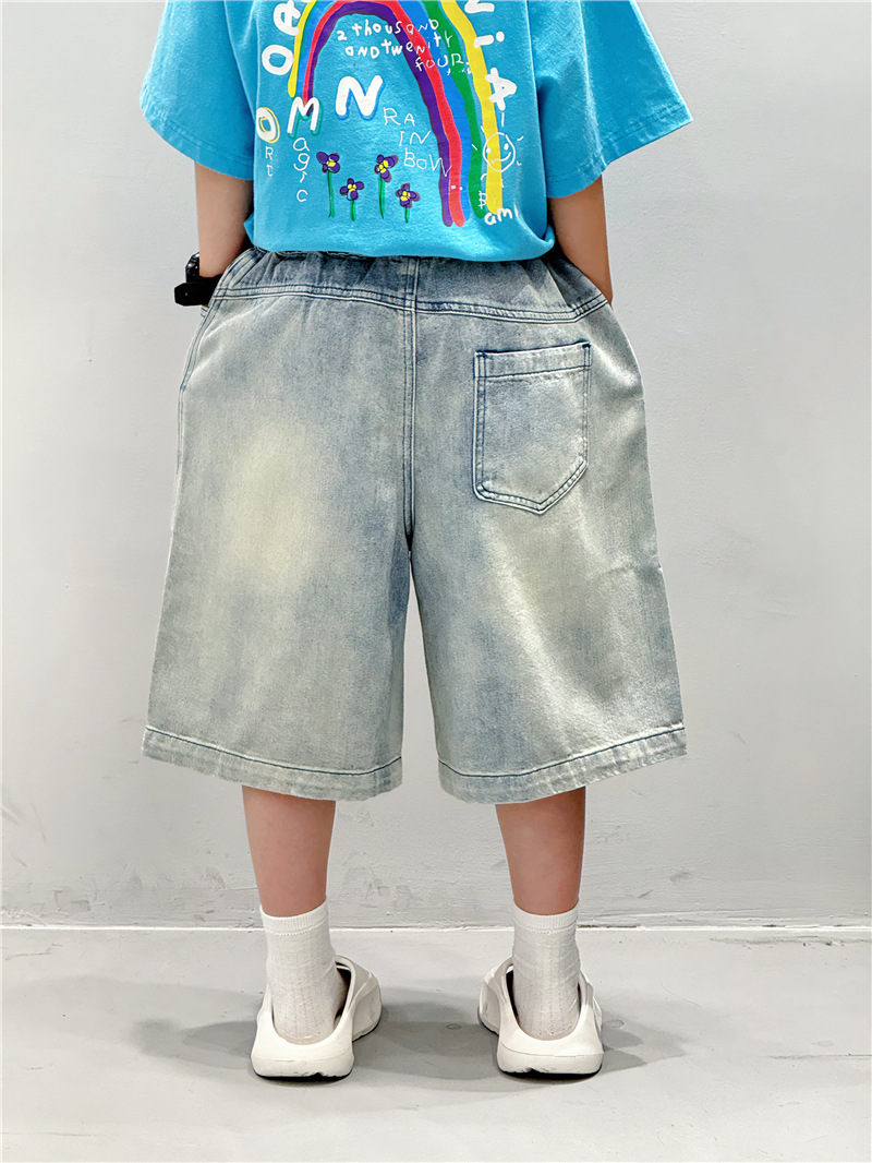 Baoduo 아동복 소년 여름 중간 바지 데님 반바지 2025 새로운 아동 바지 유행 5 점 바지 100-170스토어 가기