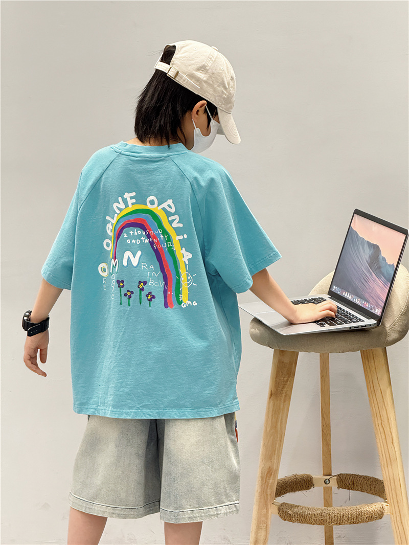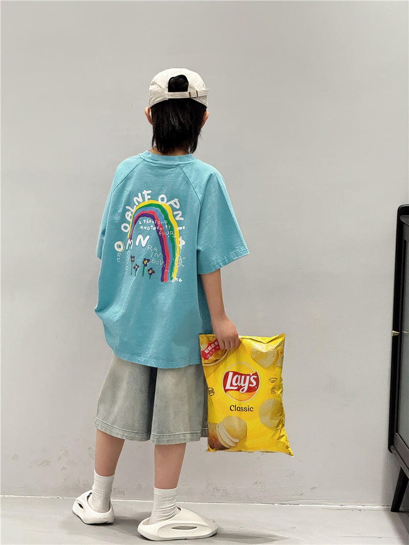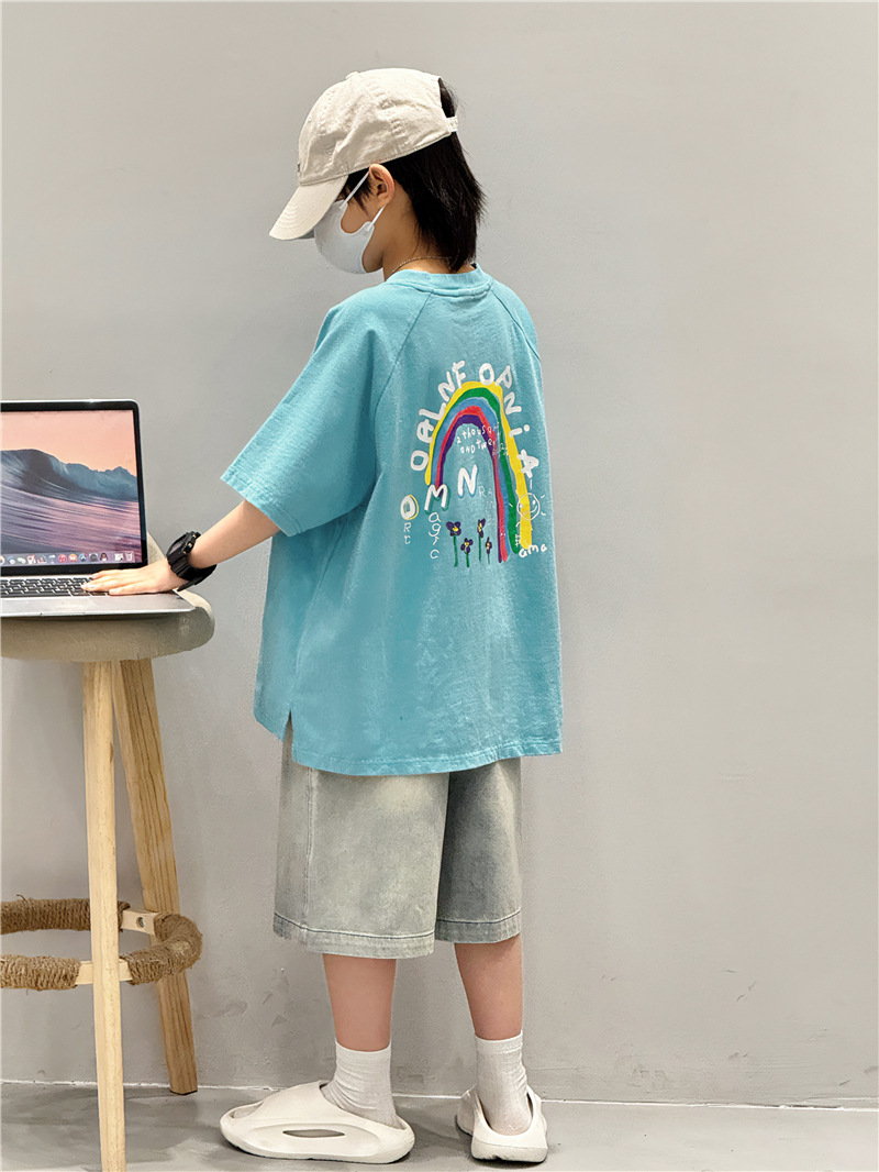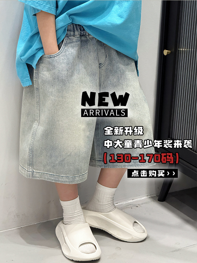 Baoduo 아동복 소년 여름 중간 바지 데님 반바지 2025 새로운 아동 바지 유행 5 점 바지 100-170스토어 가기