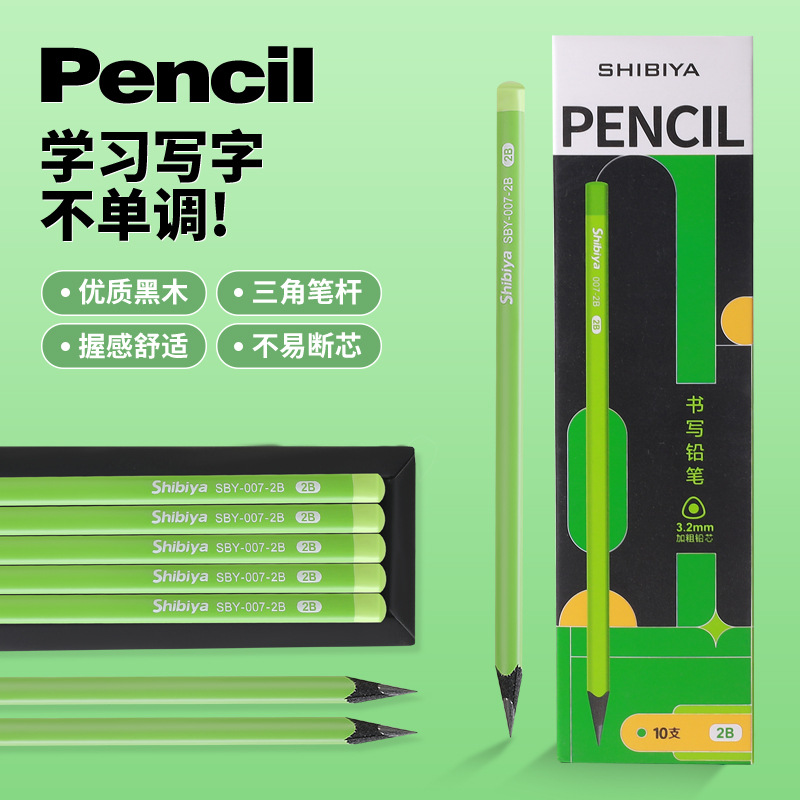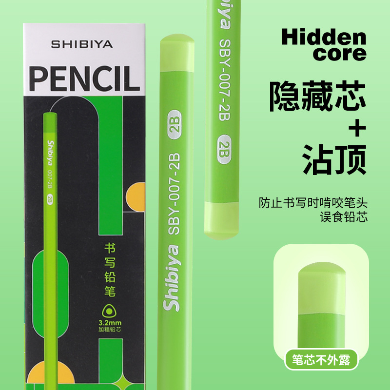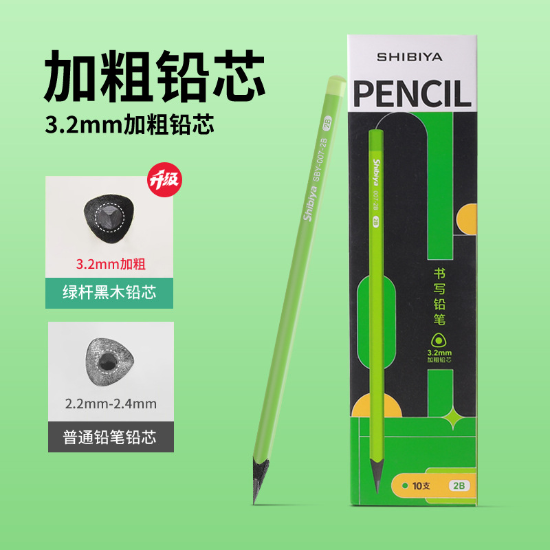 Shibiya 새로운 검은 나무 작은 녹색 기둥 연필 HB Bold 리드 코어 초등 학생을위한 어린이 2B 연필을 깨기 쉽지 않음스토어 가기