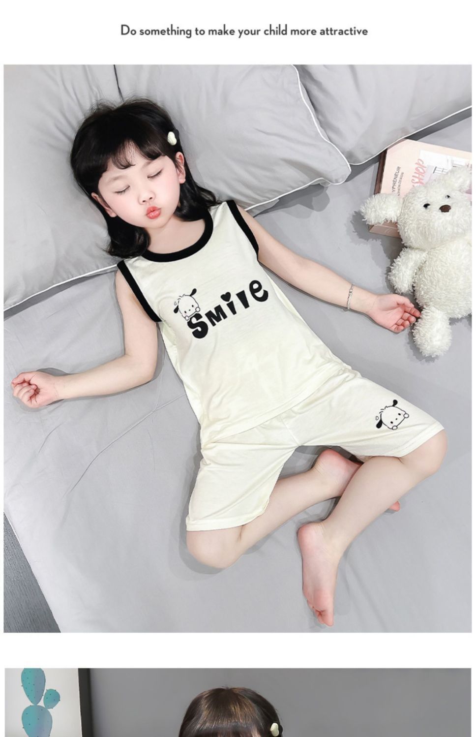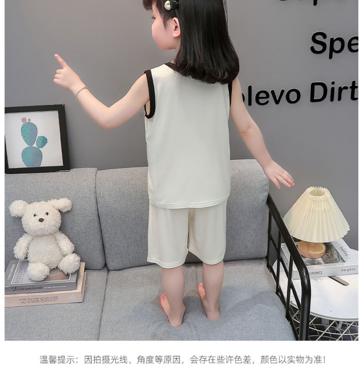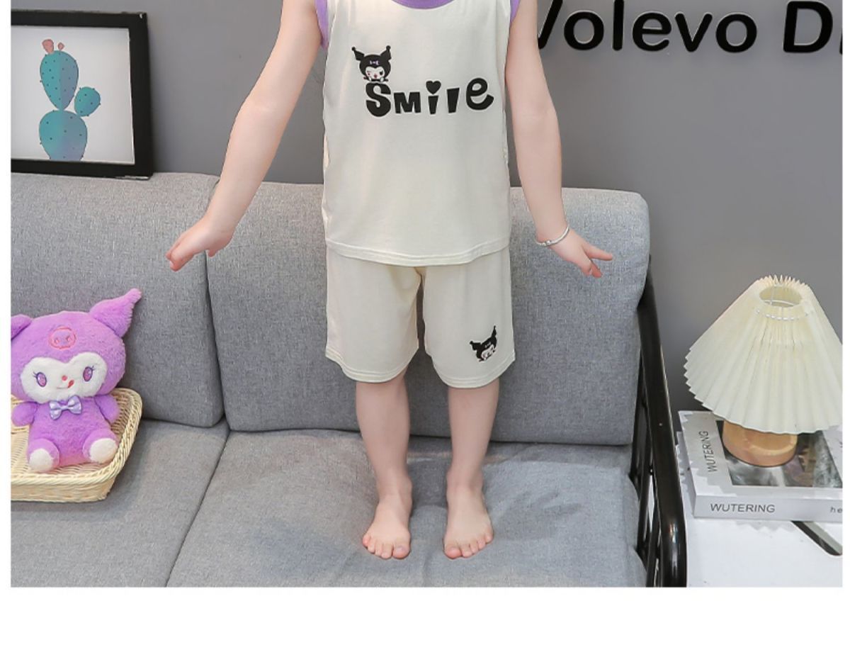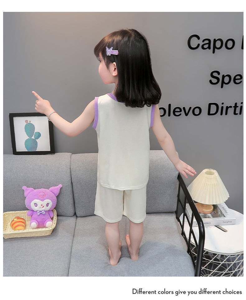 여자 여름 얇은 조끼 잠옷 2024 새로운 어린이 가정 의류 큰 어린이와 소녀 에어컨 의류 투피스 세트스토어 가기