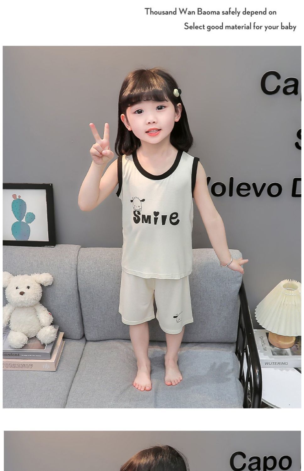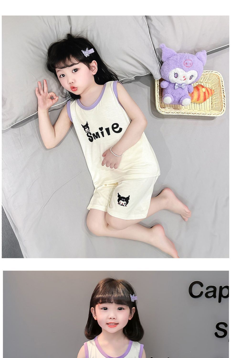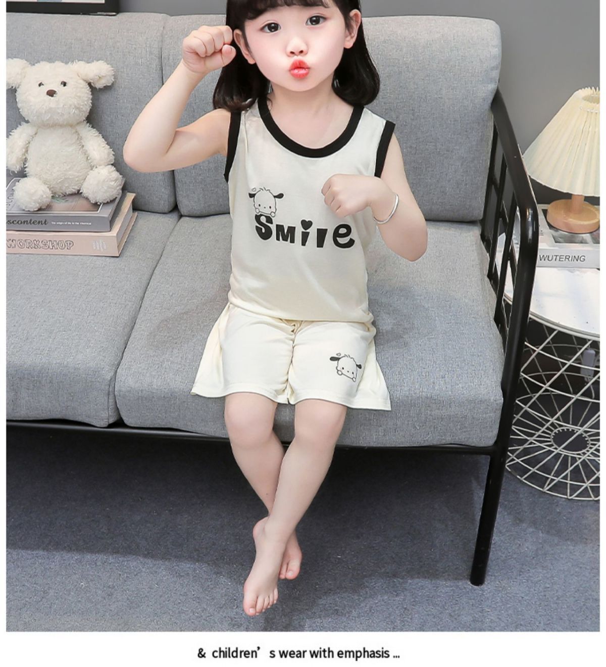 여자 여름 얇은 조끼 잠옷 2024 새로운 어린이 가정 의류 큰 어린이와 소녀 에어컨 의류 투피스 세트스토어 가기