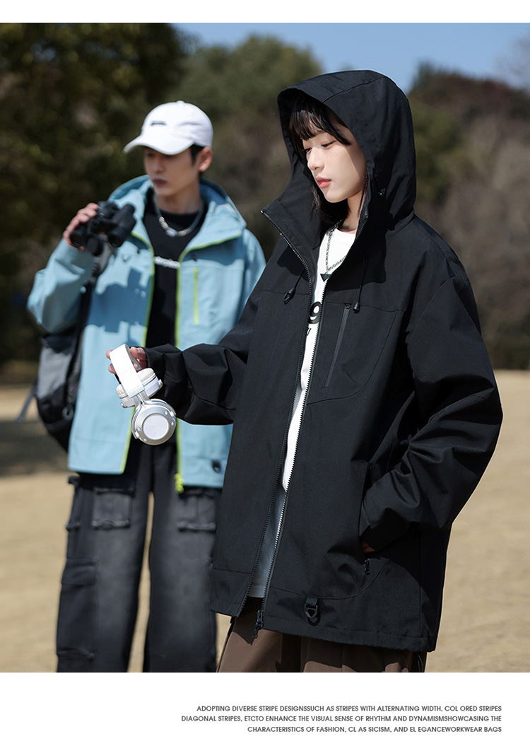 봄 2025 새로운 야외 유행 후드 재킷 유니섹스 느슨한 플러스 사이즈 스포츠 재킷