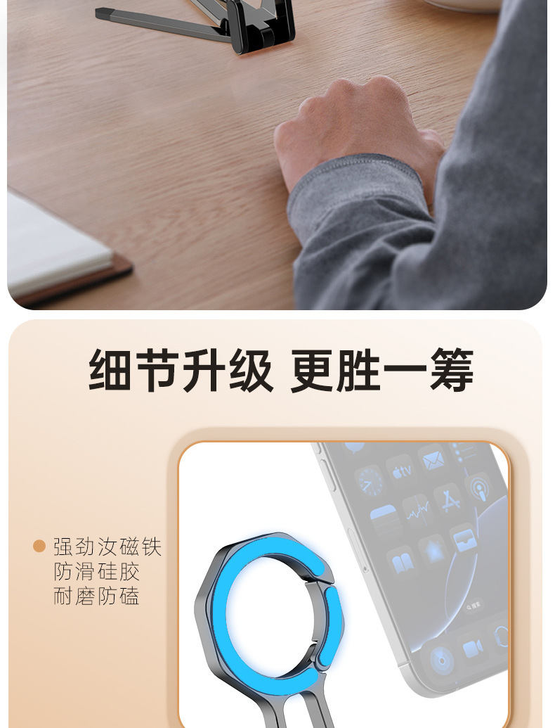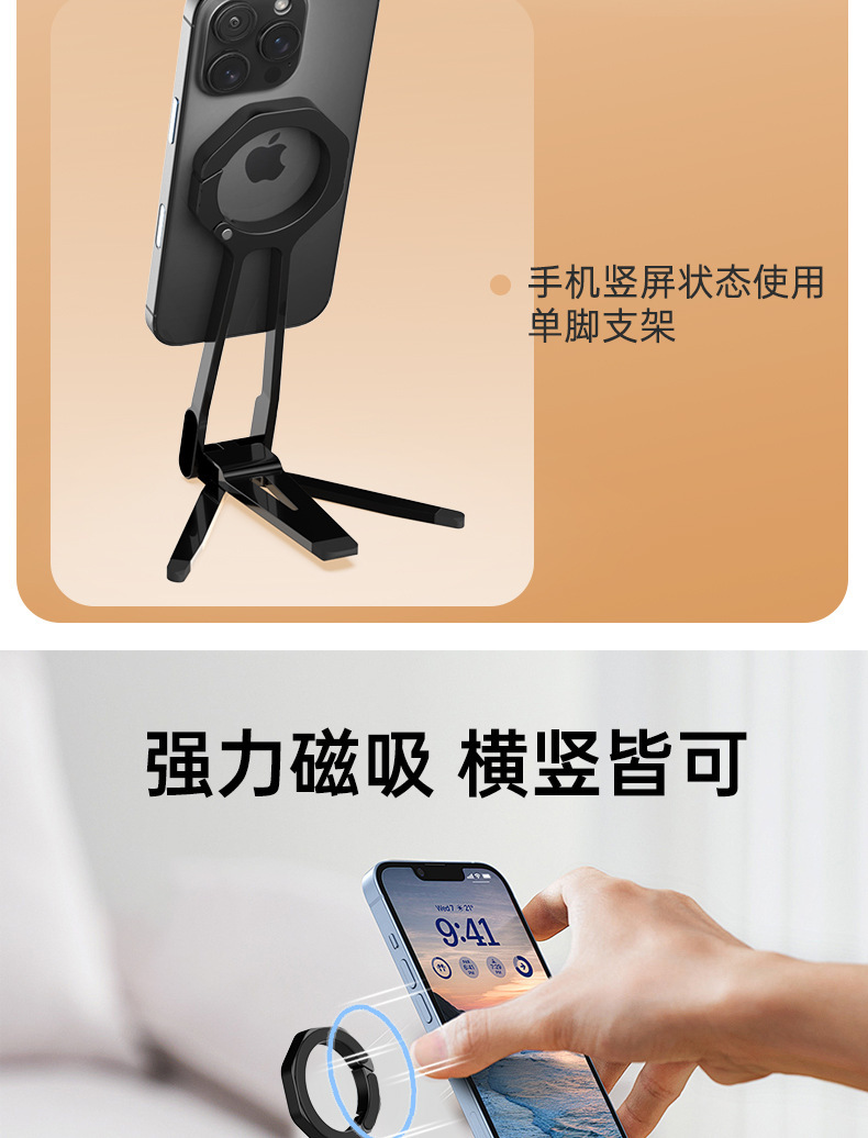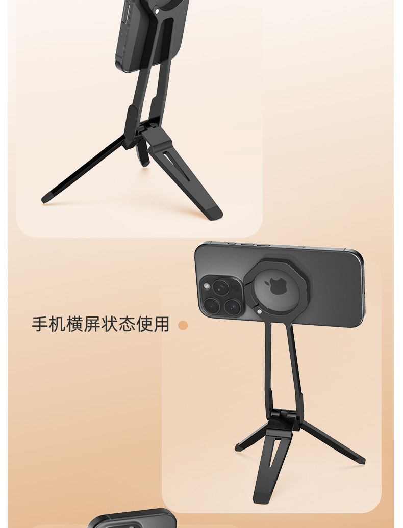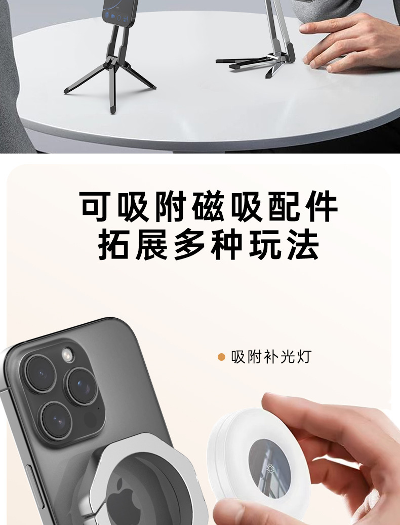 2025 휴대폰 자석 거치대 스프링 버클 데스크탑 360 ° 회전식 휴대용 삼각형 라이브 방송용 태블릿 데스크탑 스탠드