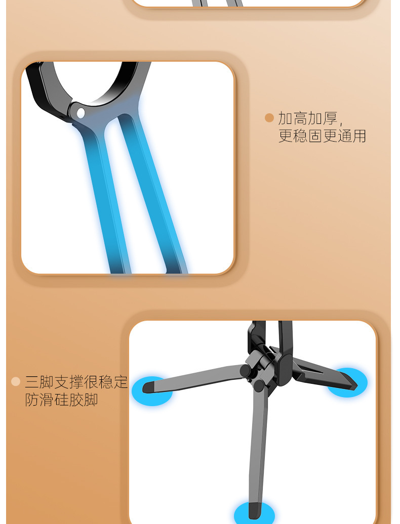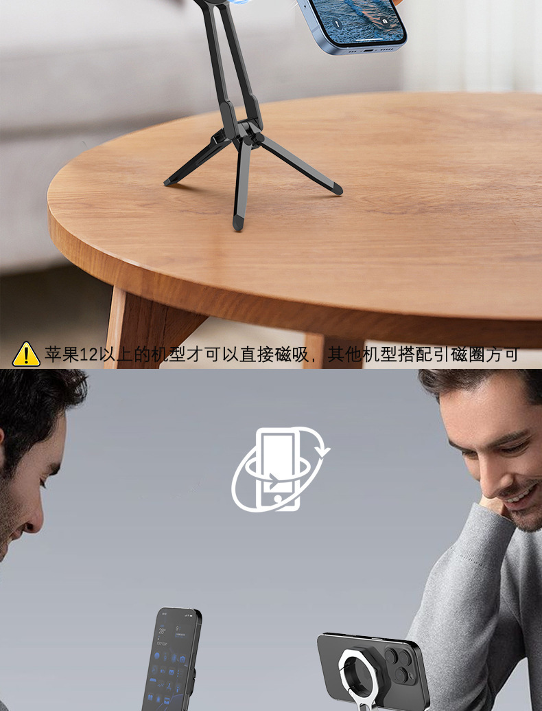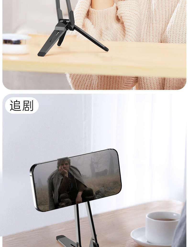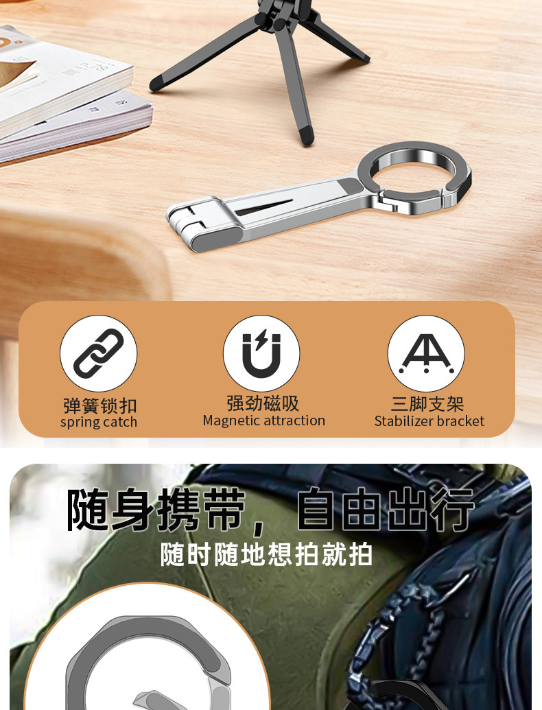 2025 휴대폰 자석 거치대 스프링 버클 데스크탑 360 ° 회전식 휴대용 삼각형 라이브 방송용 태블릿 데스크탑 스탠드
