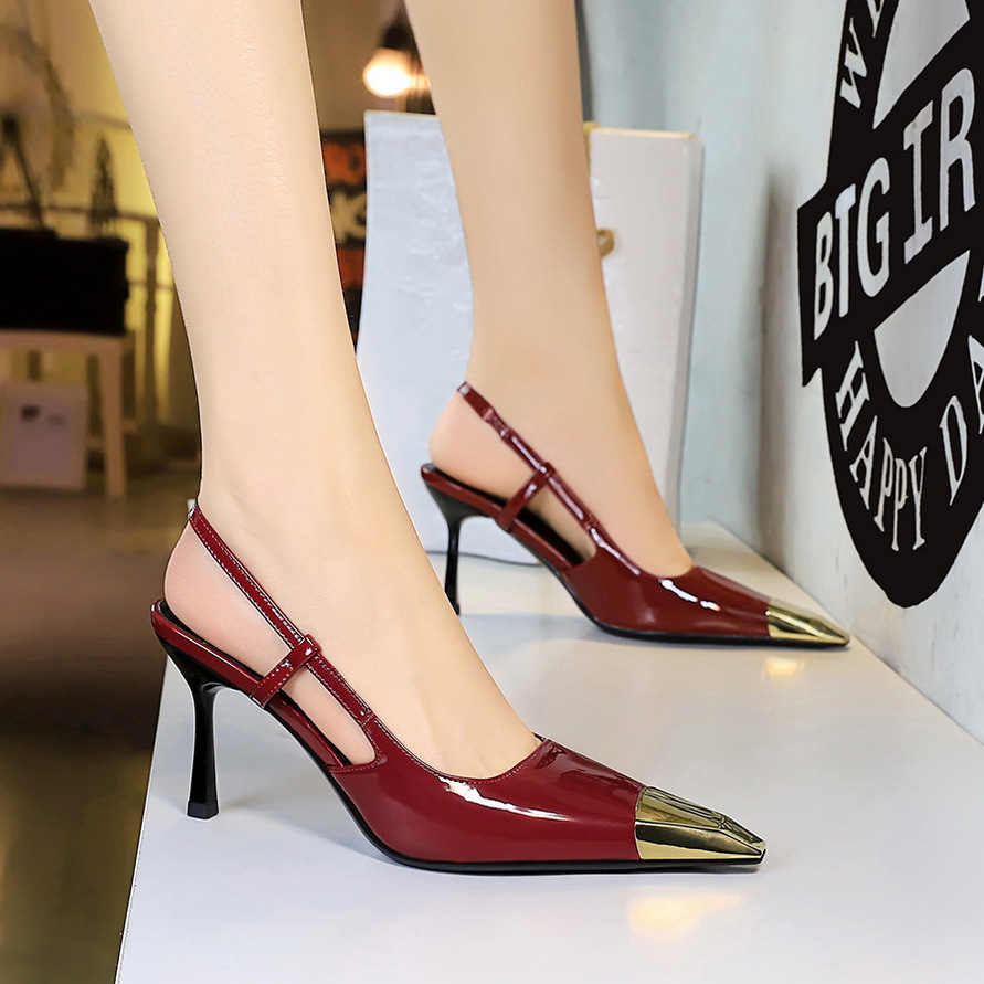 2629-1 유럽과 미국 스타일의 연회 하이힐, 스틸레토 힐, 특허 가죽, 금속 뾰족한 발가락, 뒷끈이 없는 여성용 싱글 슈즈스토어 가기