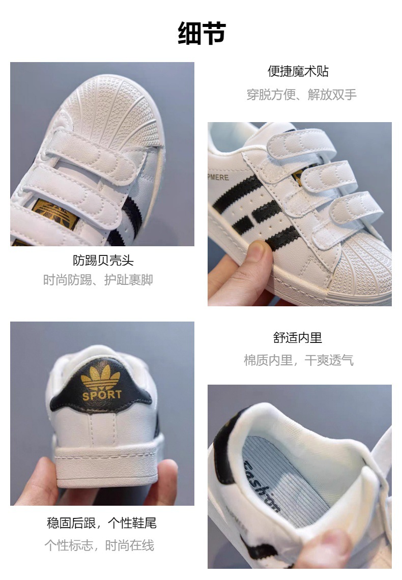 벨크로 아동 운동화, 남아용 통기성 화이트 슈즈, 새로운 쉘토우 캐주얼 슈즈, 패셔너블하고 다용도로 활용 가능한 여아용스토어 가기